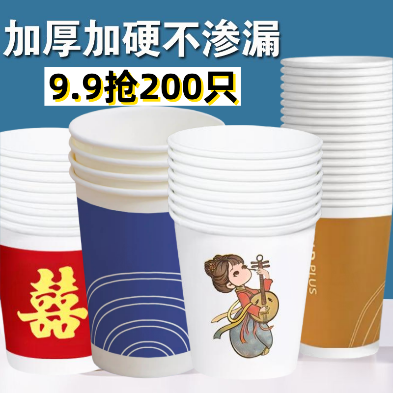 超厚加厚加硬一次性纸杯子批发一整箱茶水杯商务聚会家用办公