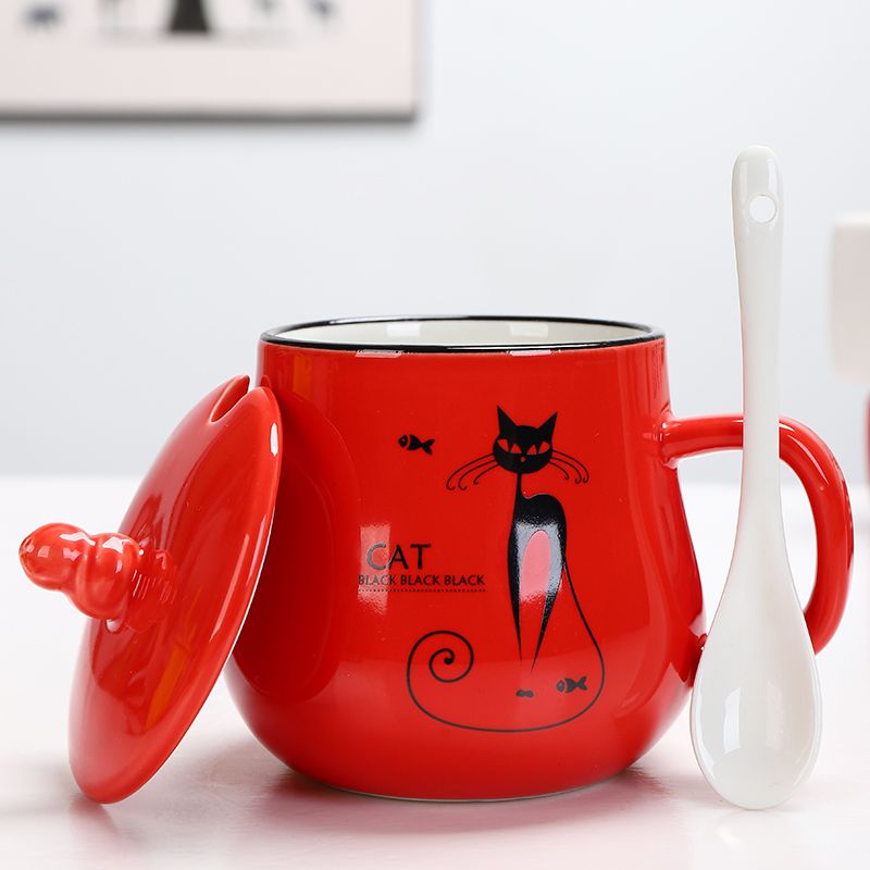 卡通杯简约办公室水杯子女陶瓷杯定制logo马克杯情侣咖啡杯带盖勺