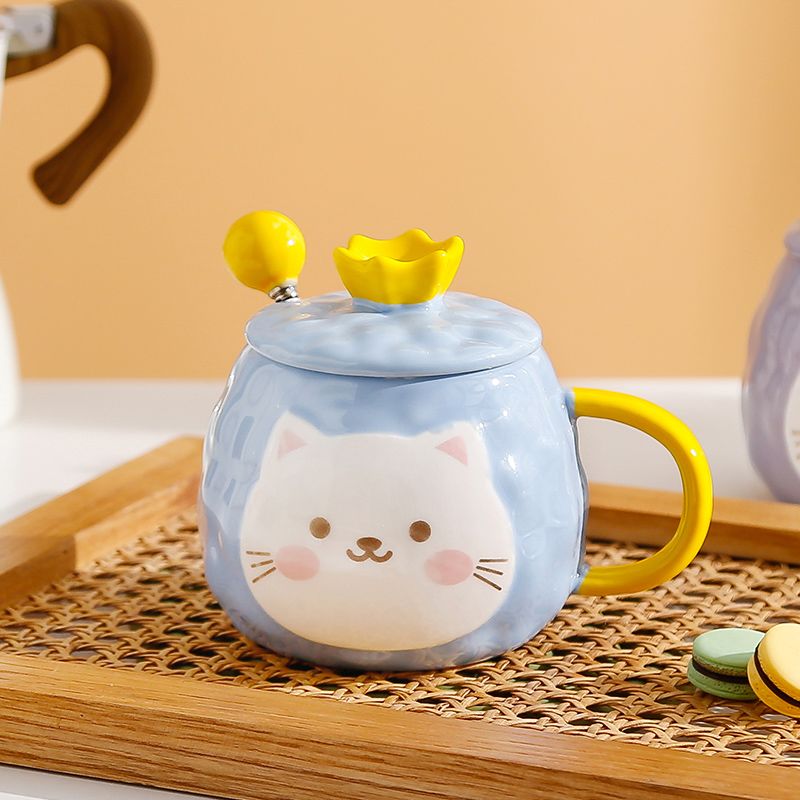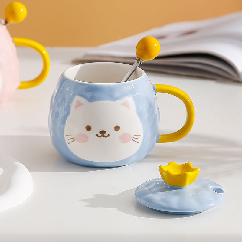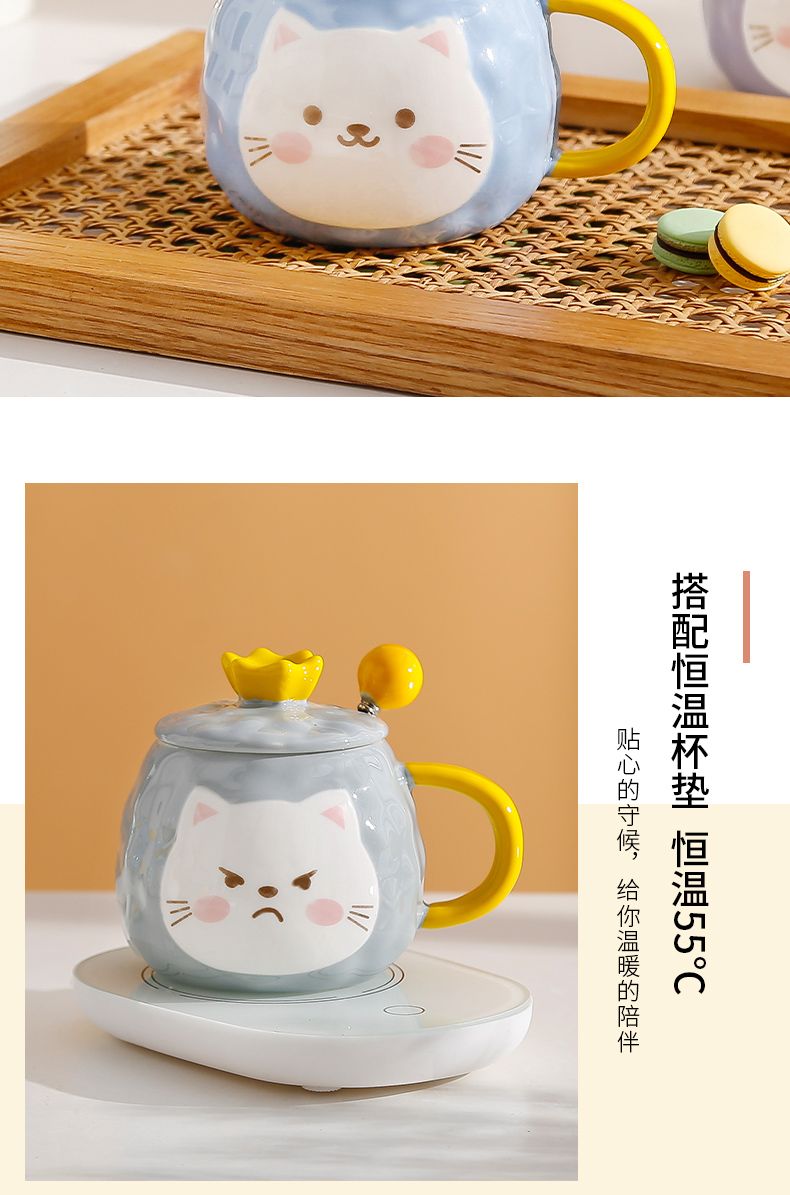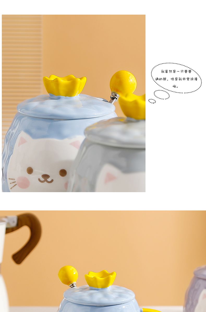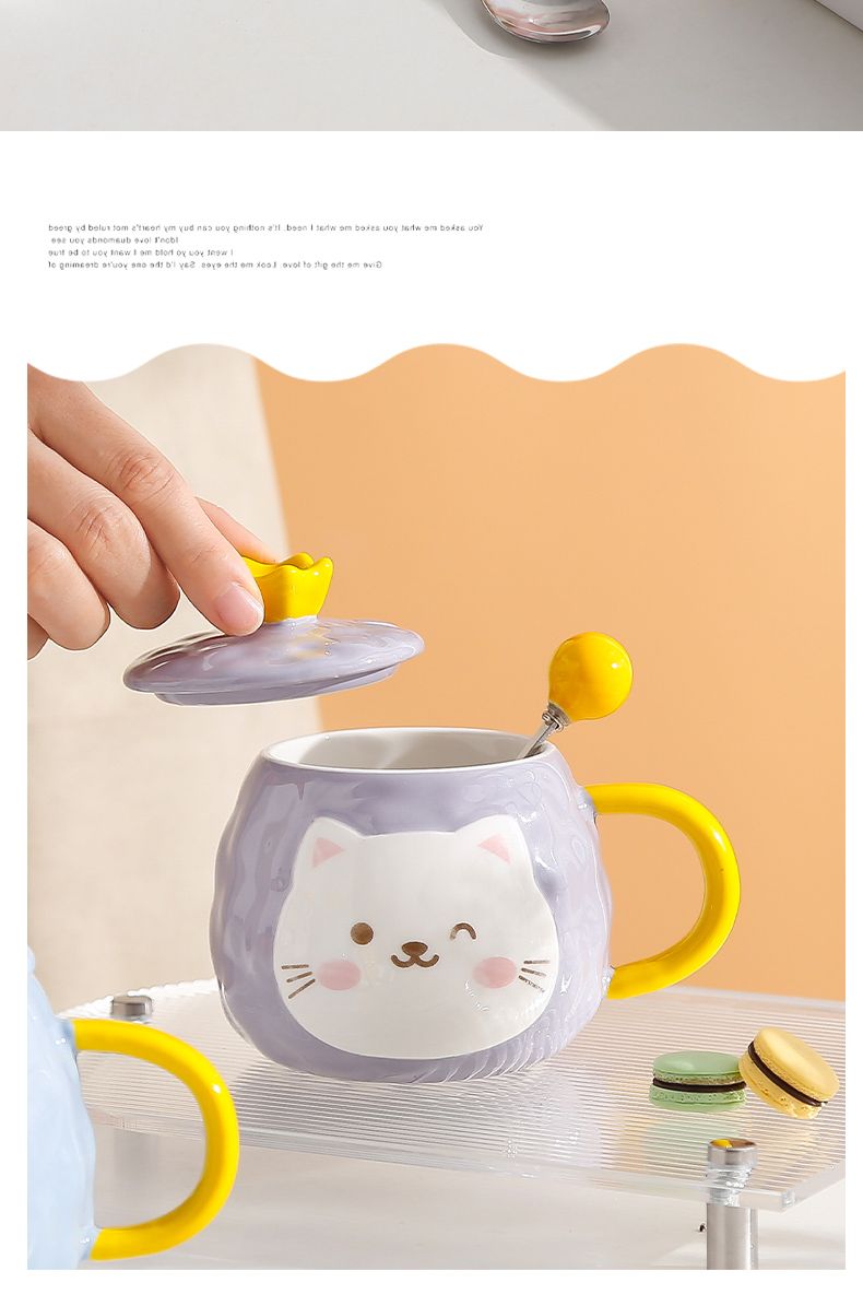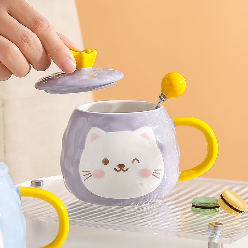 猫咪陶瓷杯子超萌小猫有盖喝水杯女上班族创意设计感马克杯带盖勺