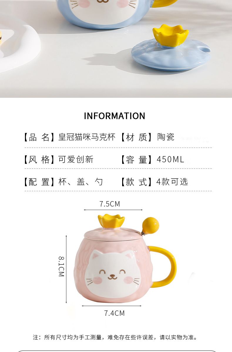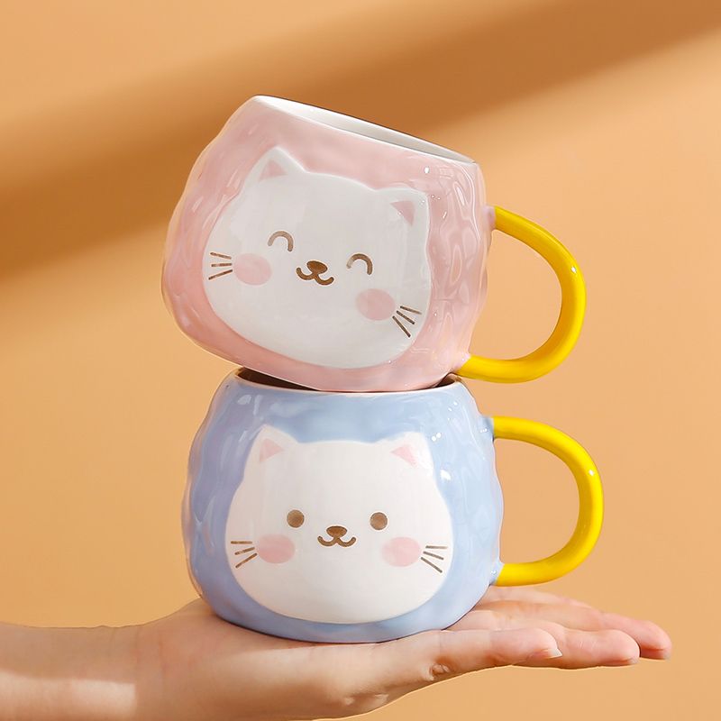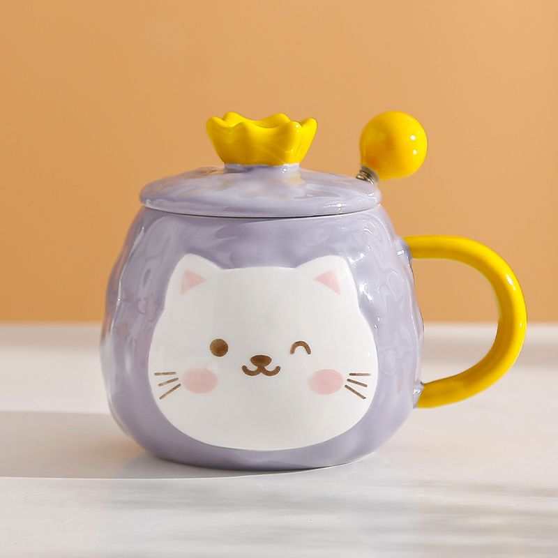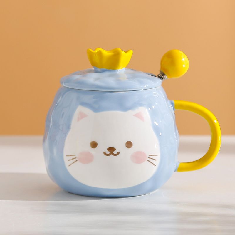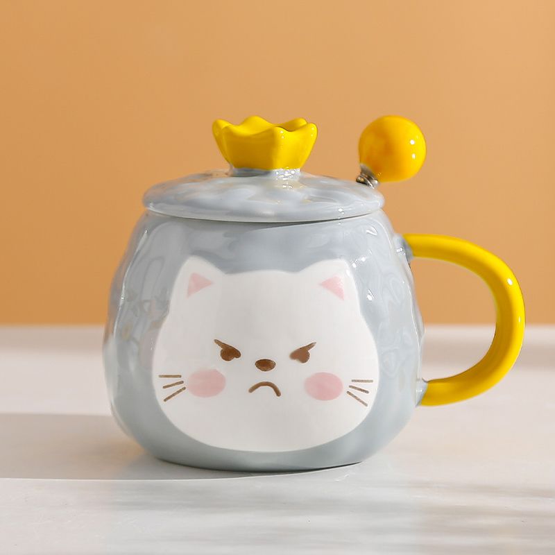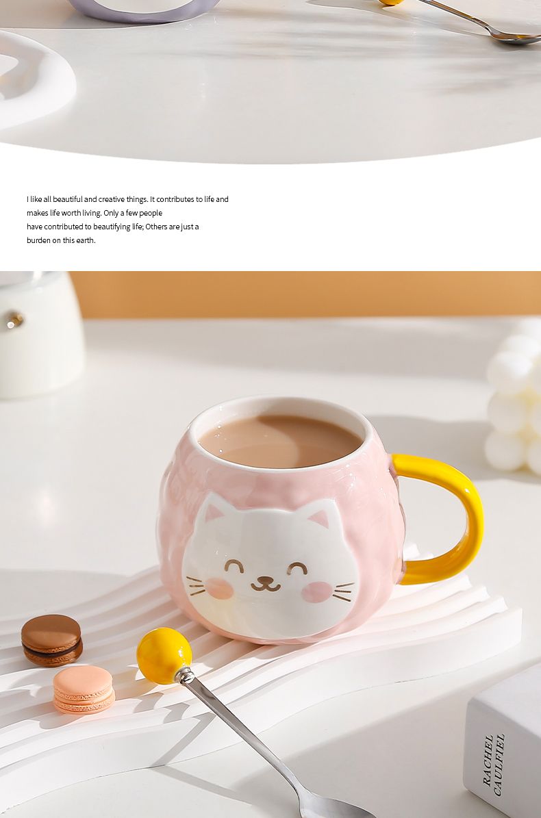 猫咪陶瓷杯子超萌小猫有盖喝水杯女上班族创意设计感马克杯带盖勺