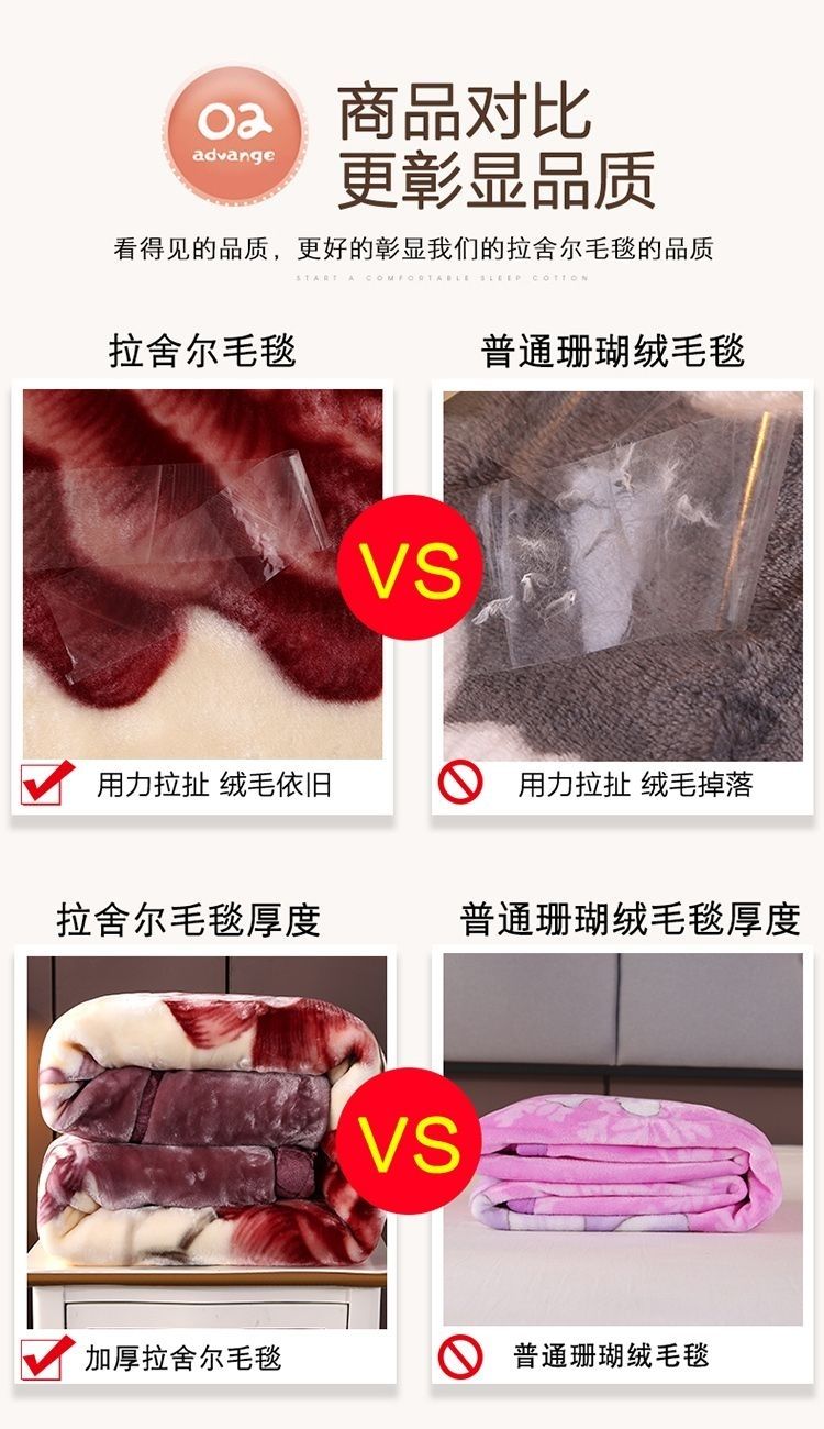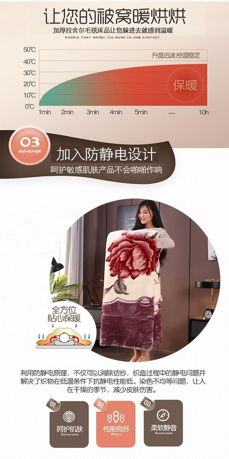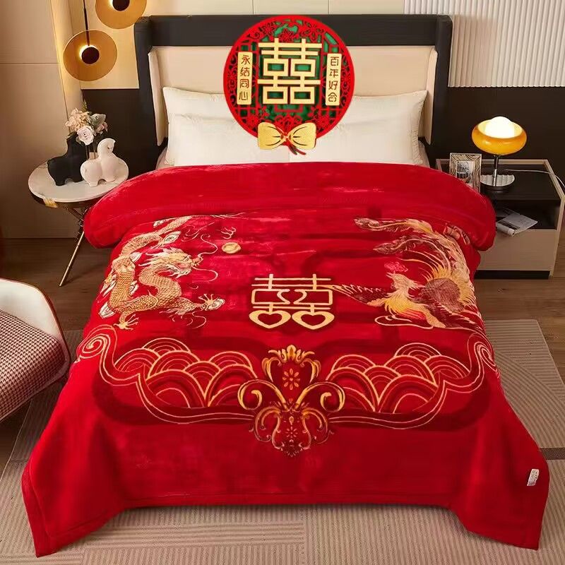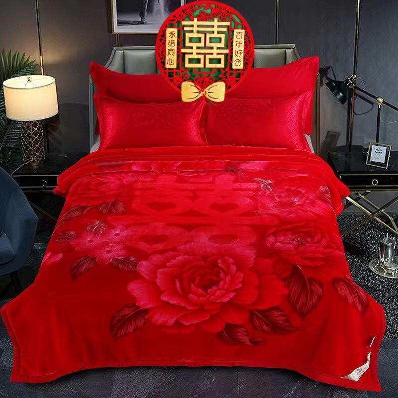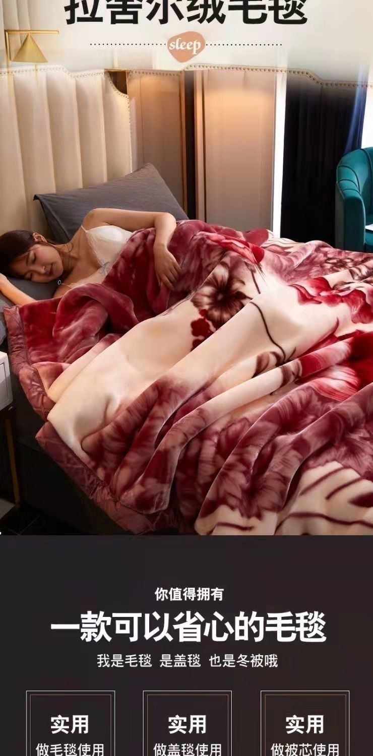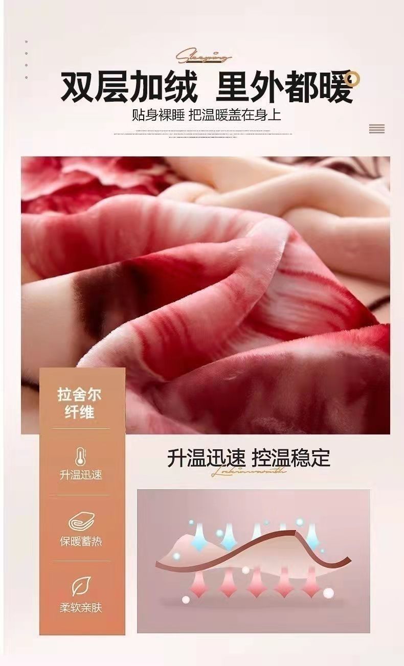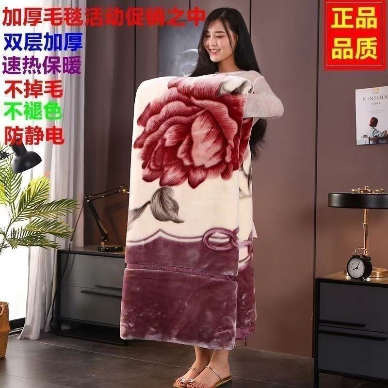 正品拉舍尔毛毯双层加厚婚庆盖毯秋冬季午睡毯单双人保暖学生被子