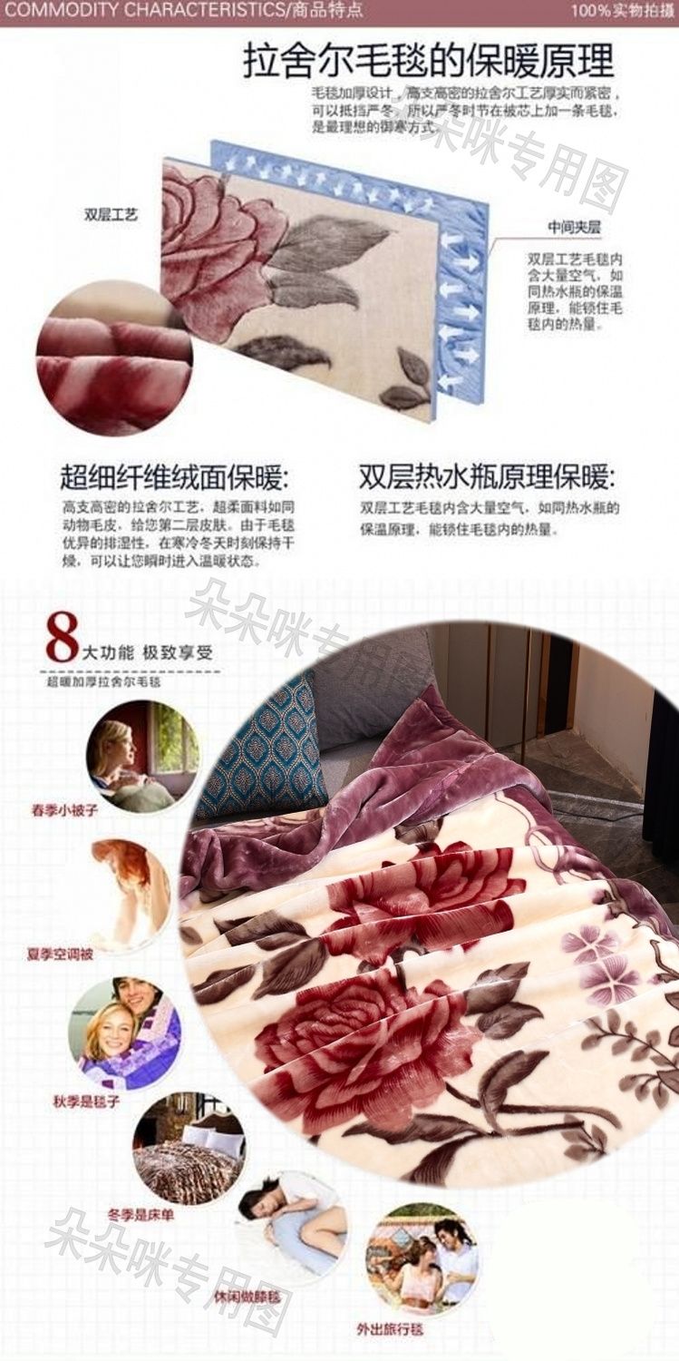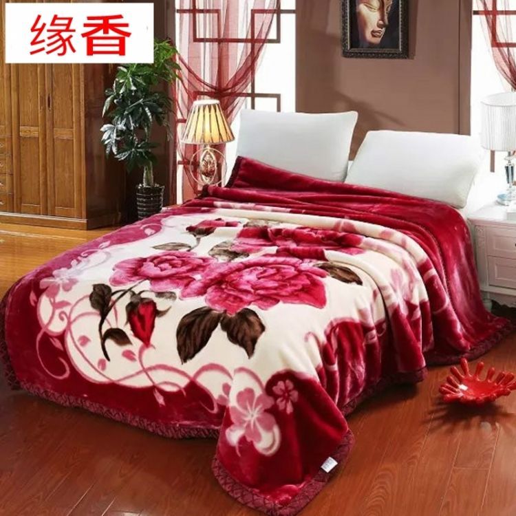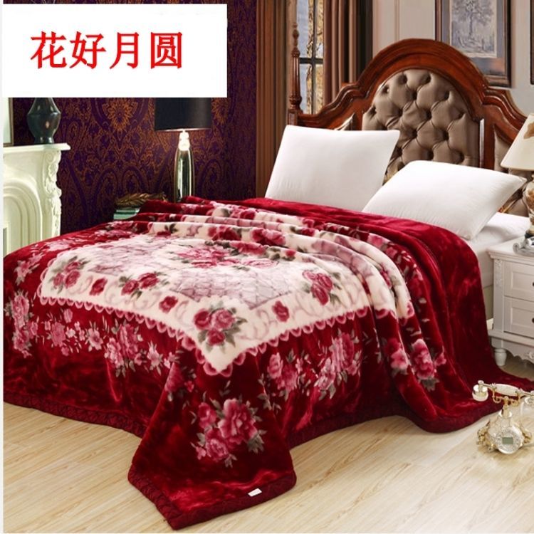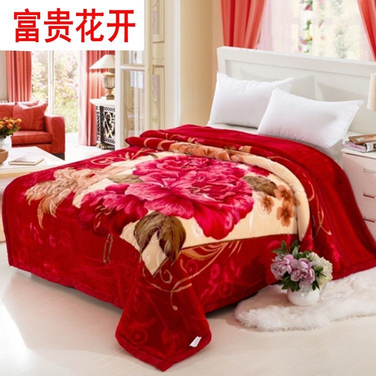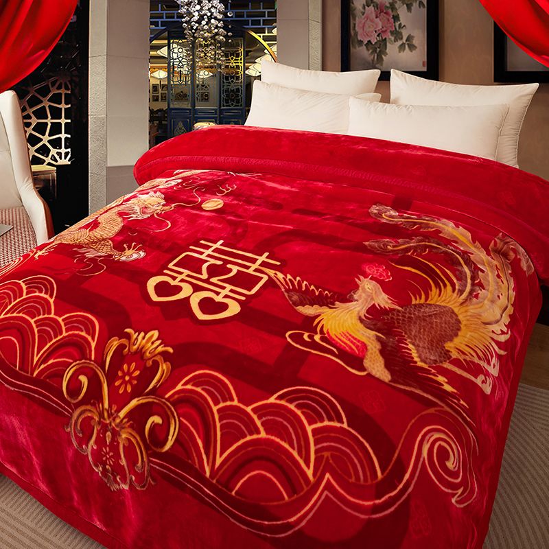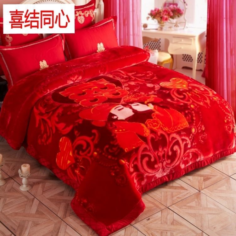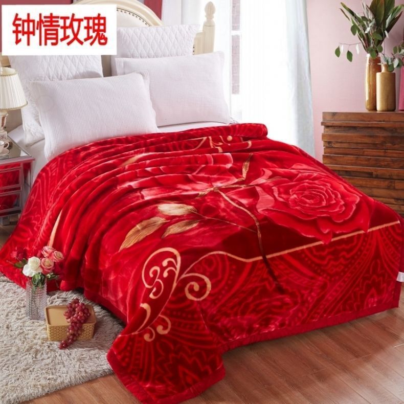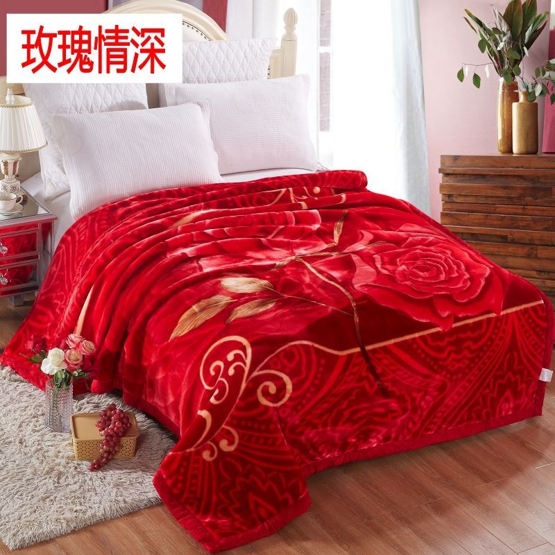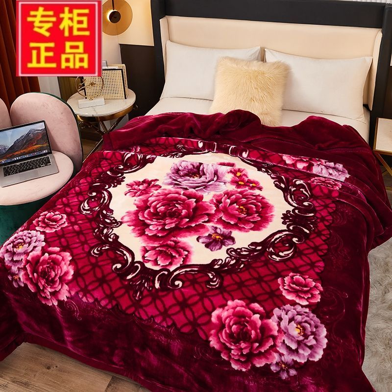 正品拉舍尔毛毯双层加厚婚庆大红盖毯冬季单双人毯子学生宿舍床单