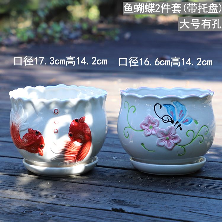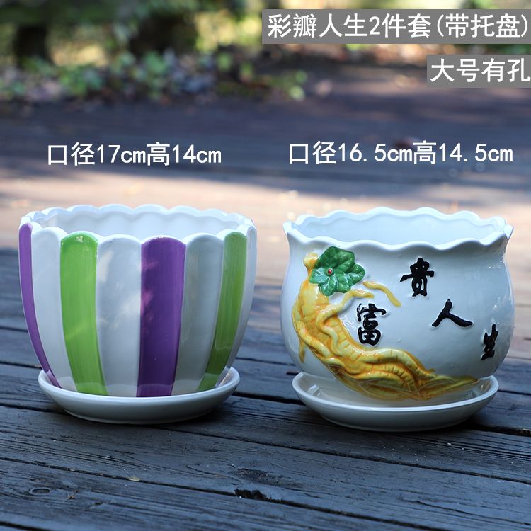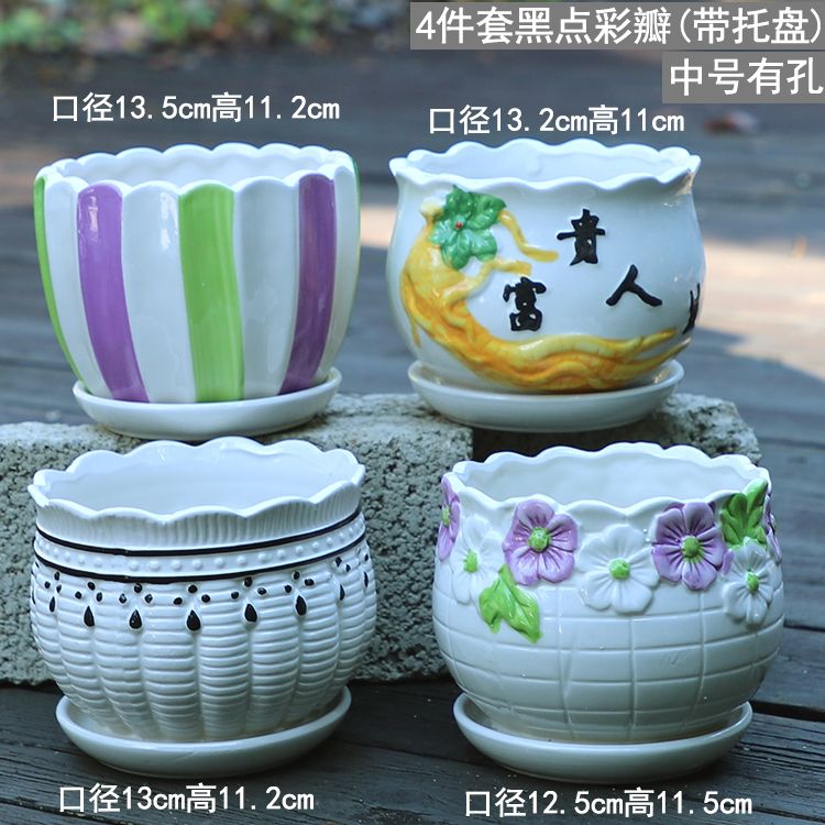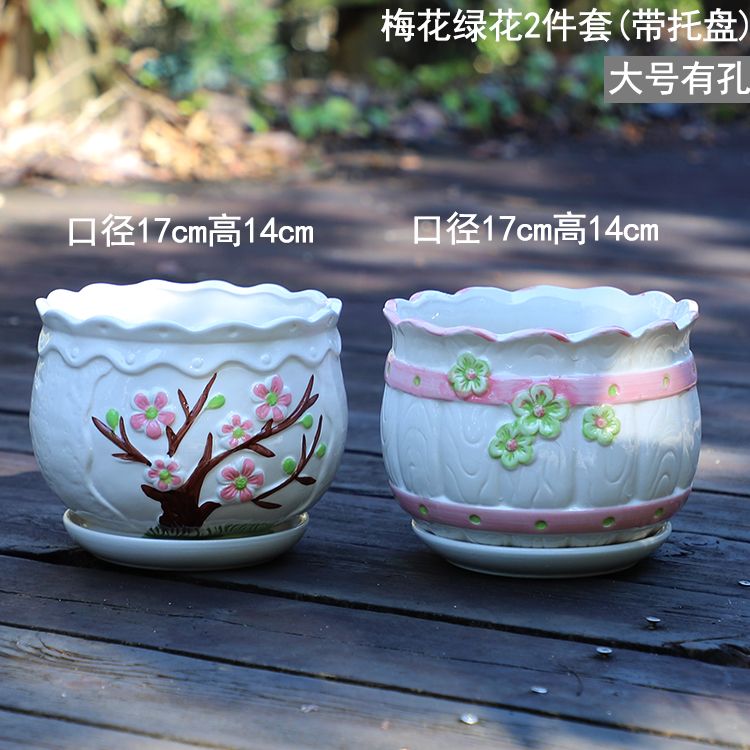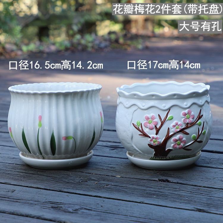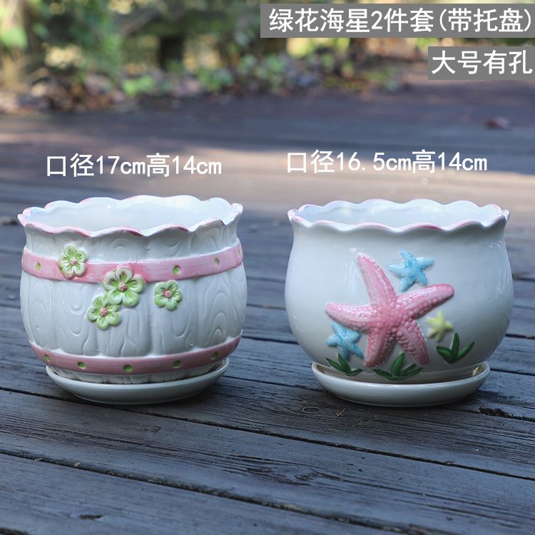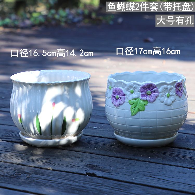 大号花盆陶瓷带托盘多肉花盆兰花盆批发清仓创意绿萝植物室内