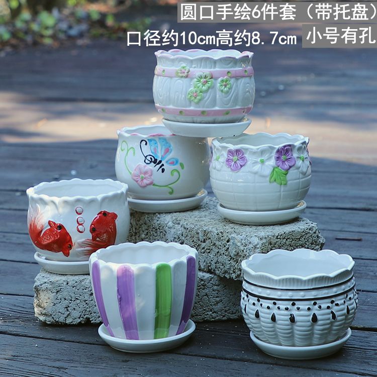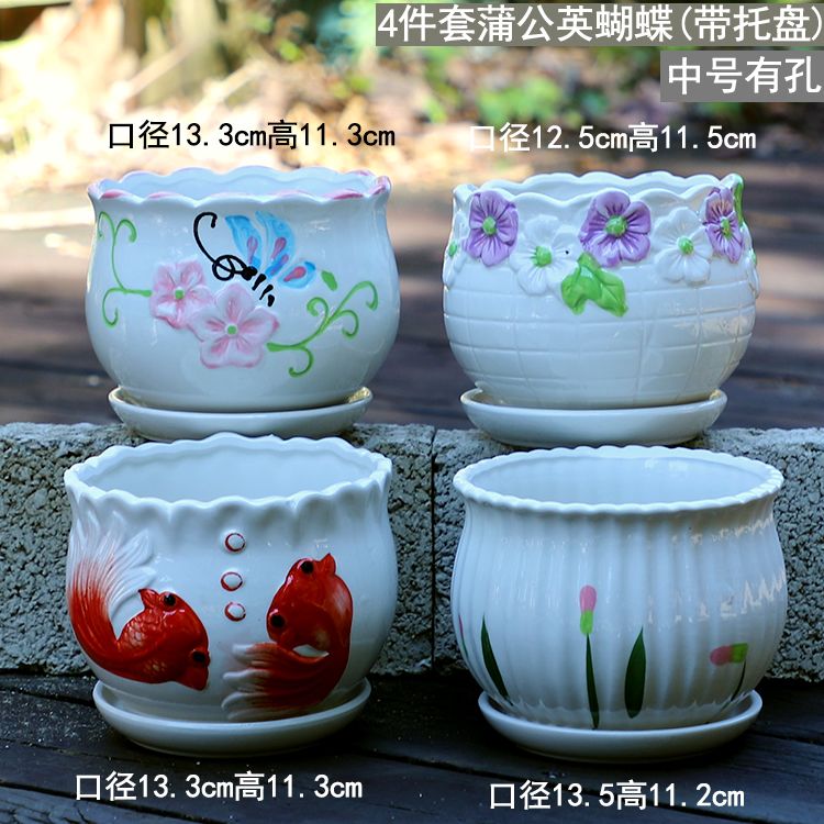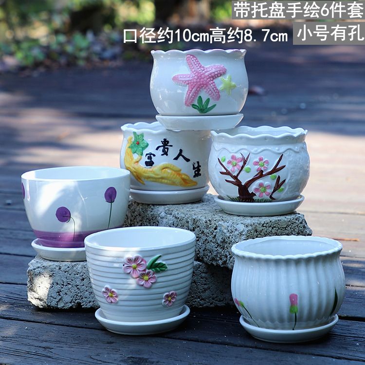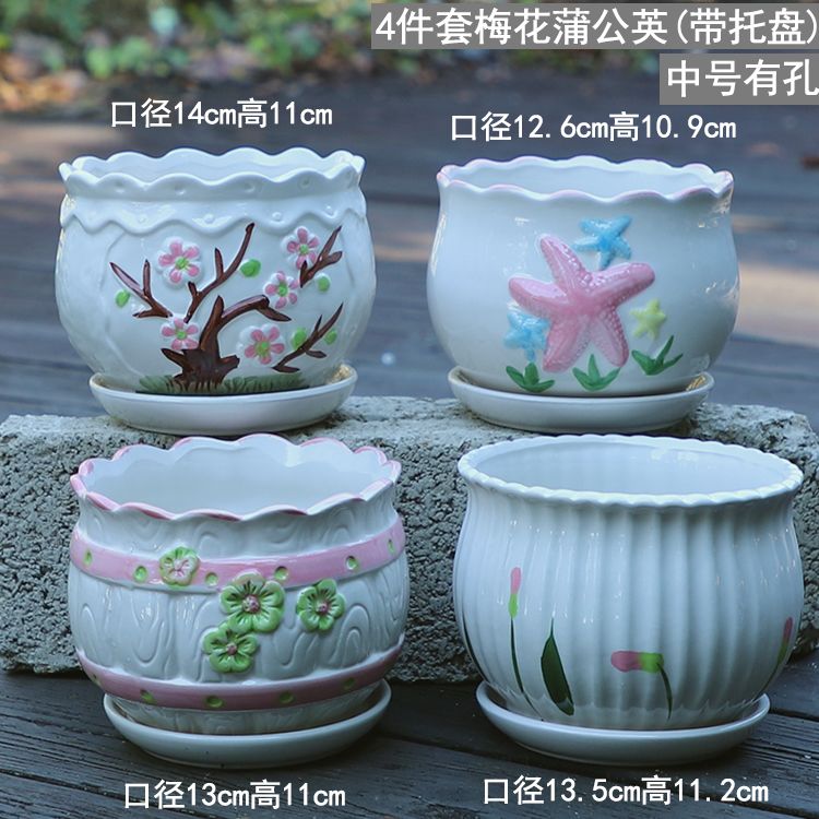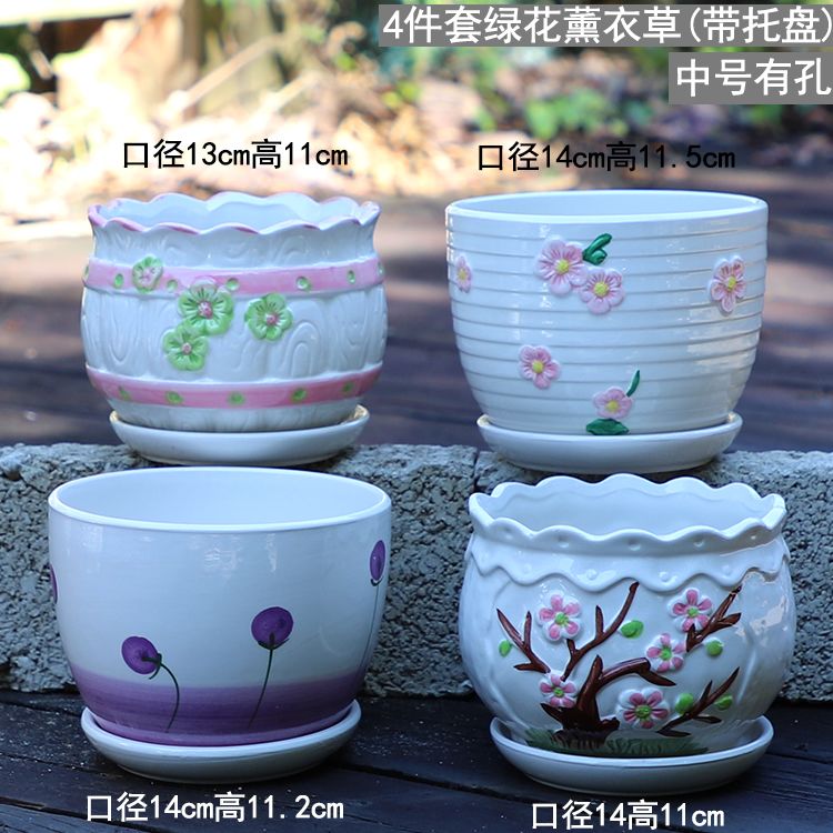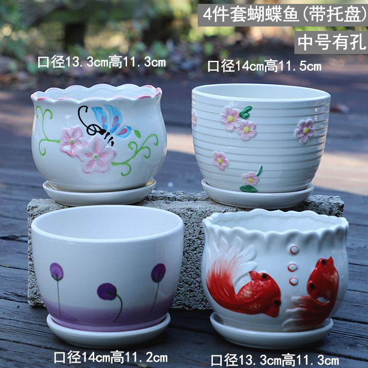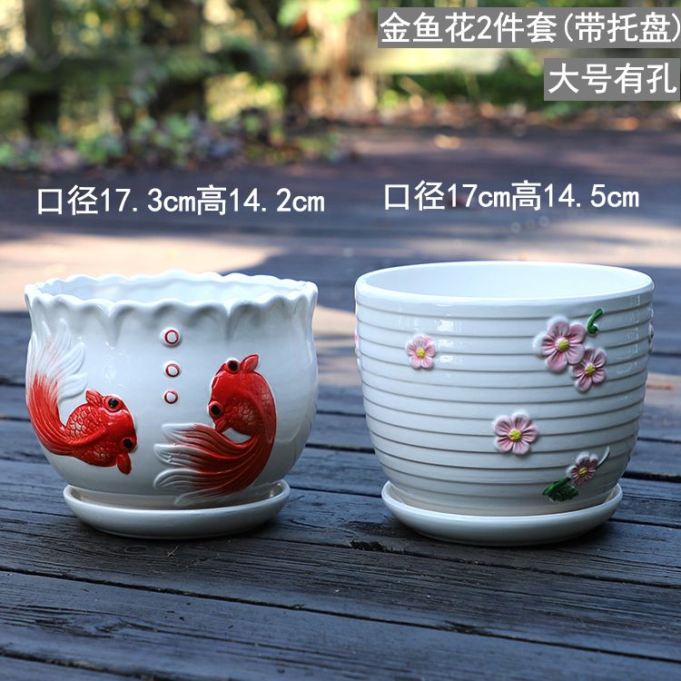 大号花盆陶瓷带托盘多肉花盆兰花盆批发清仓创意绿萝植物室内