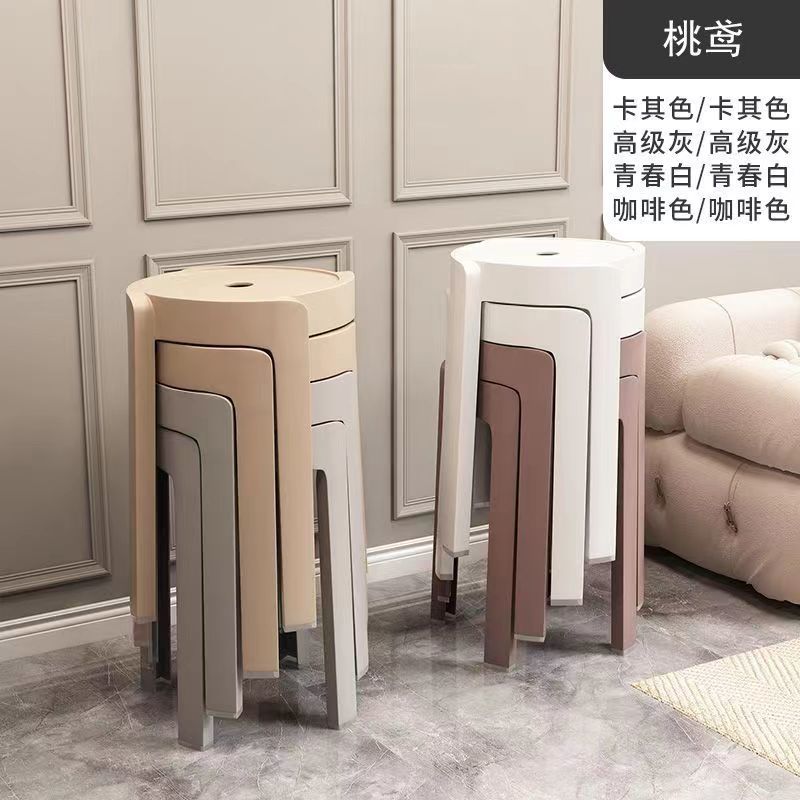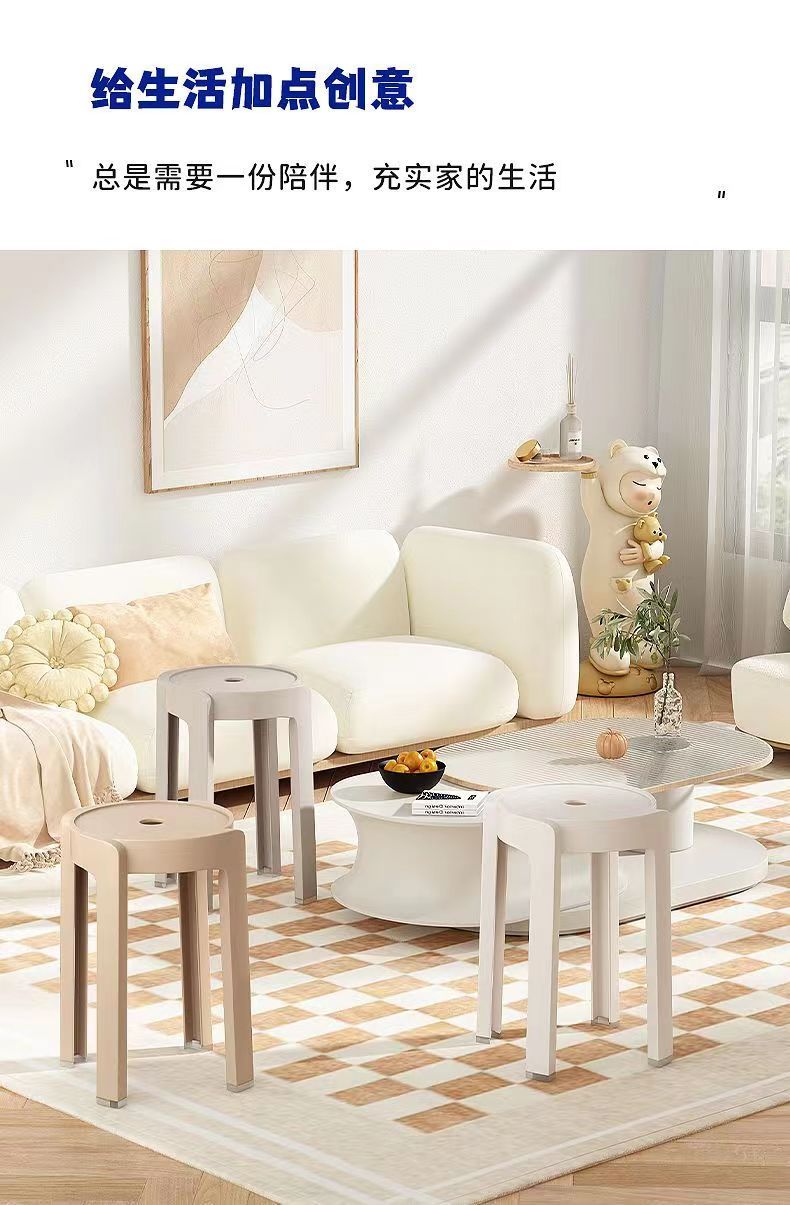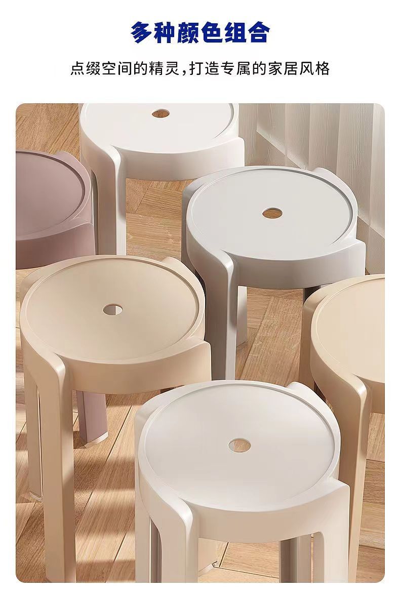 塑料凳子家用加厚凳子现代简约可叠放客厅餐桌椅圆凳商用旋风板凳