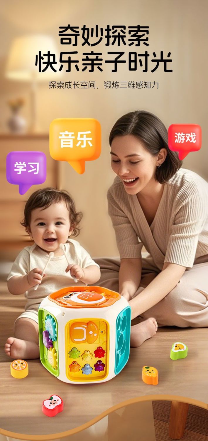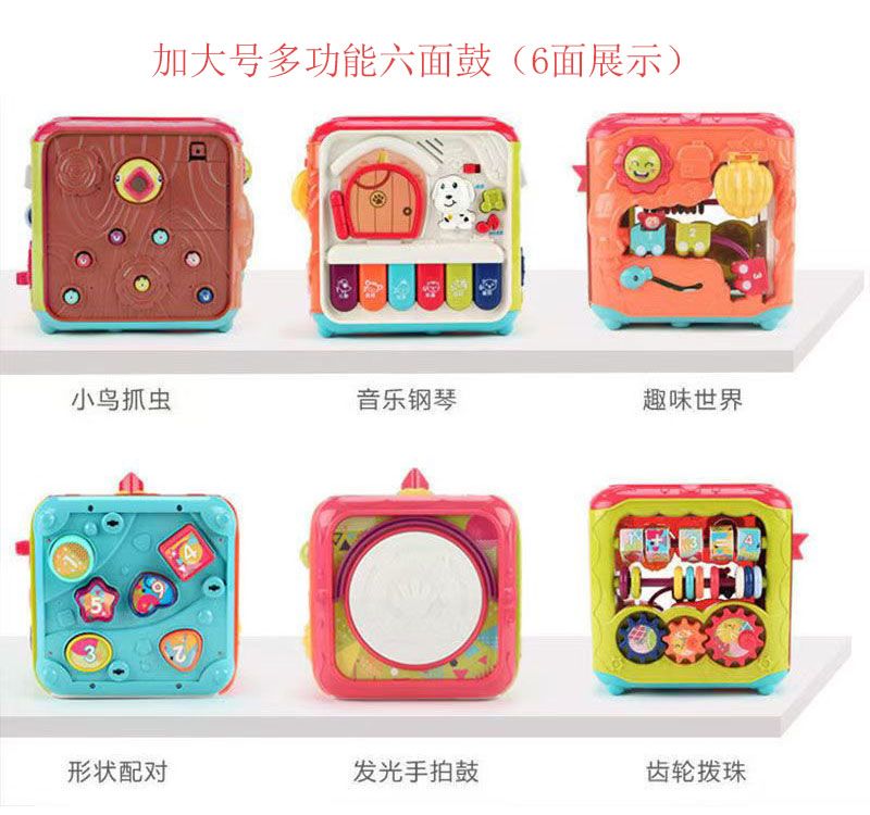 宝宝大号手拍鼓音乐鼓拍拍鼓儿童六面体益智充电鼓0-1岁婴儿玩具