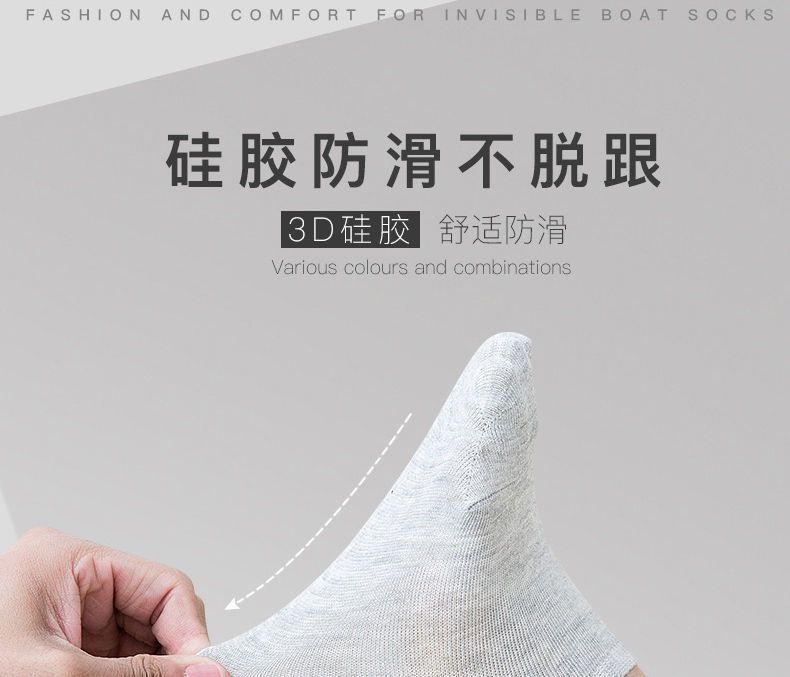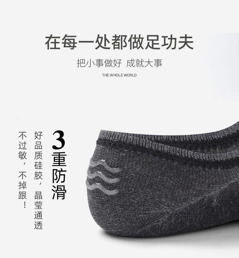 男士硅胶隐形短袜防臭男袜浅口隐形船袜无印情侣硅胶防滑不掉跟