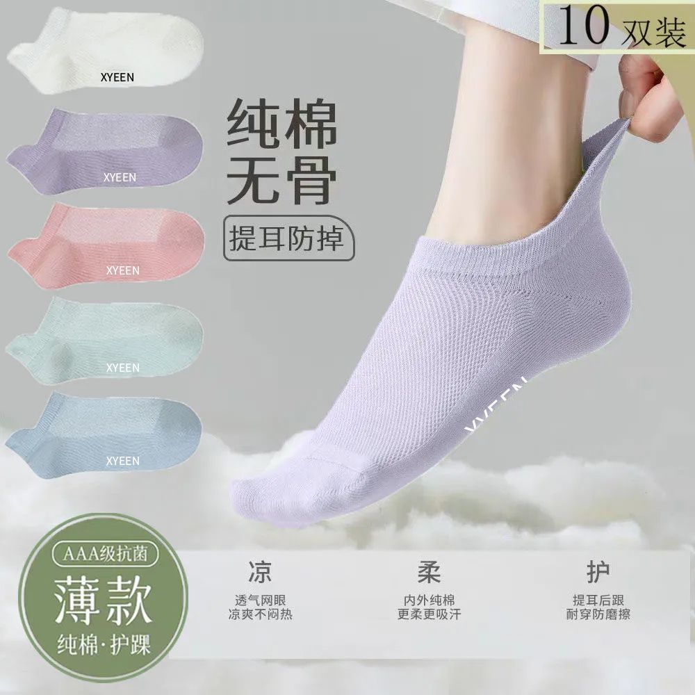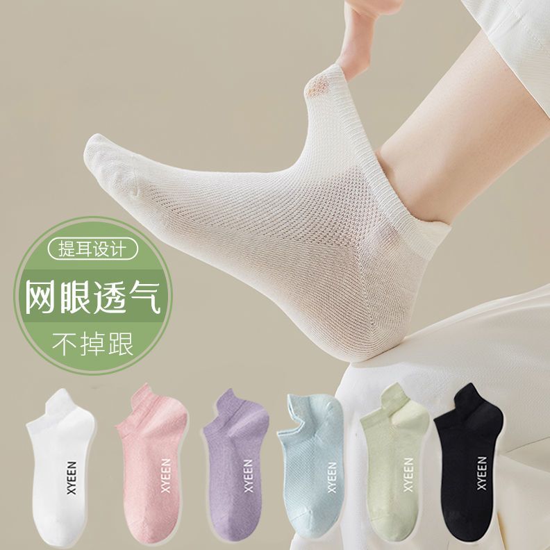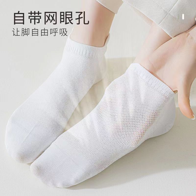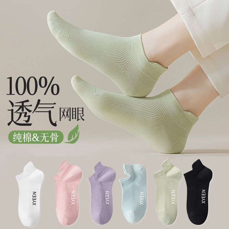 100%纯棉袜子夏季女款短筒韩版吸汗防臭纯色透气网眼百搭浅口隐形
