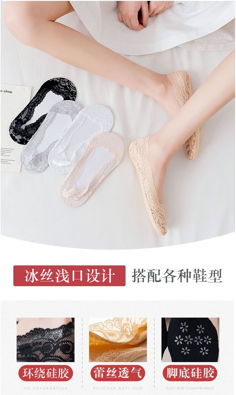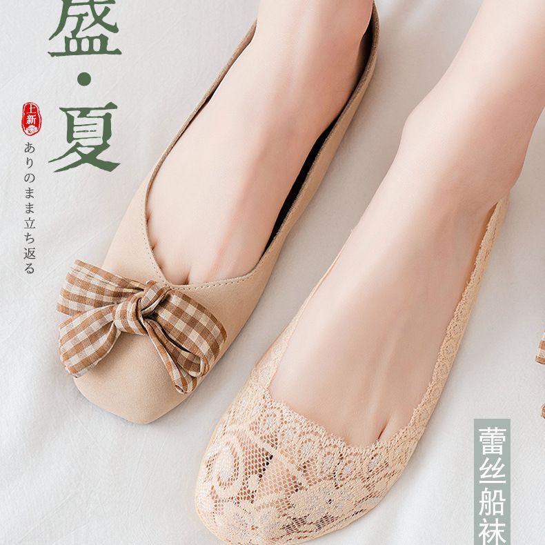 蕾丝花边船袜女棉底硅胶防滑低帮浅口短袜超隐形女袜子春夏季薄款
