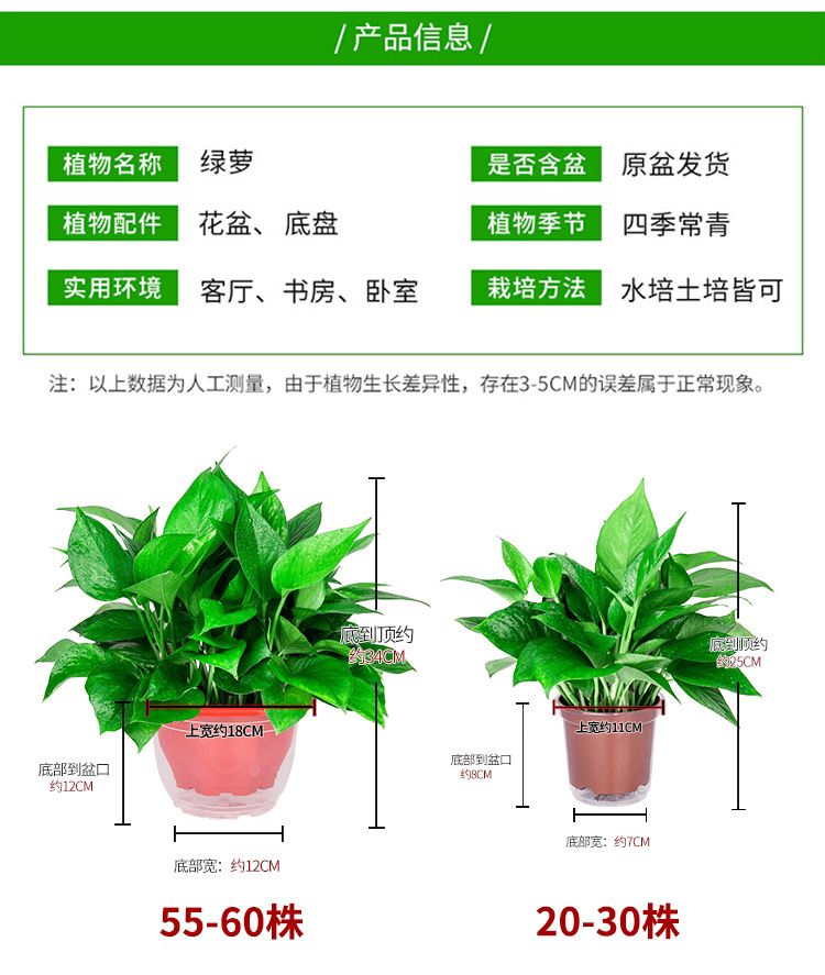 | 60 red pot green radish 4 pots with water absorption basin(60株红盆绿萝4盆送吸水盆) | USD $5.5 | 999999 piece available |