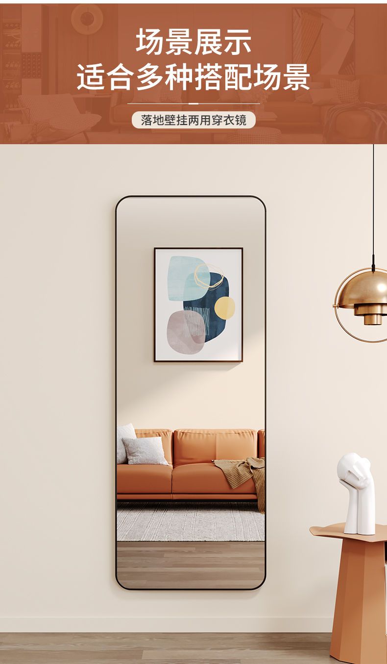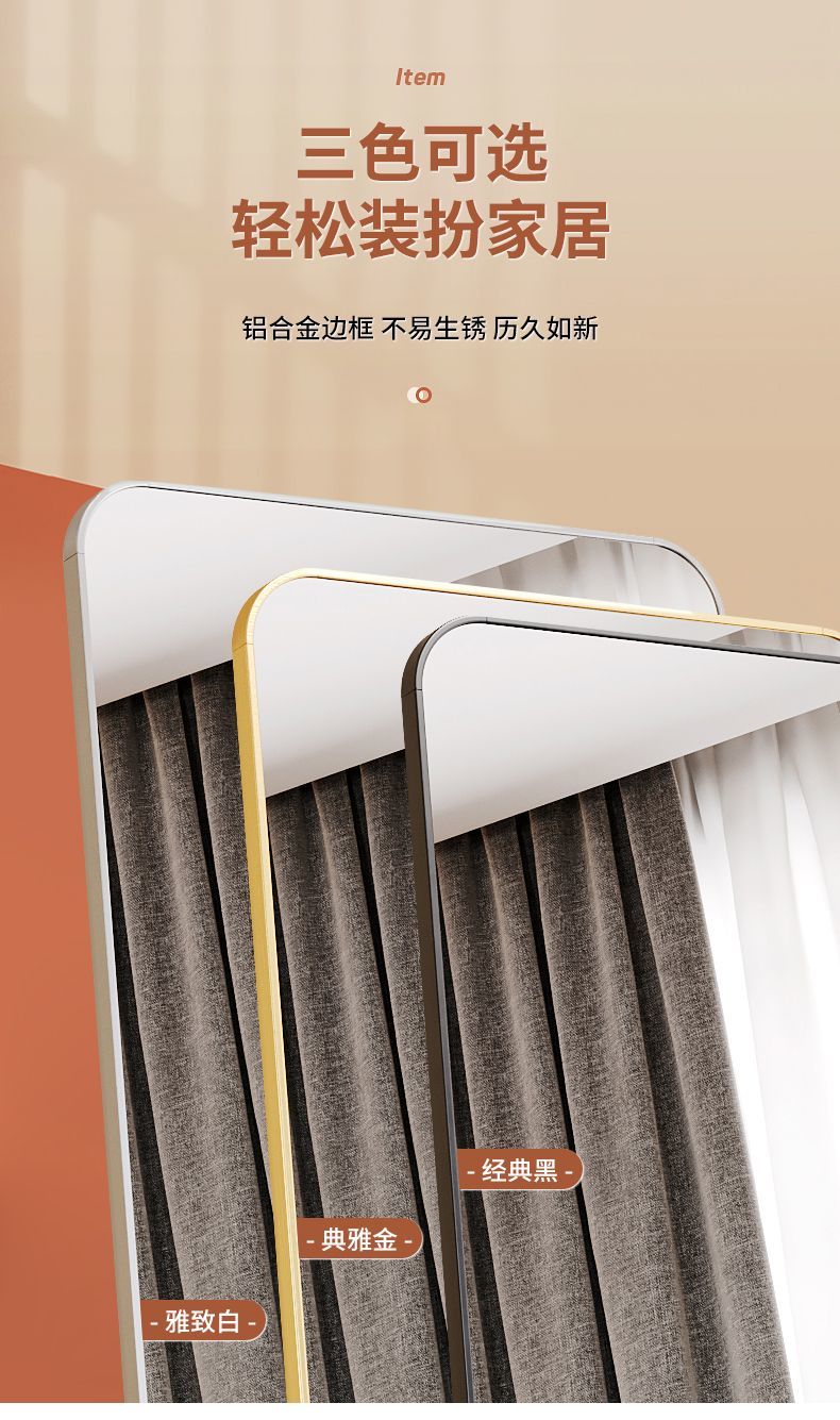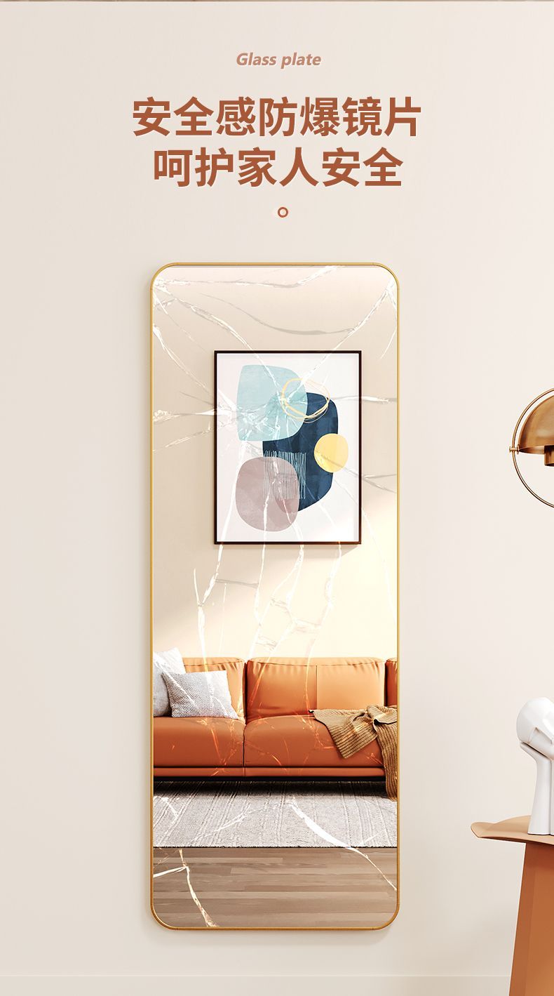 镜子全身穿衣镜落地家用壁挂贴墙女生卧室ins风网红挂墙试衣镜
