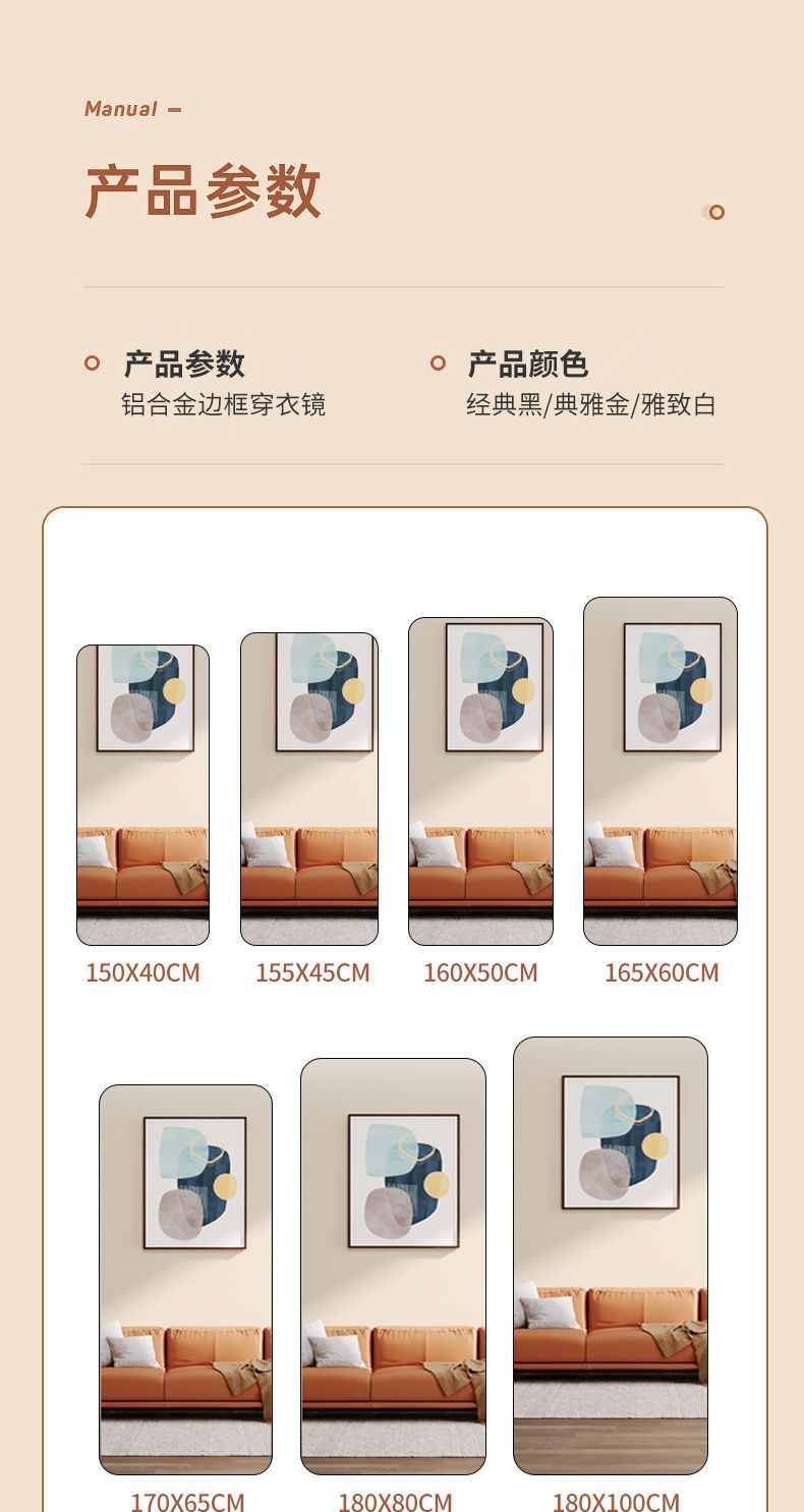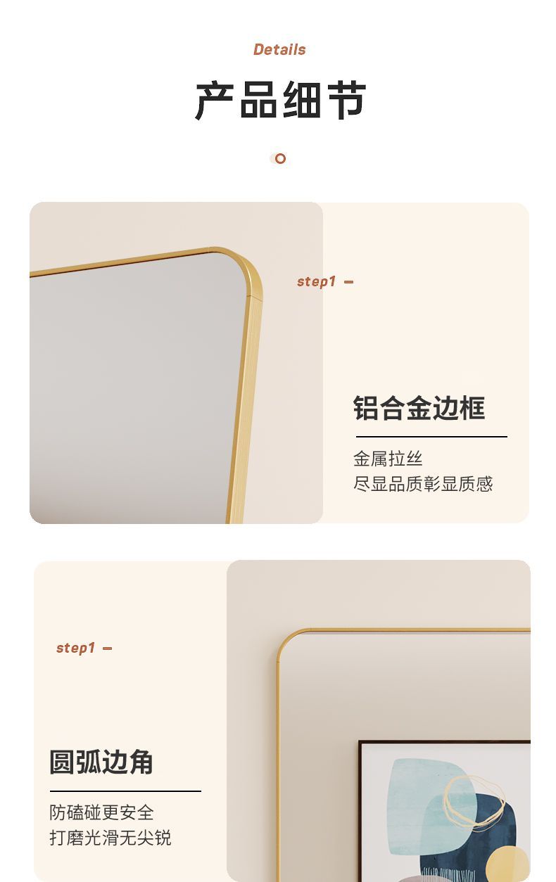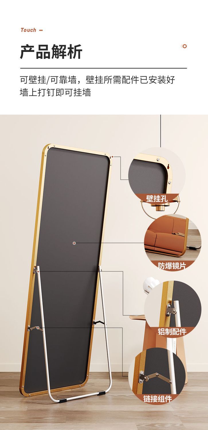 镜子全身穿衣镜落地家用壁挂贴墙女生卧室ins风网红挂墙试衣镜