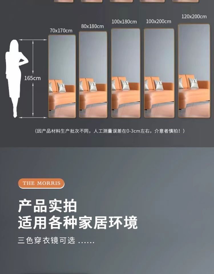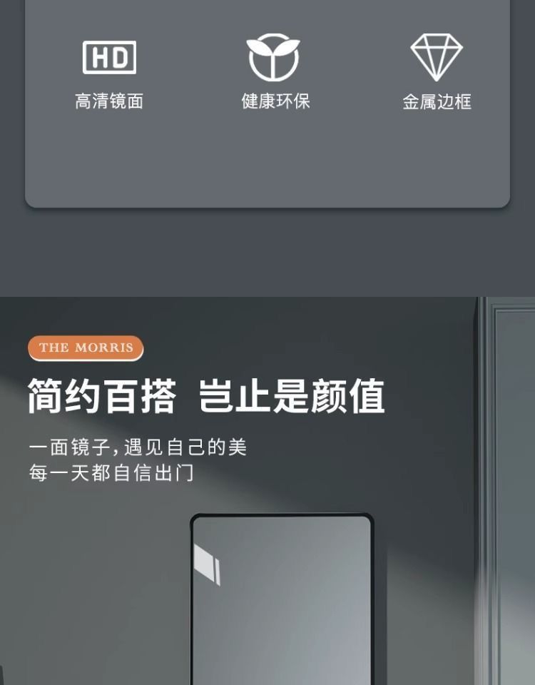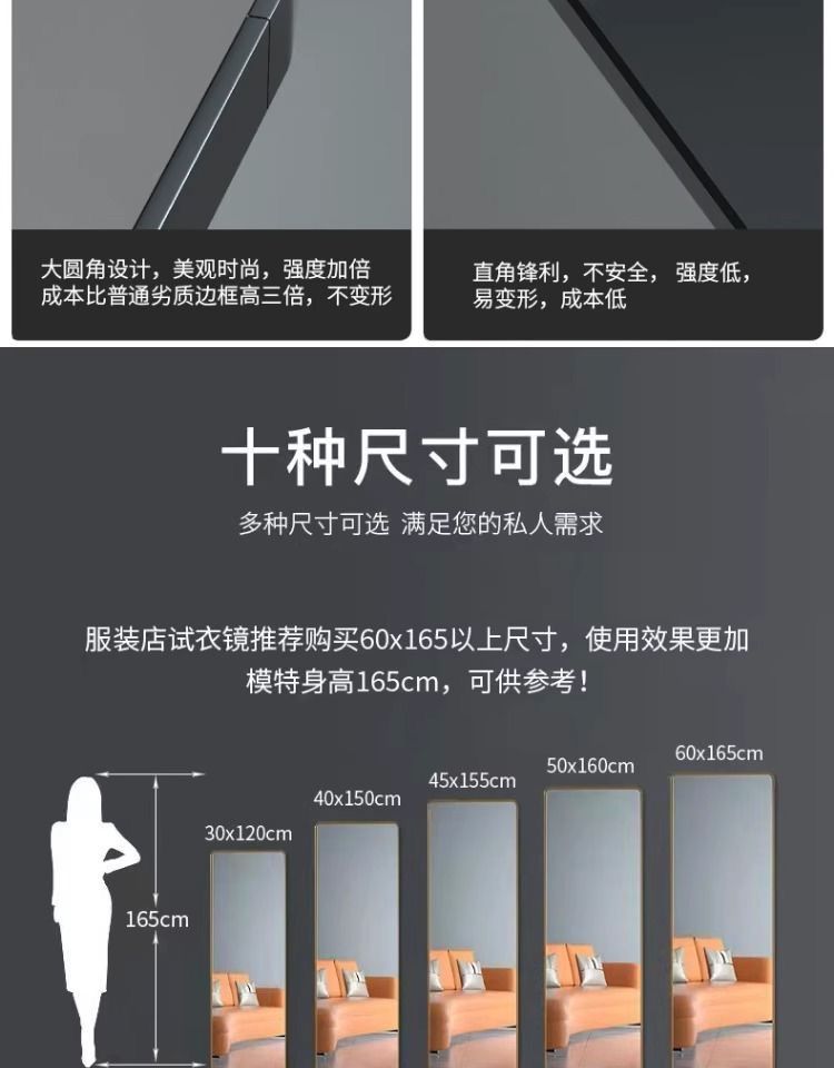 全身镜穿衣镜家用落地镜卧室壁挂贴墙宿舍试衣镜化妆镜梳妆镜 ins