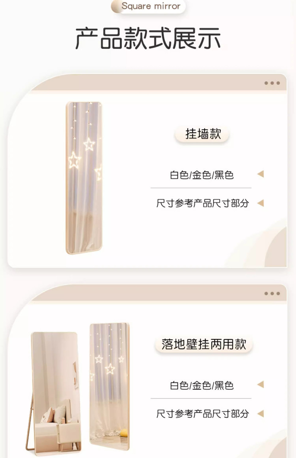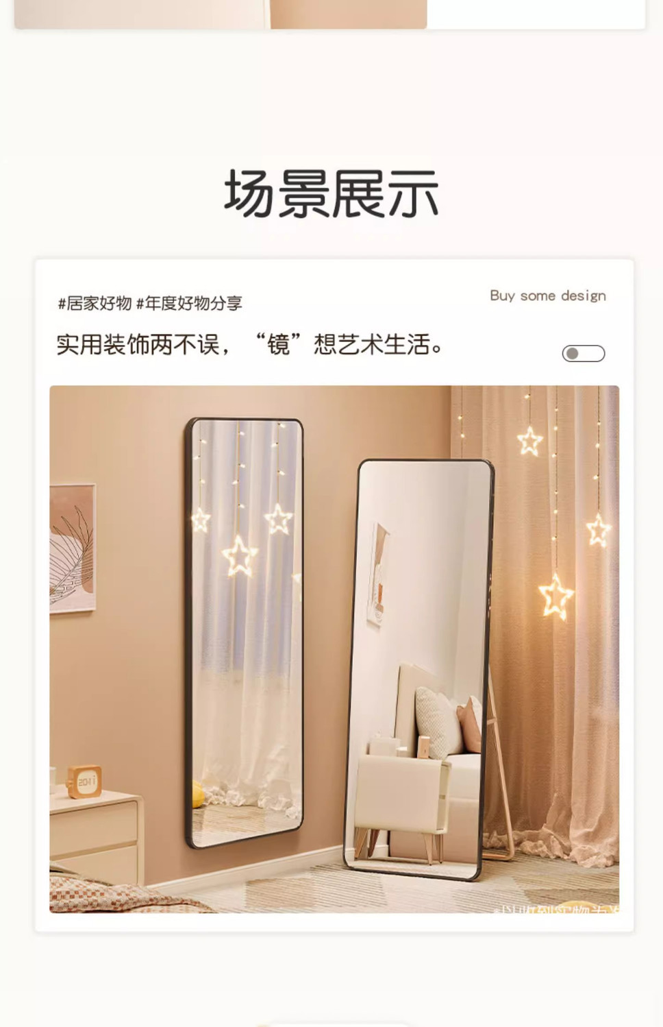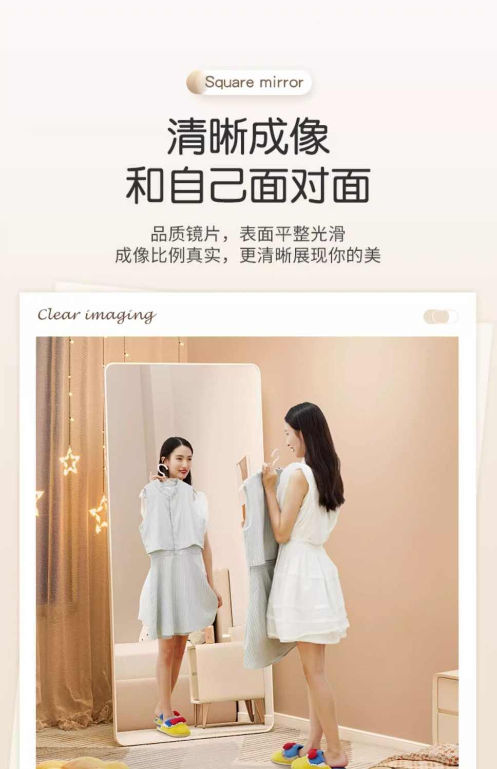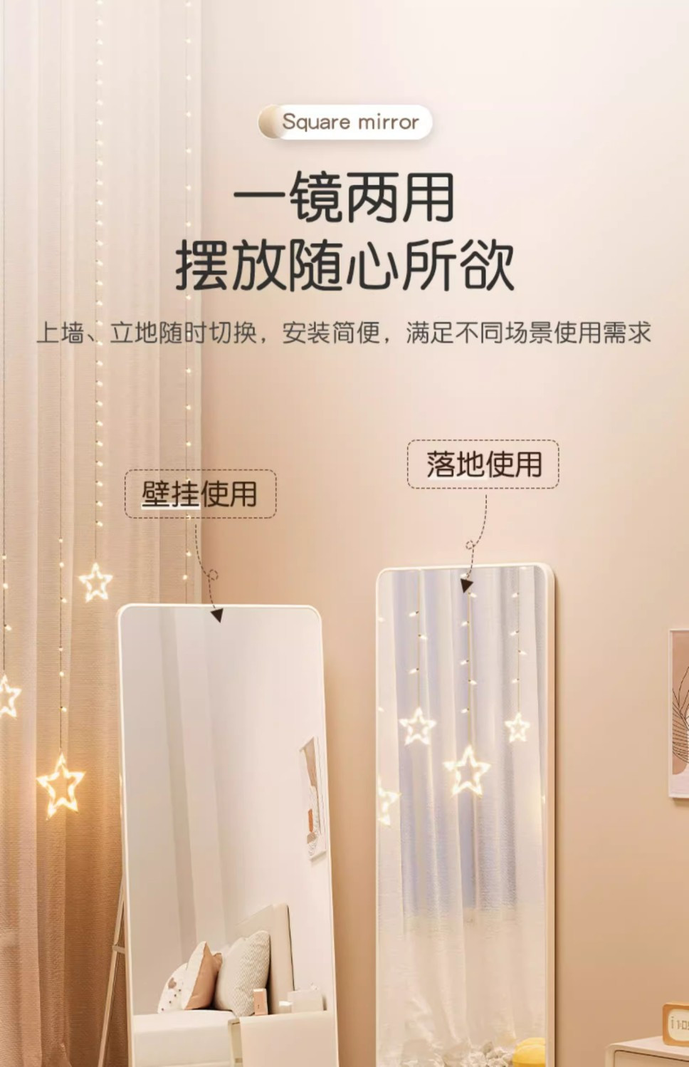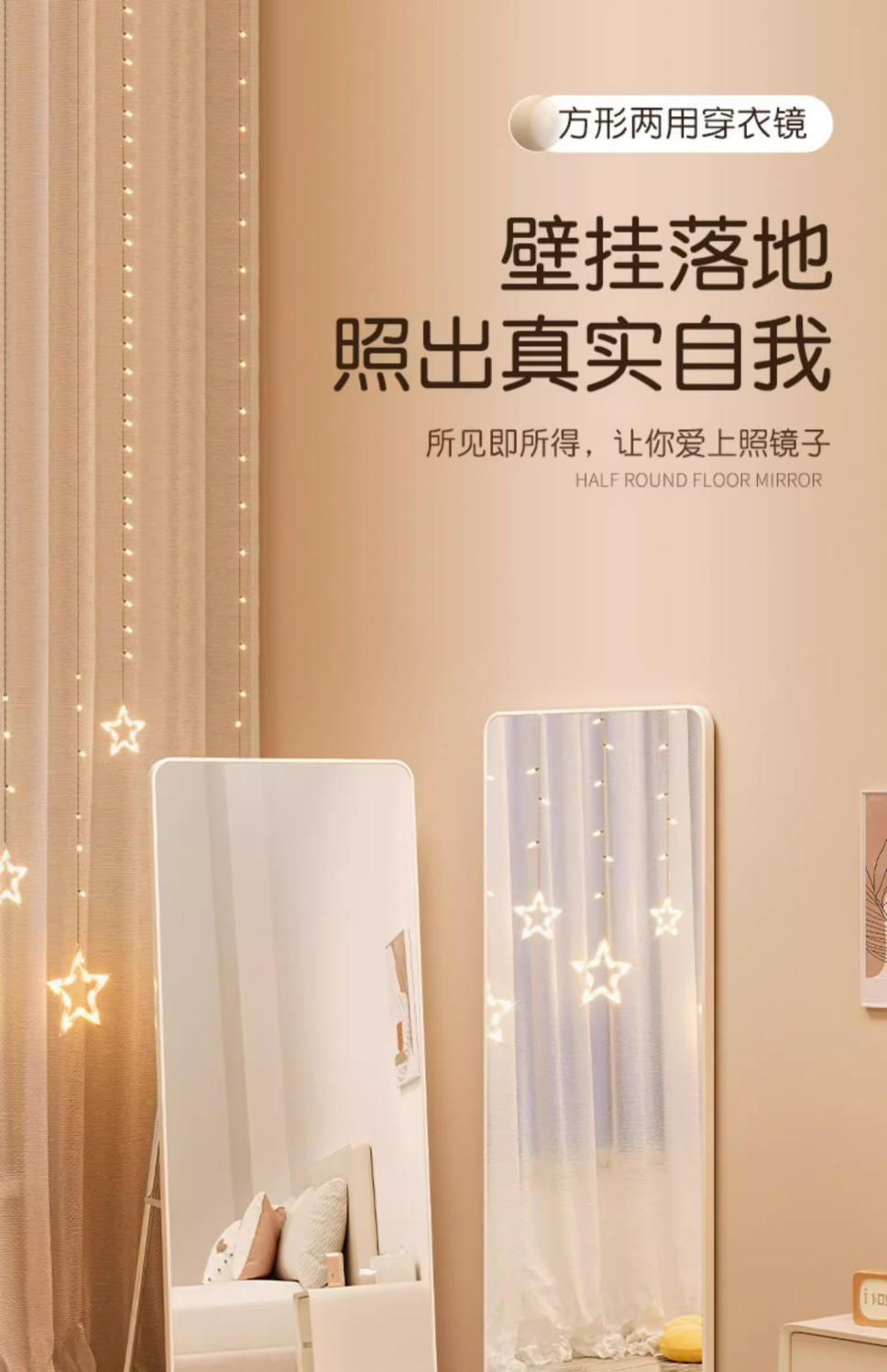 网红全身镜卧室家用挂墙试衣镜女生穿衣镜落地镜家用立体壁挂镜子