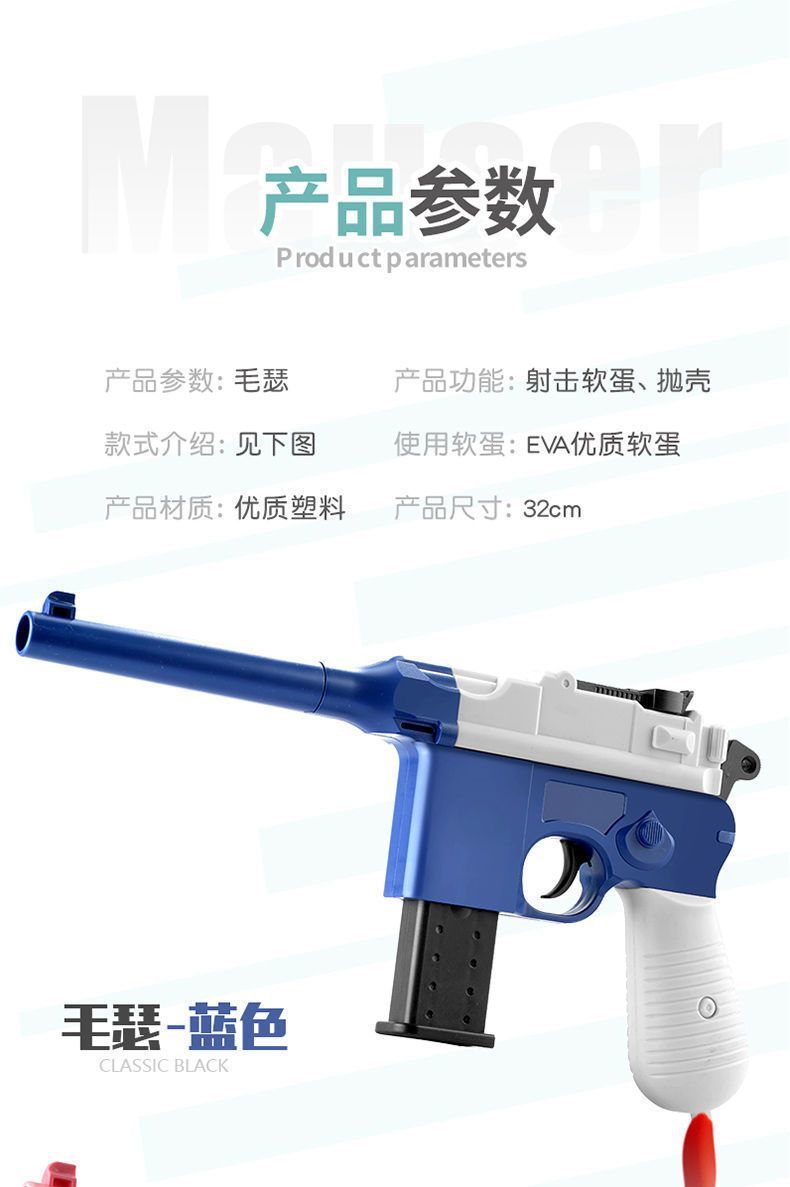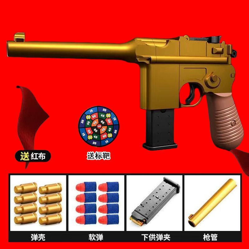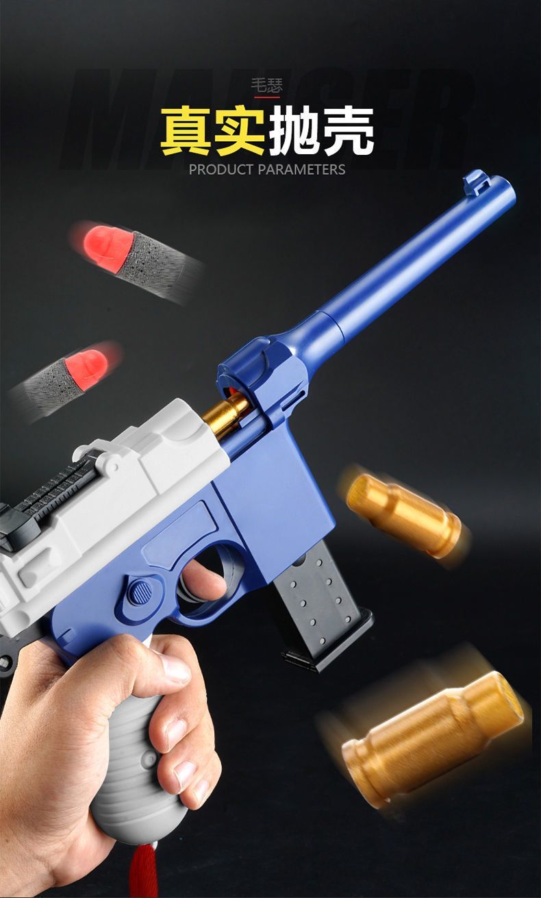 儿童复古毛瑟手枪玩具软弹枪可发射子弹手动上膛模型男孩生日礼物