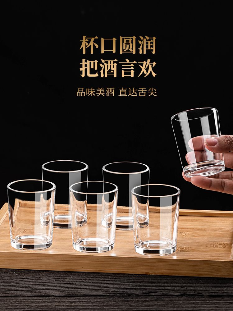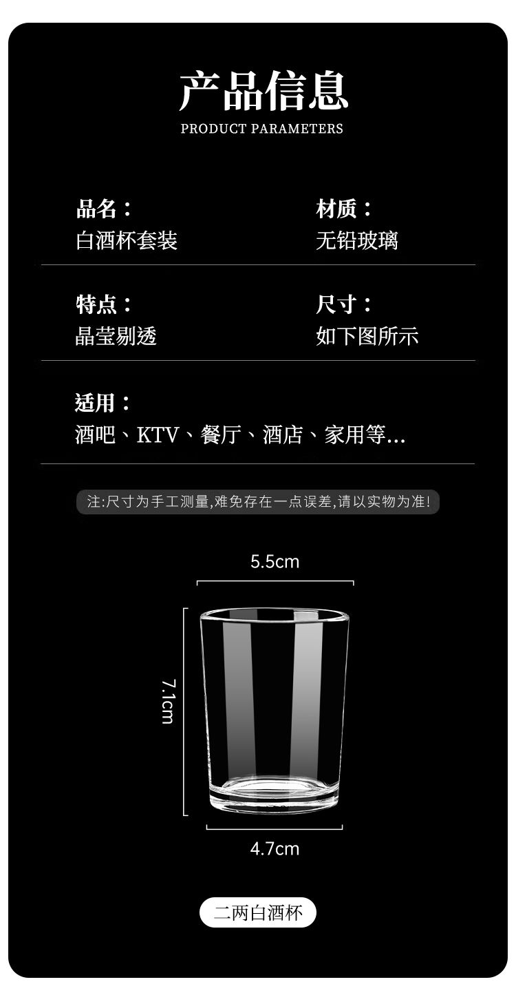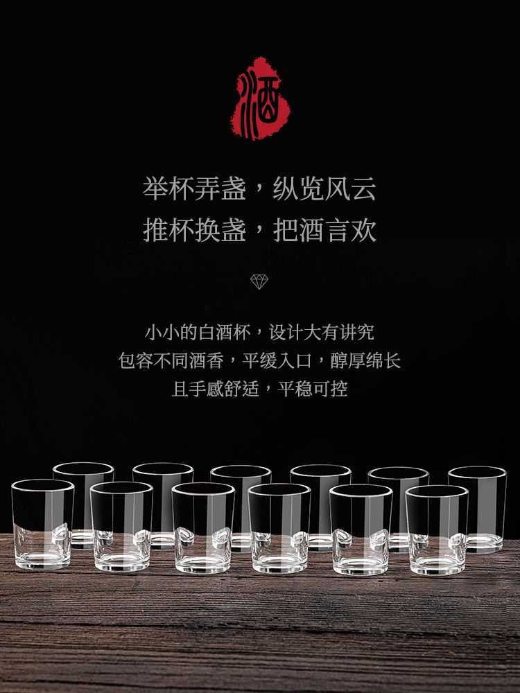 二两白酒杯套装家用酒具2两一口中式创意加厚无铅玻璃透明酒杯子