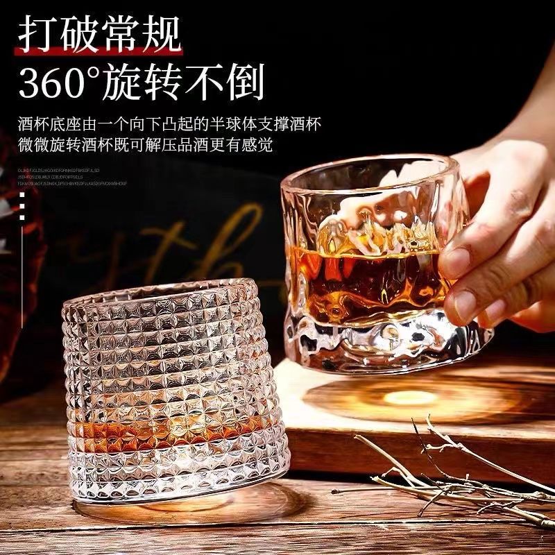 网红旋转不倒翁无铅玻璃酒杯威士忌杯洋酒杯果饮啤酒高颜值解压杯