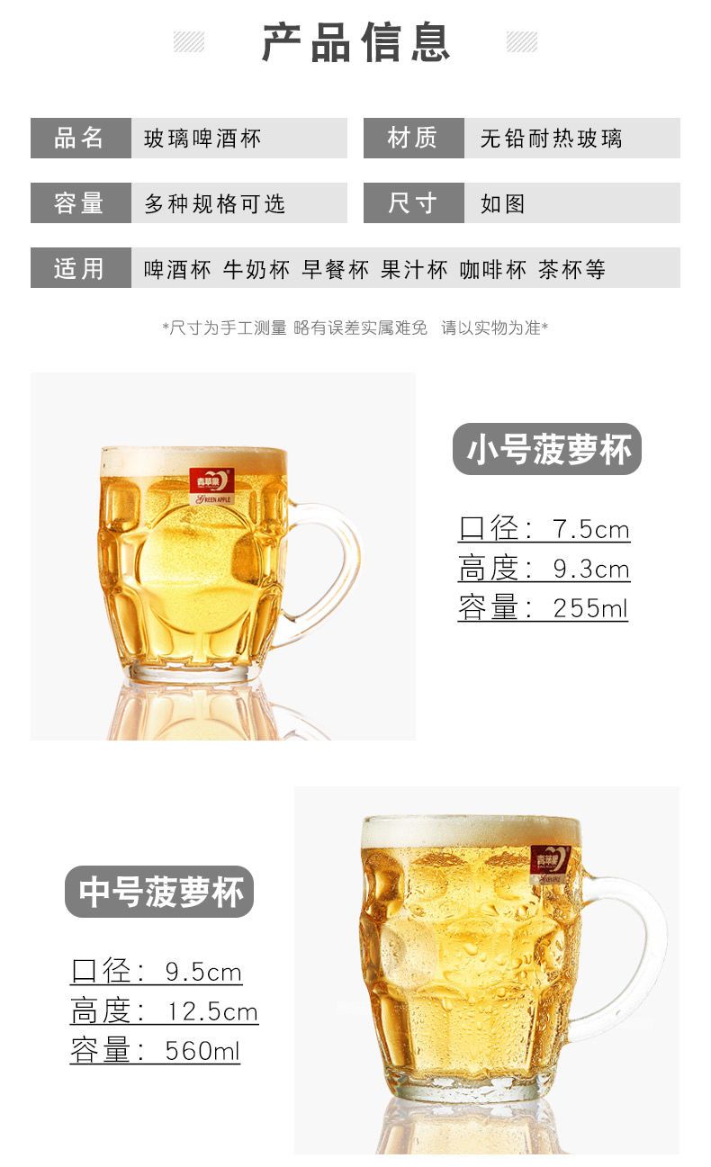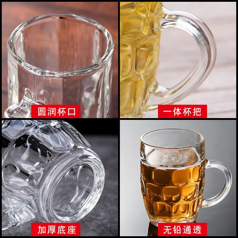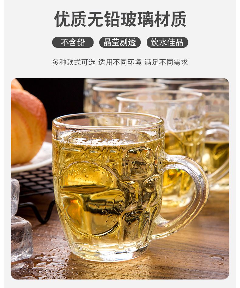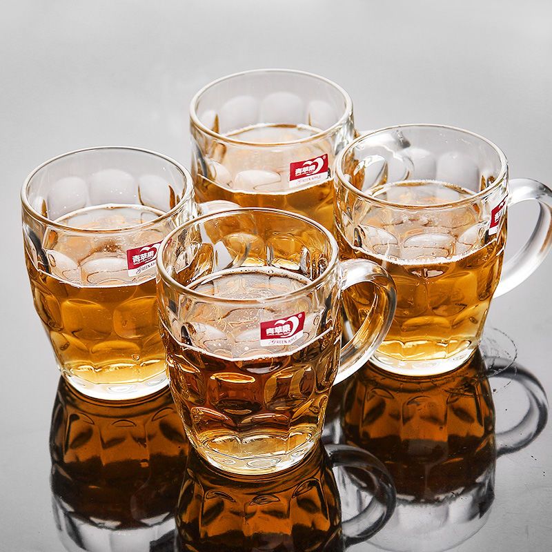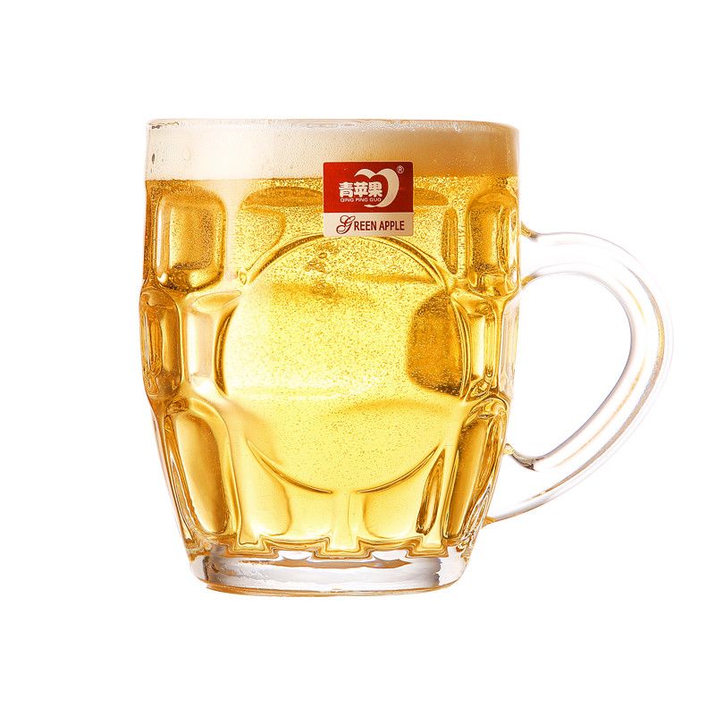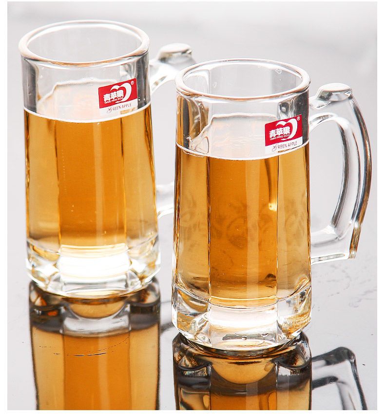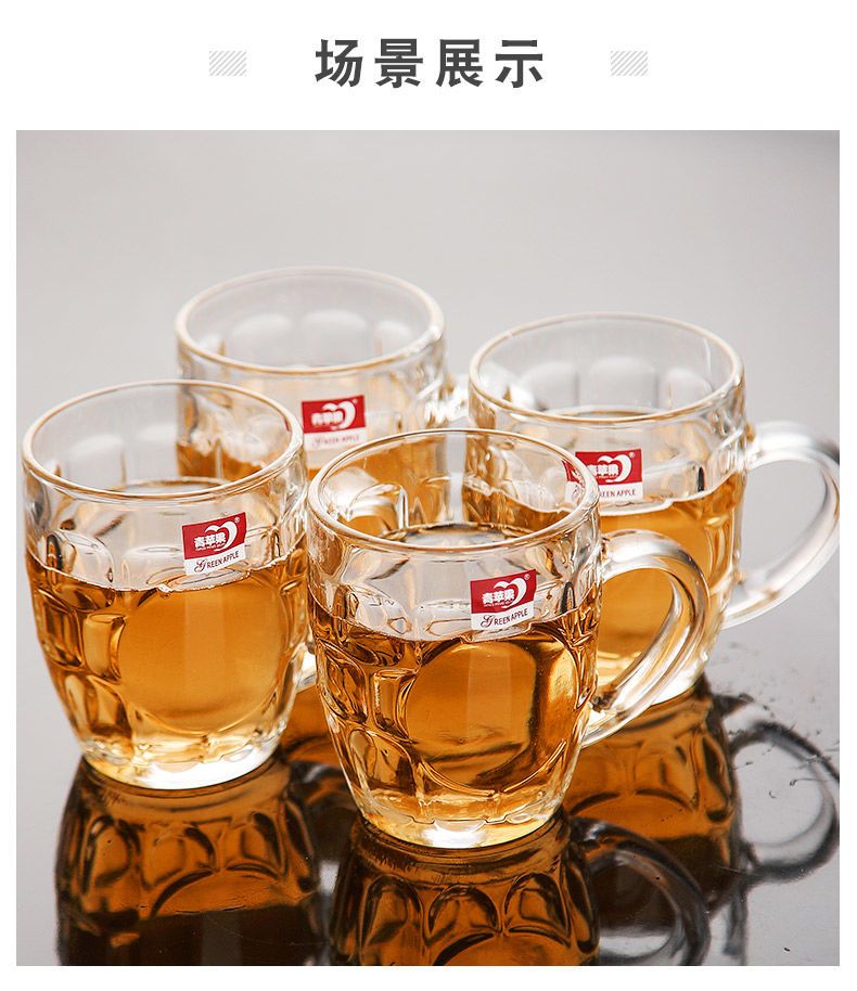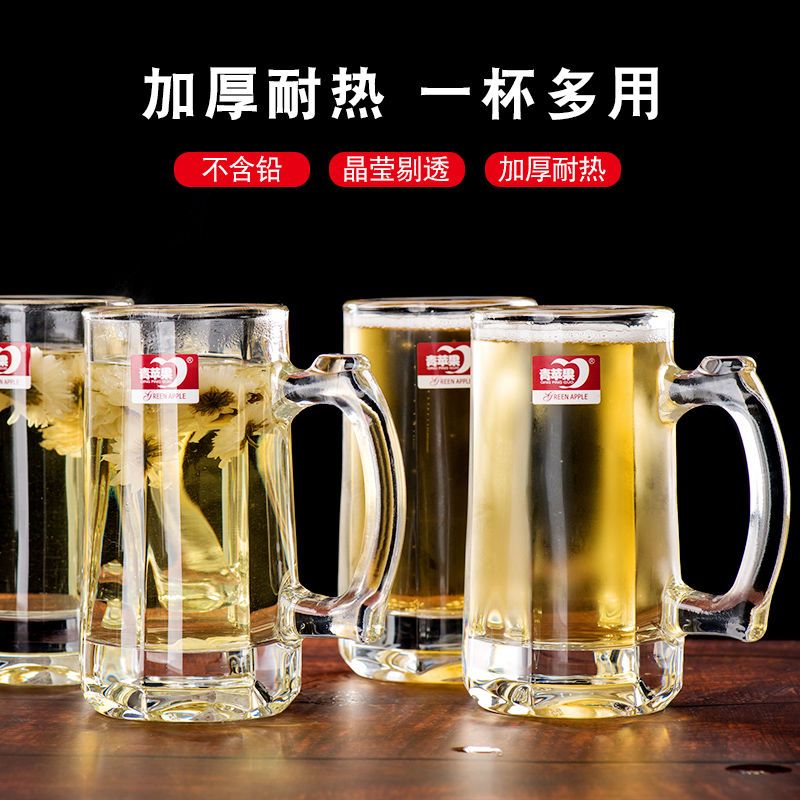 青苹果玻璃杯子家用套装水杯大号啤酒杯扎啤加厚耐热无盖带把茶杯