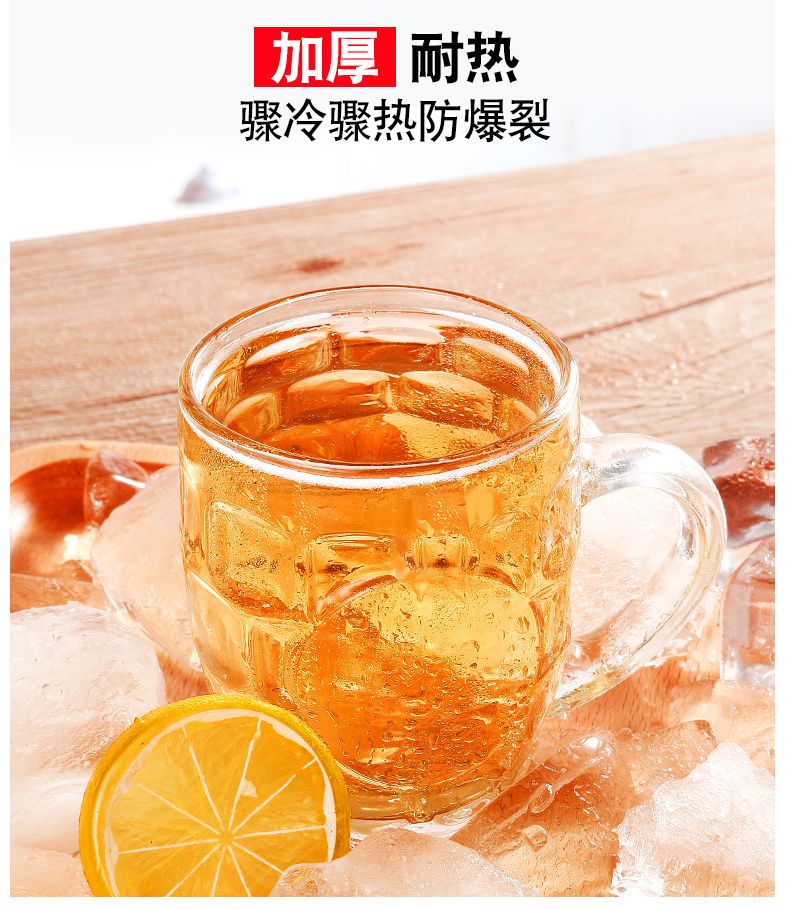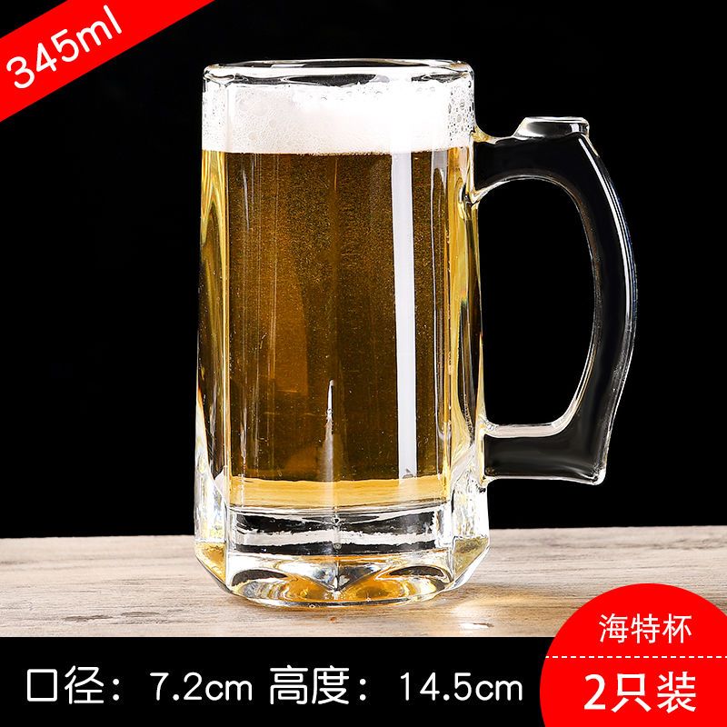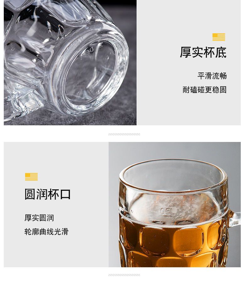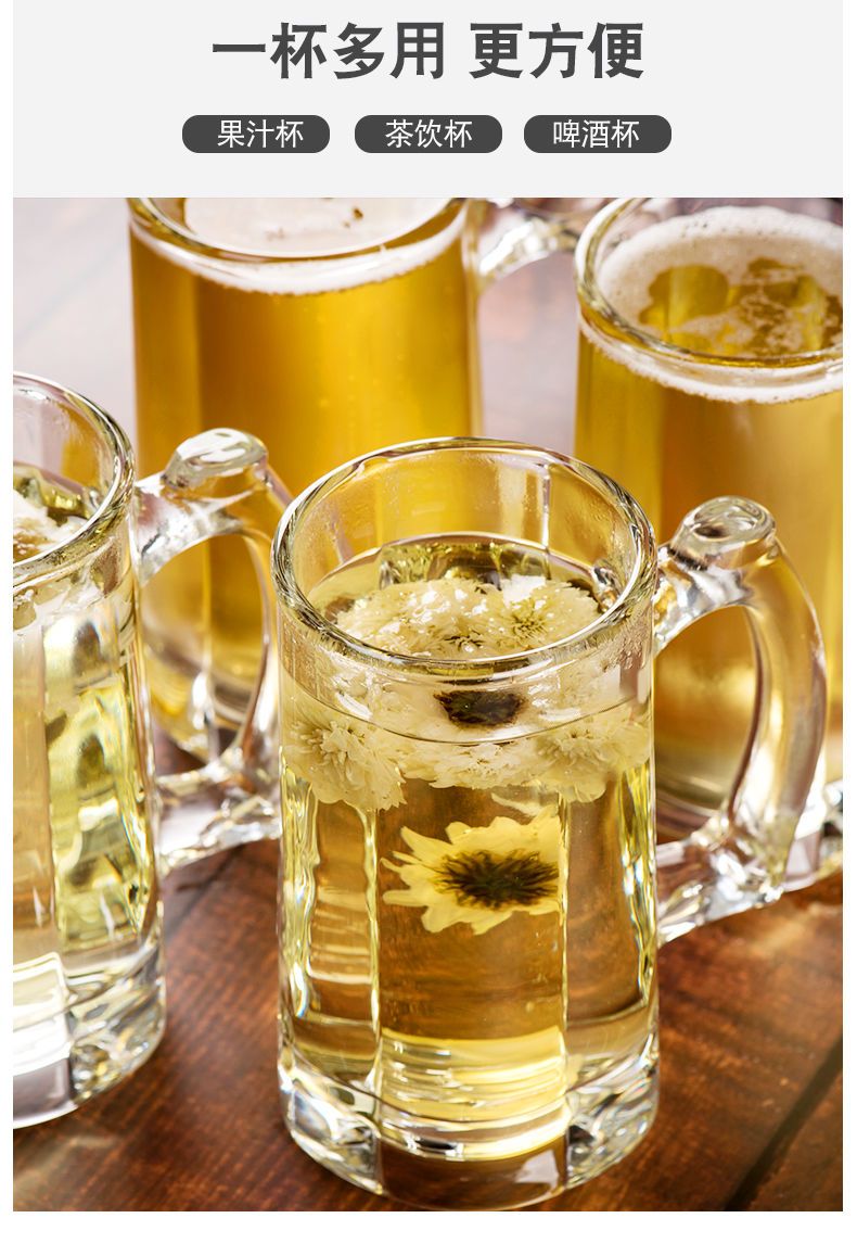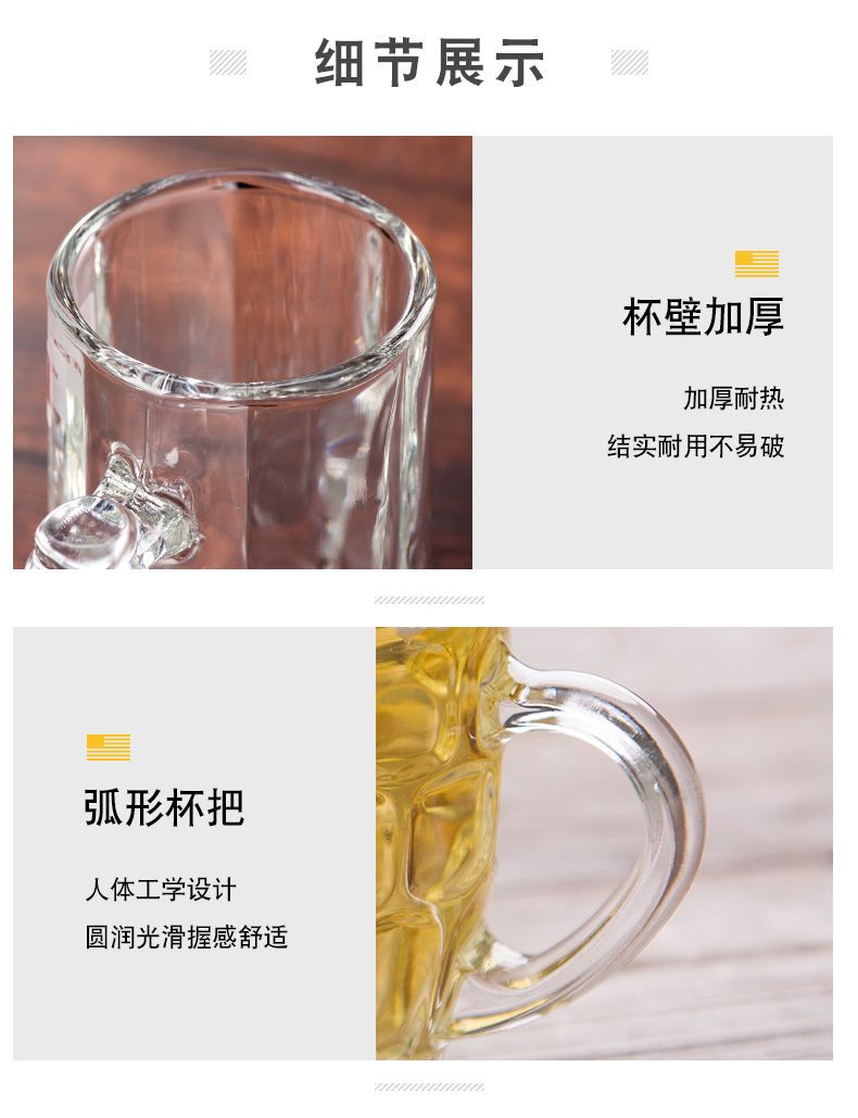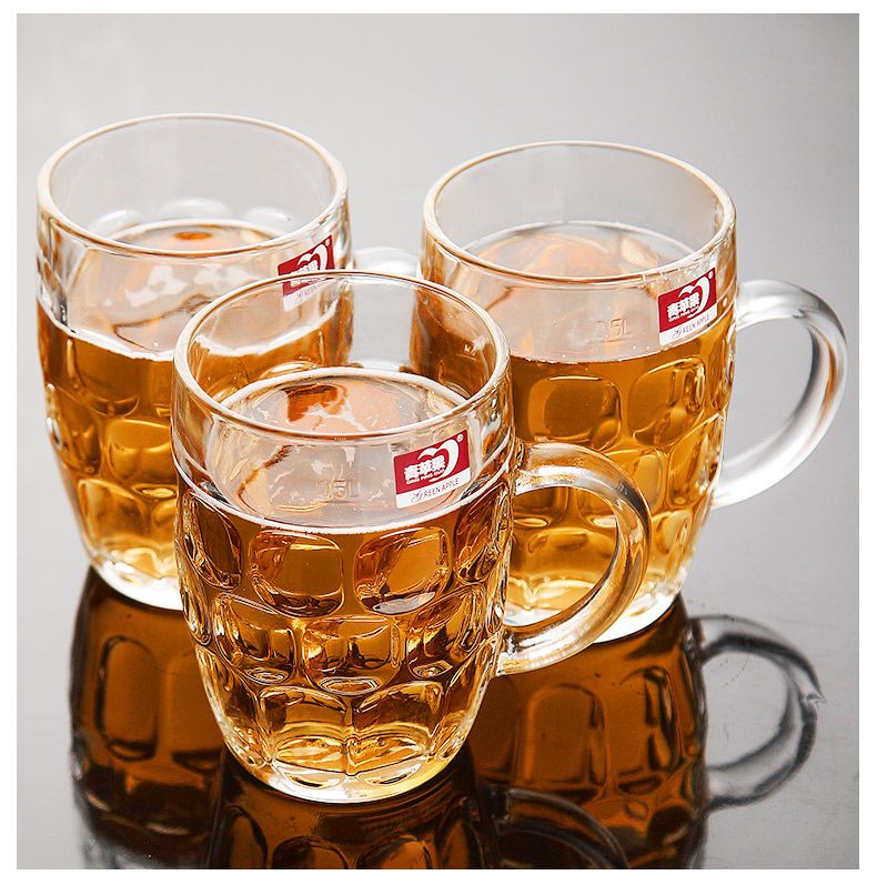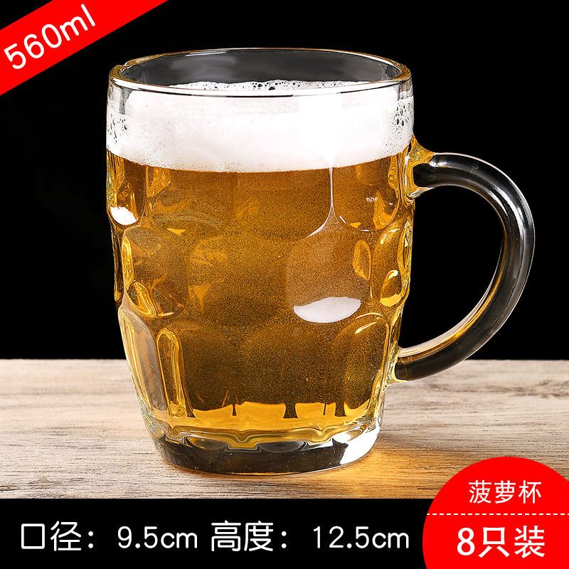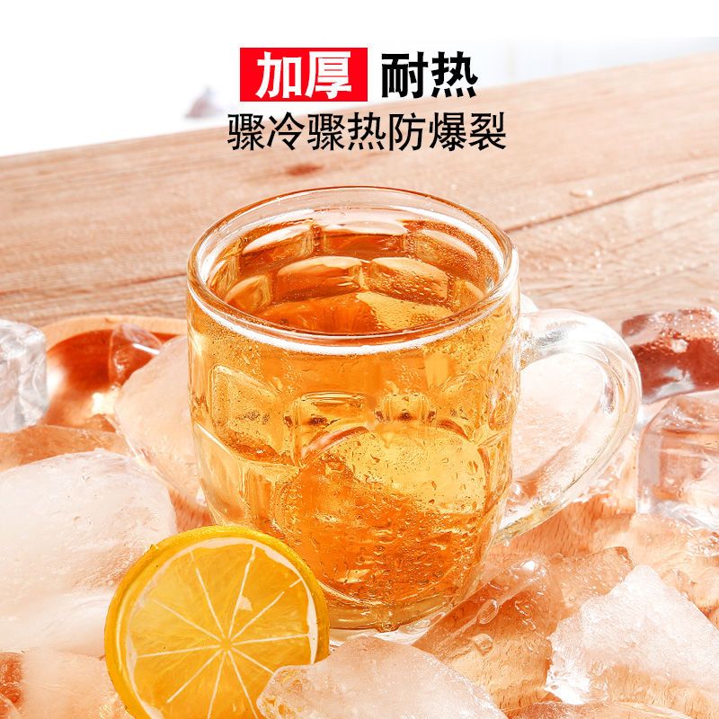 青苹果玻璃杯子家用套装水杯大号啤酒杯扎啤加厚耐热无盖带把茶杯