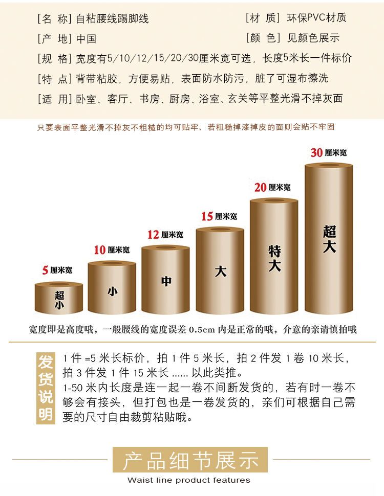 自粘踢脚线墙贴防水窗台门框墙角腰线装饰地板贴纸波导地脚线墙纸