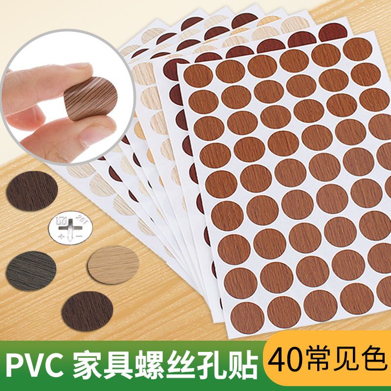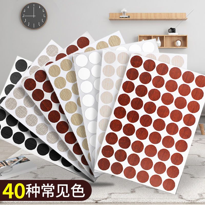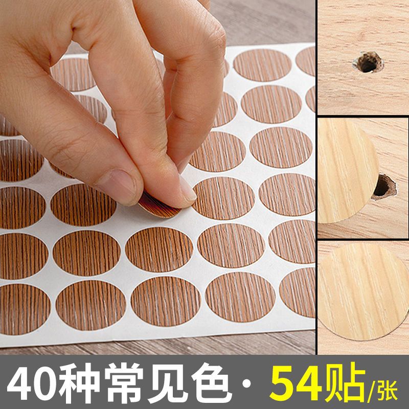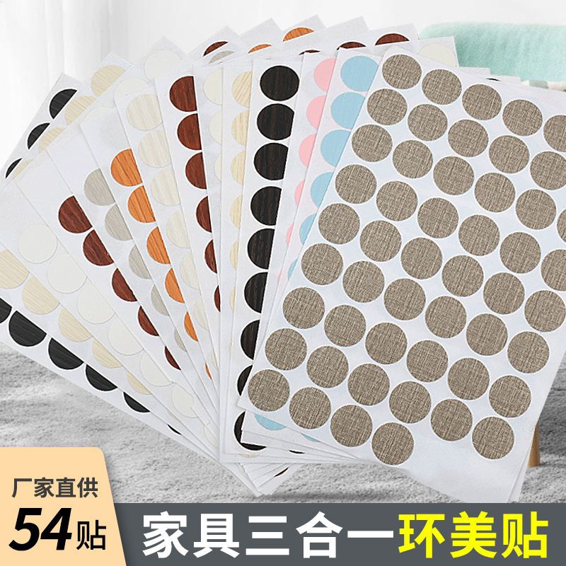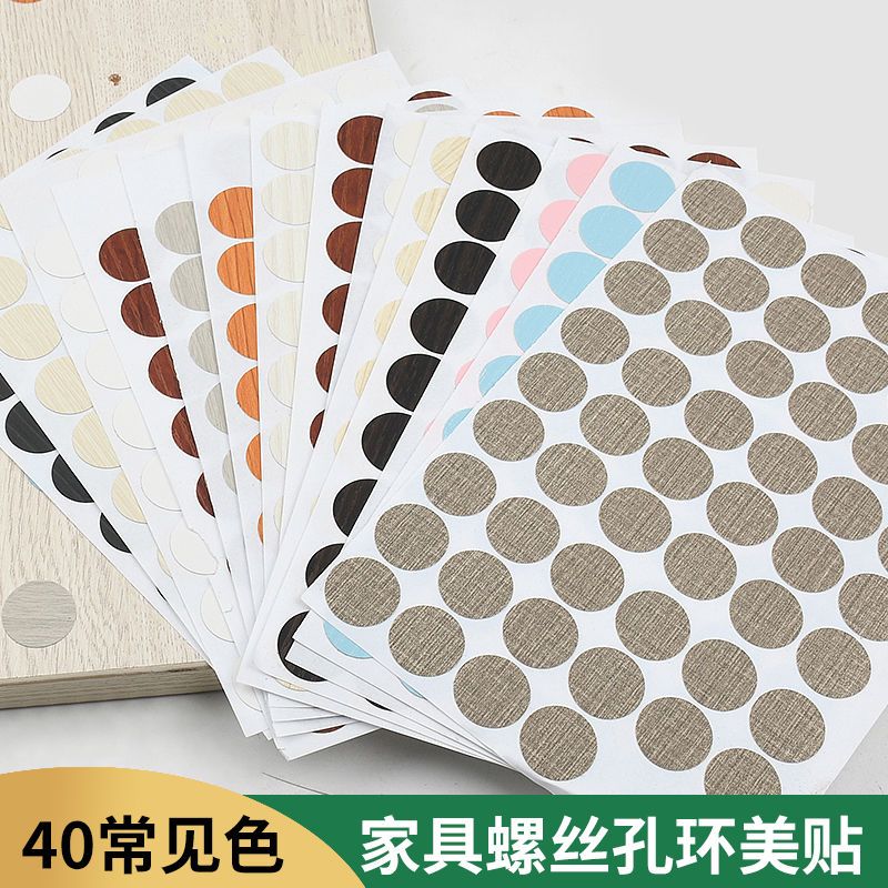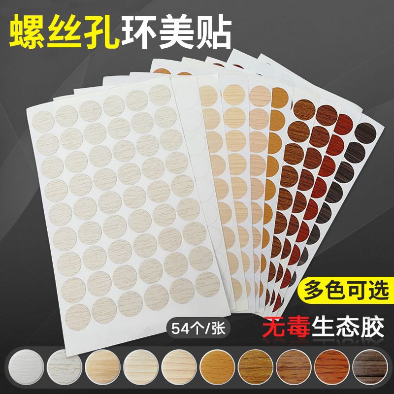 螺丝贴螺丝钉遮盖贴家具三合一孔贴不干胶自粘贴环美贴 木纹贴纸