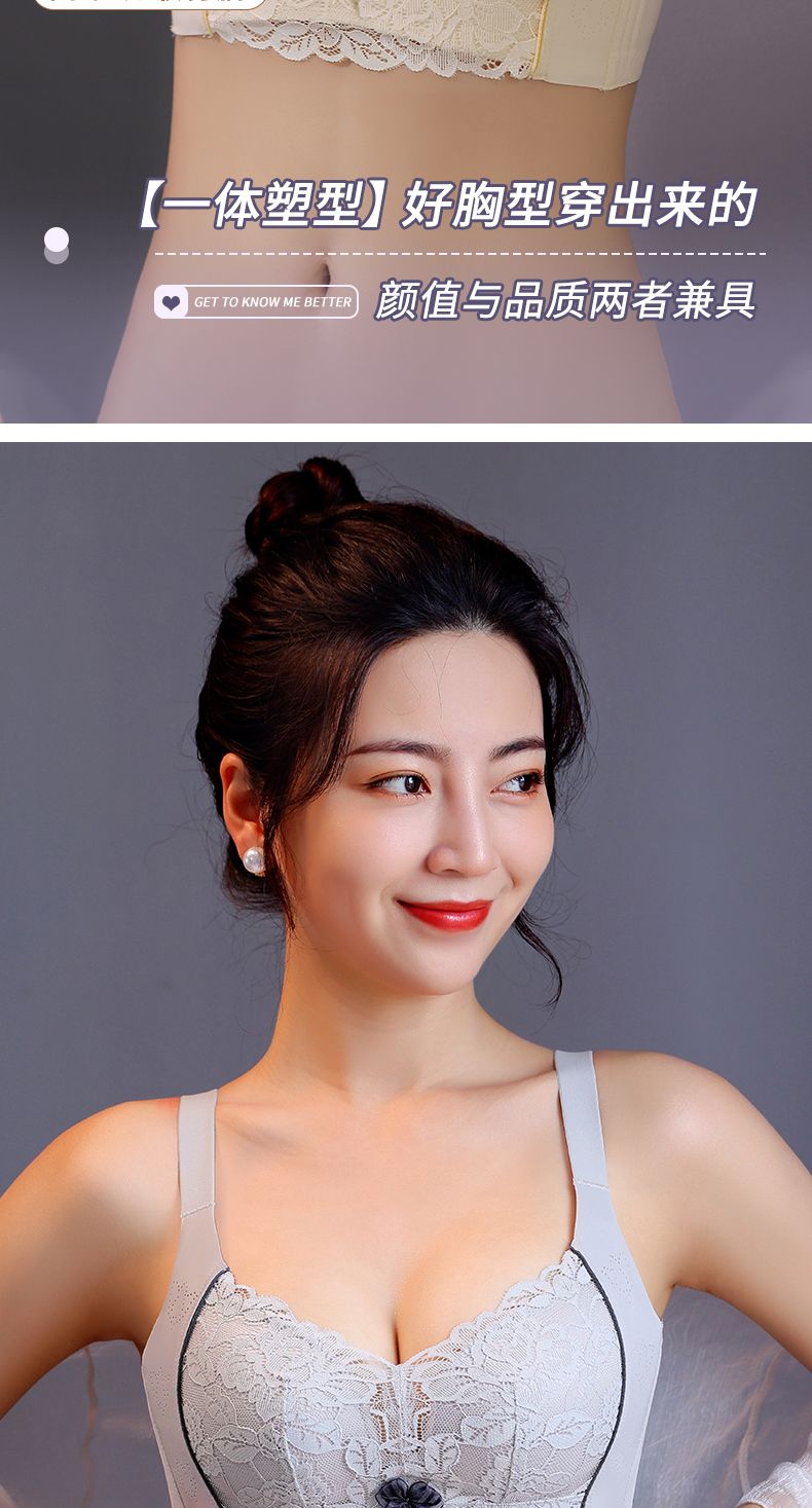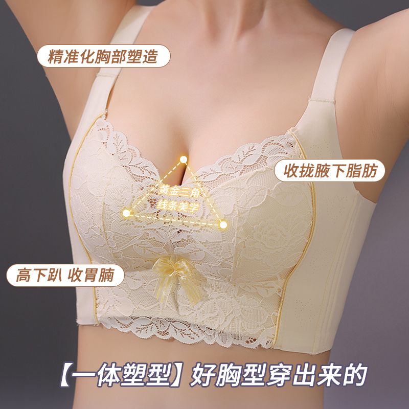 美容院调整型内衣女小胸聚拢提胸防下垂收副乳无钢圈蕾丝文胸套装
