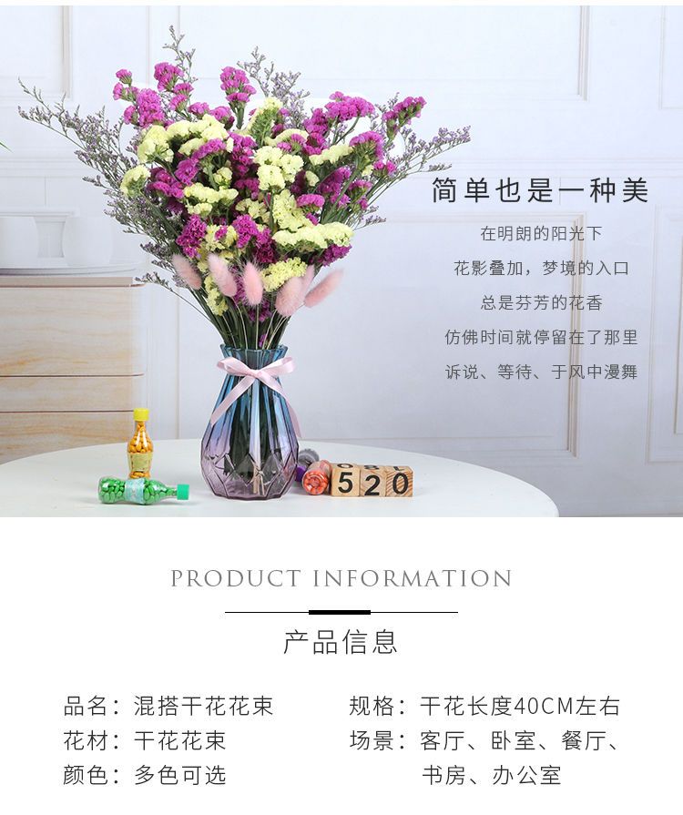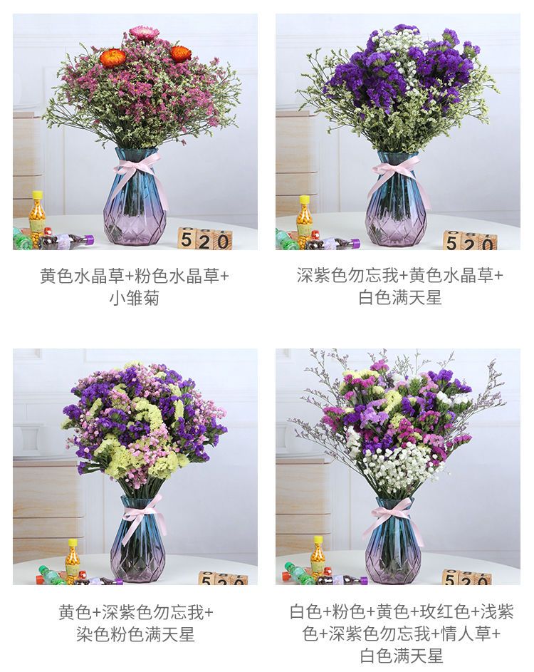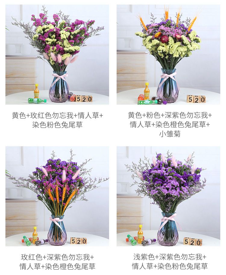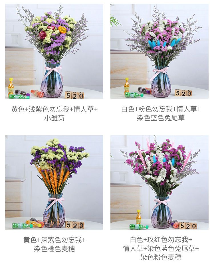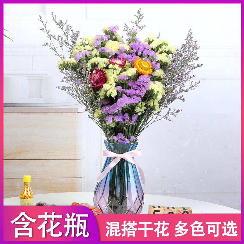 带花瓶勿忘我干花花束天然真花雏菊满天星小清新家居客厅摆设装饰