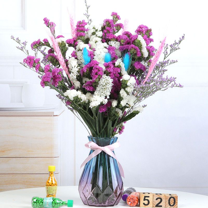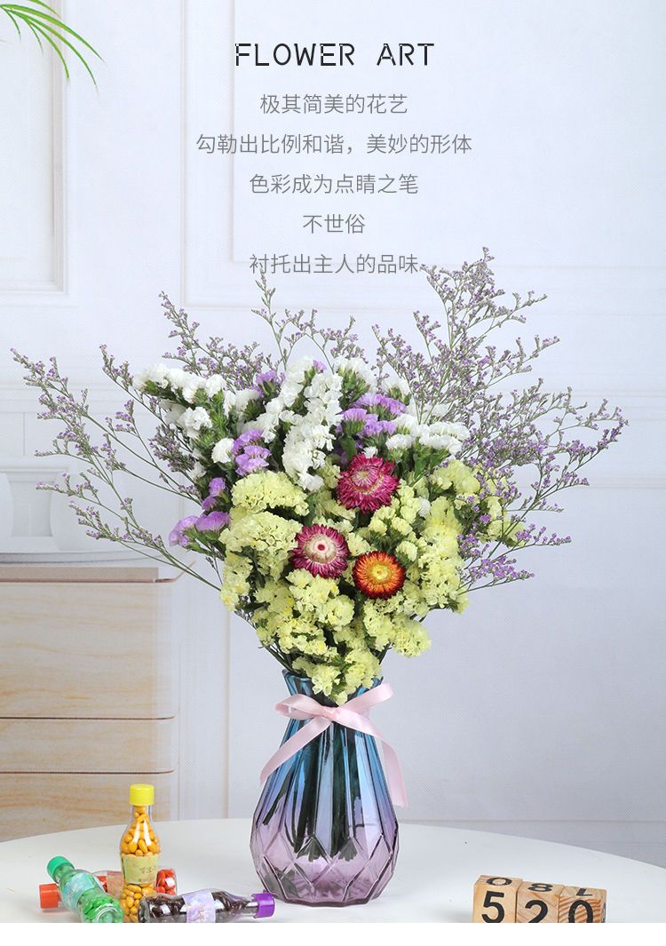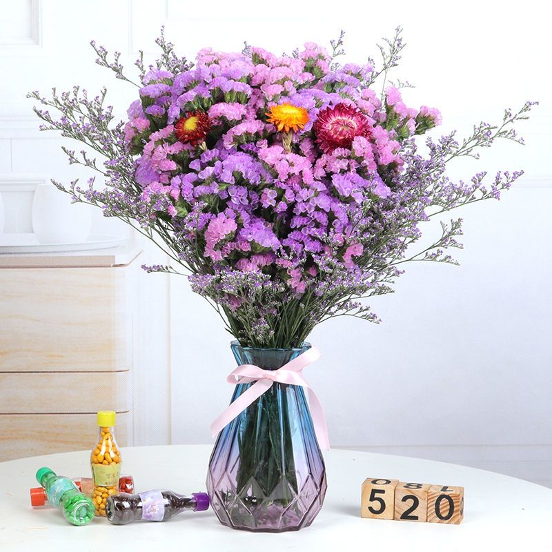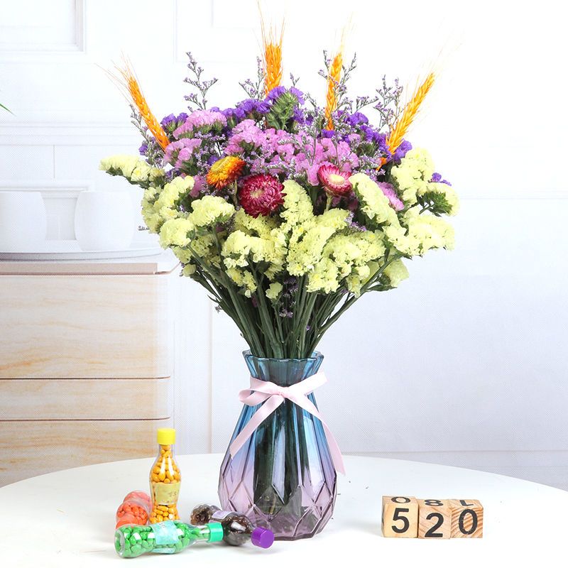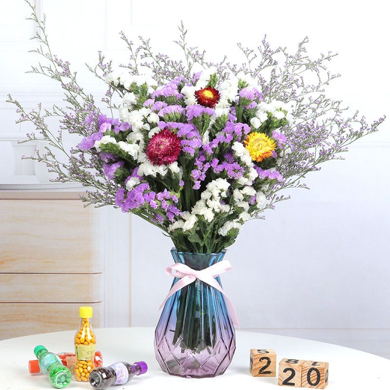 带花瓶勿忘我干花花束天然真花雏菊满天星小清新家居客厅摆设装饰