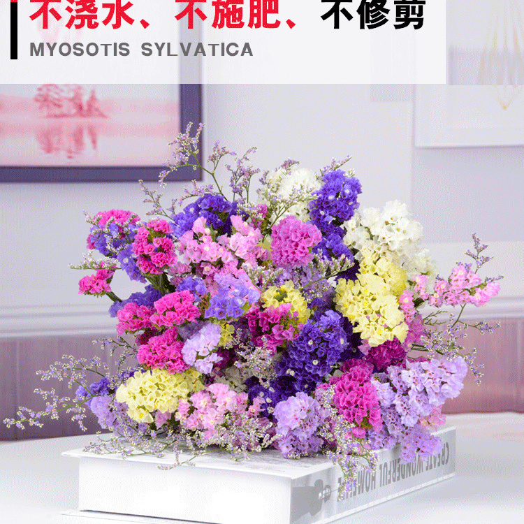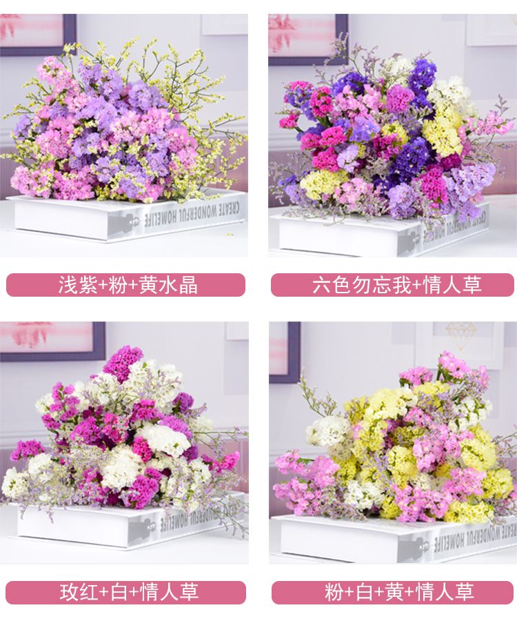 云南干花花束勿忘我真花家居摆设插花简约混搭满天星干花装饰摆件