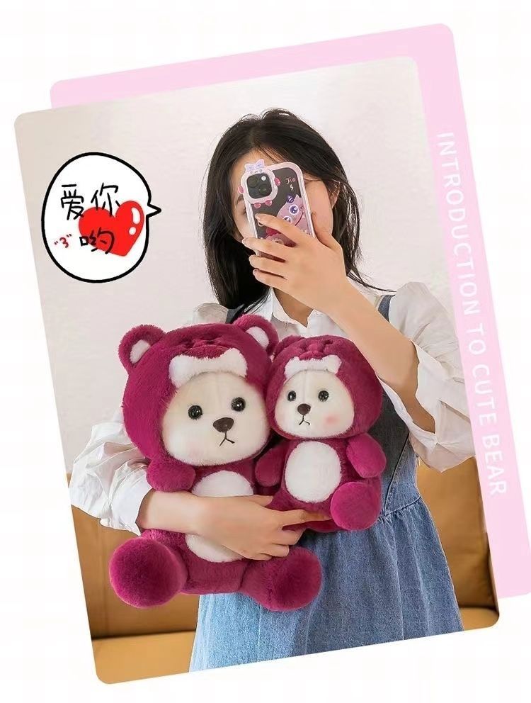 变装莉莉小熊玩偶草莓熊毛绒玩具娃娃床上陪睡抱枕生日七夕礼物女