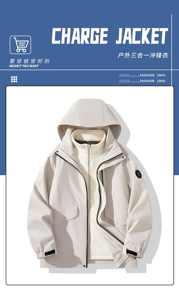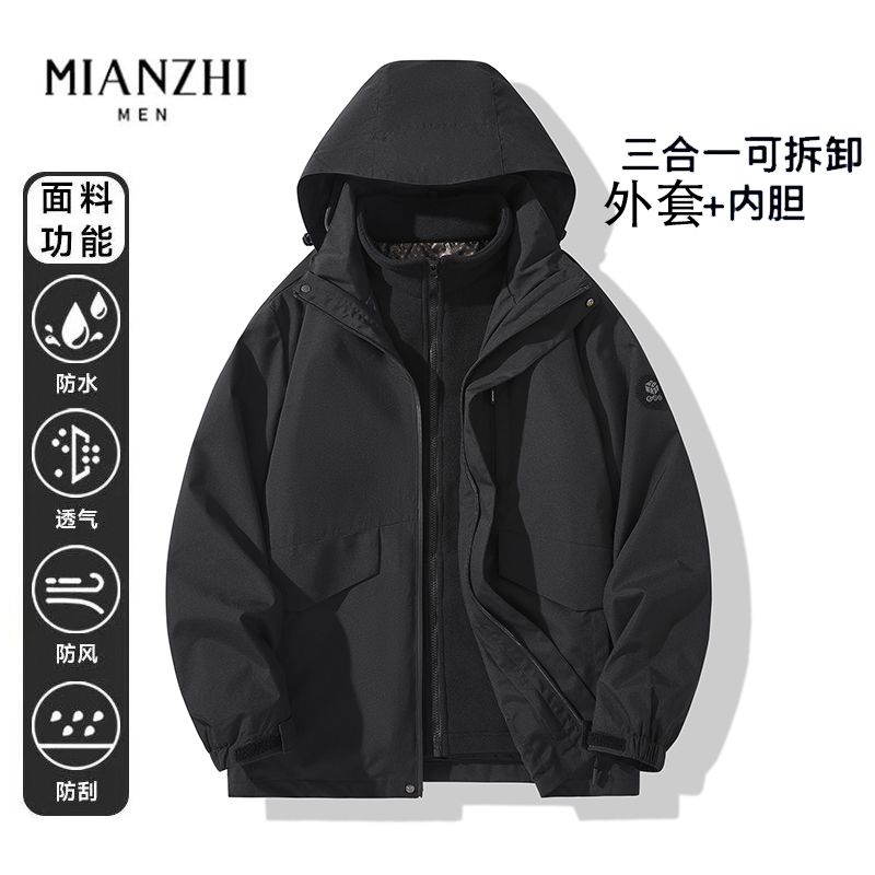 森马集团棉致秋冬季三合一可拆卸户外防风防水外套冲锋衣夹克男潮