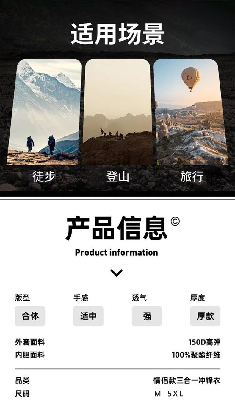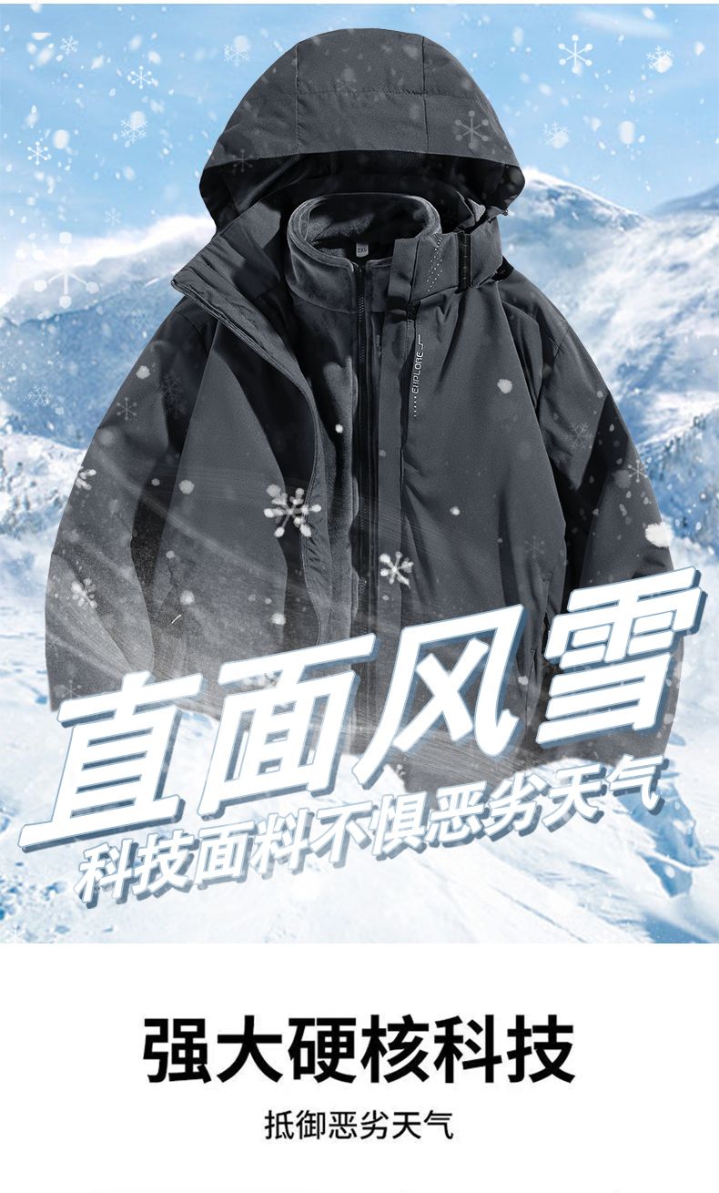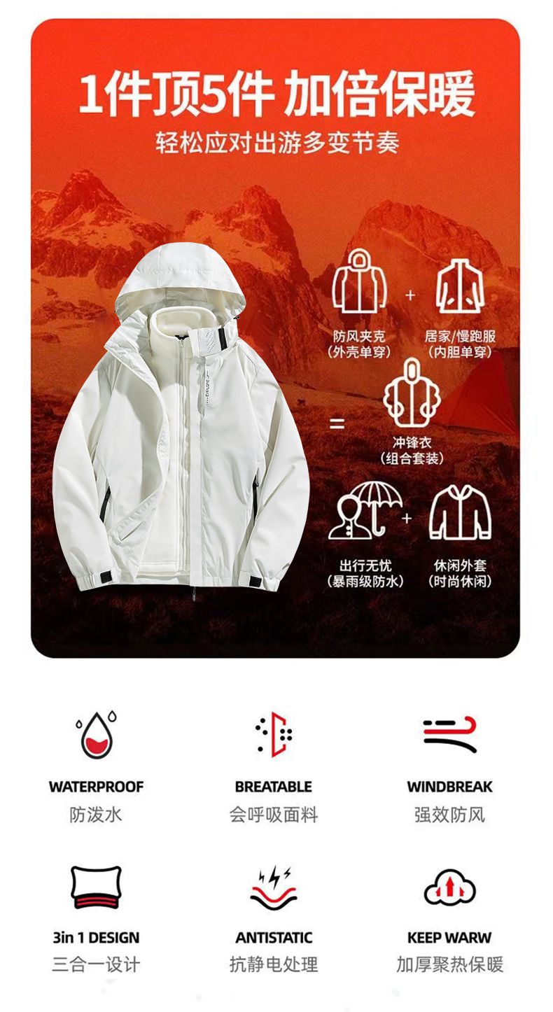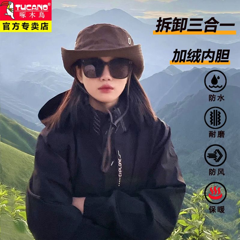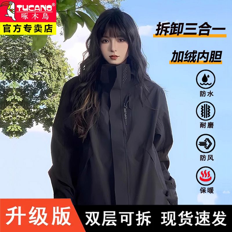 啄木鸟可拆卸三合一冲锋衣男女情侣外套秋冬季夹克防风防水登山服