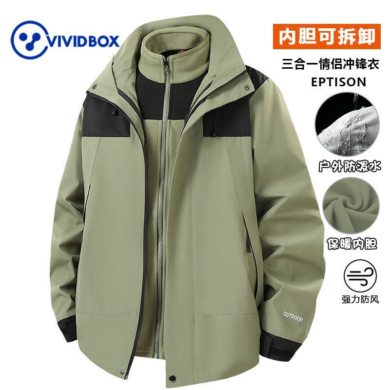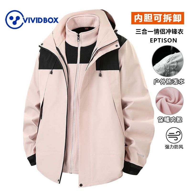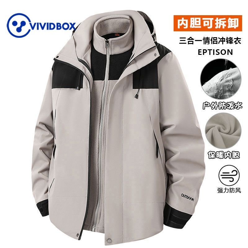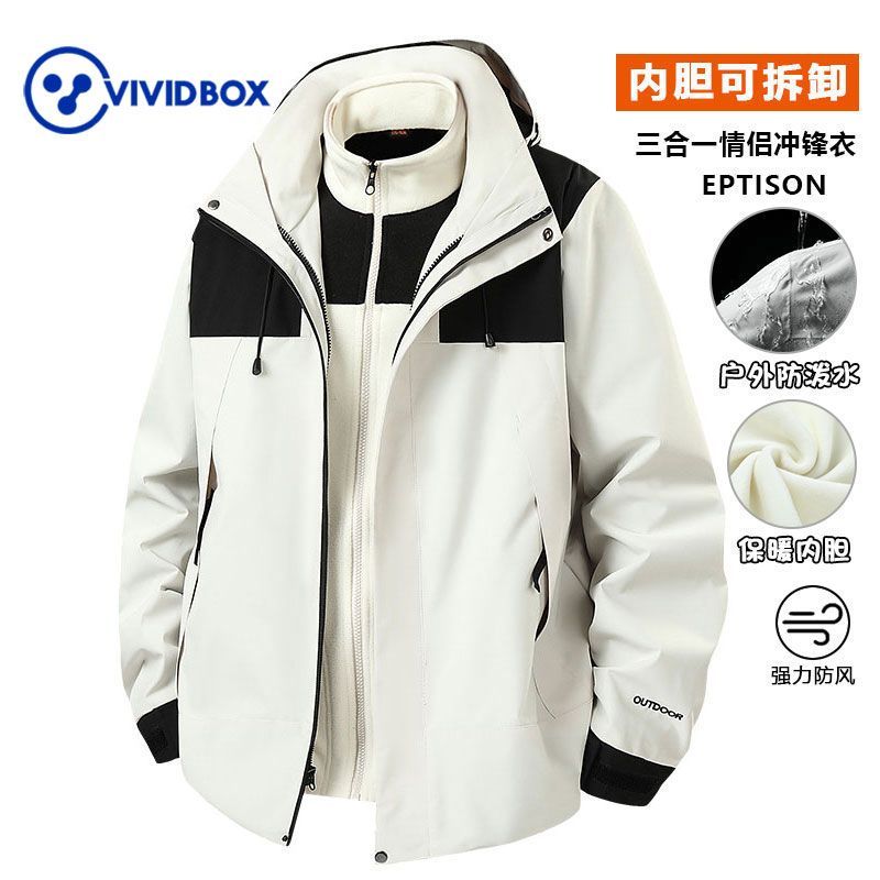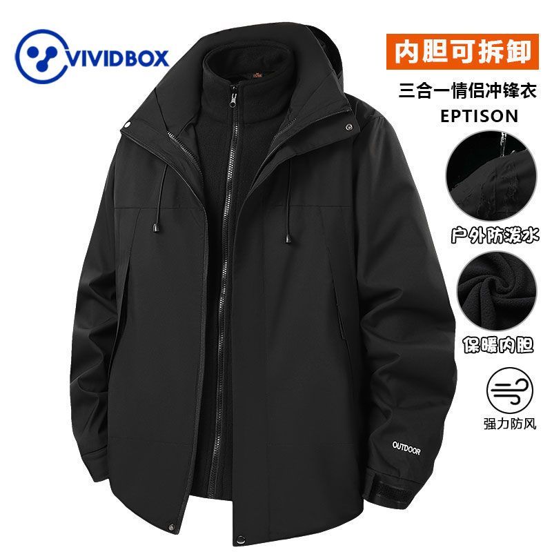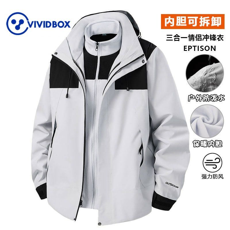 集团VIVID BOX三合一冲锋衣外套男女春秋防风运动情侣夹克