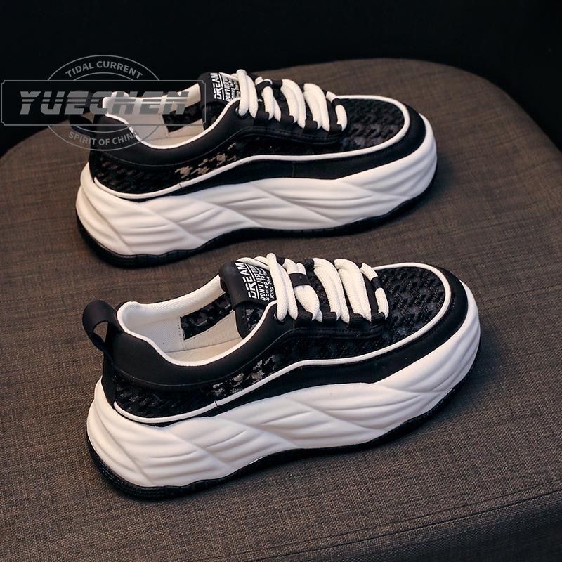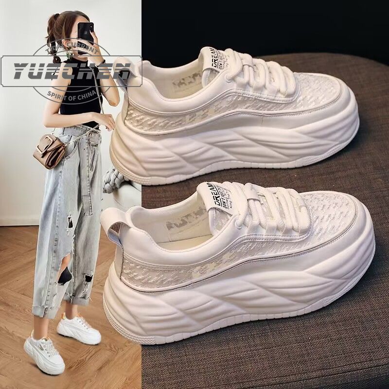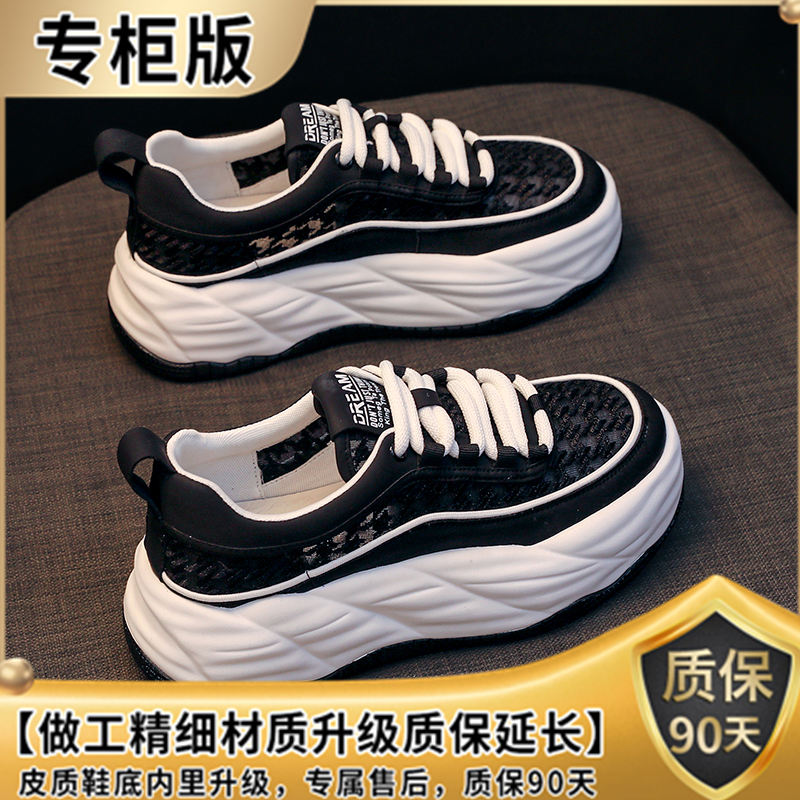 跃臣厚底松糕小白鞋夏季2024新款百搭透气网面运动休闲老爹板鞋