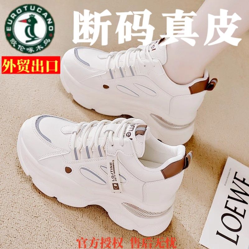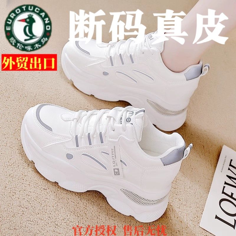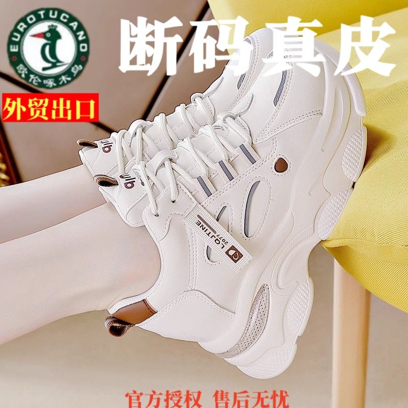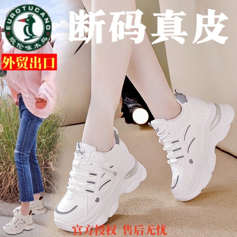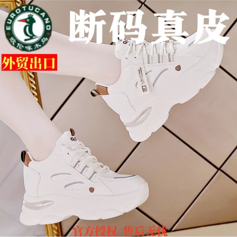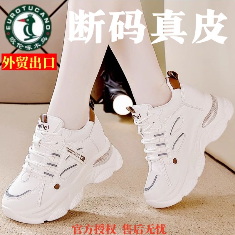 欧伦啄木鸟断码真皮软底不累脚妈妈运动鞋秋季外穿增高显瘦休闲鞋