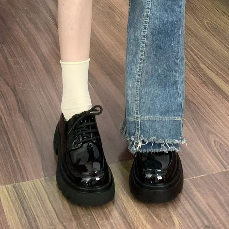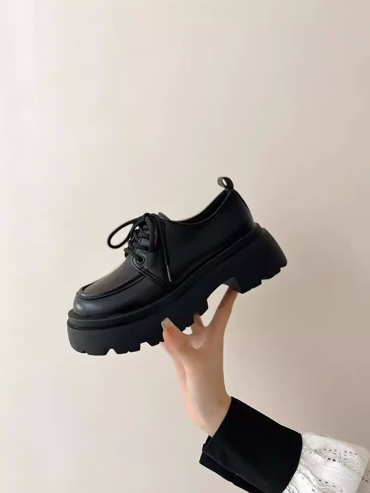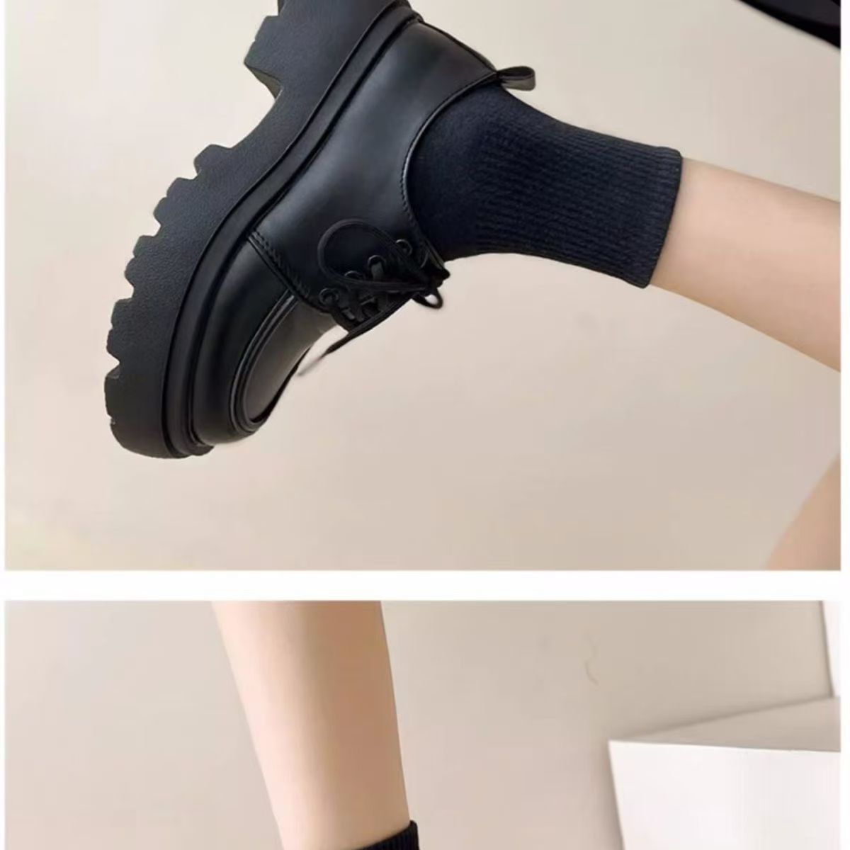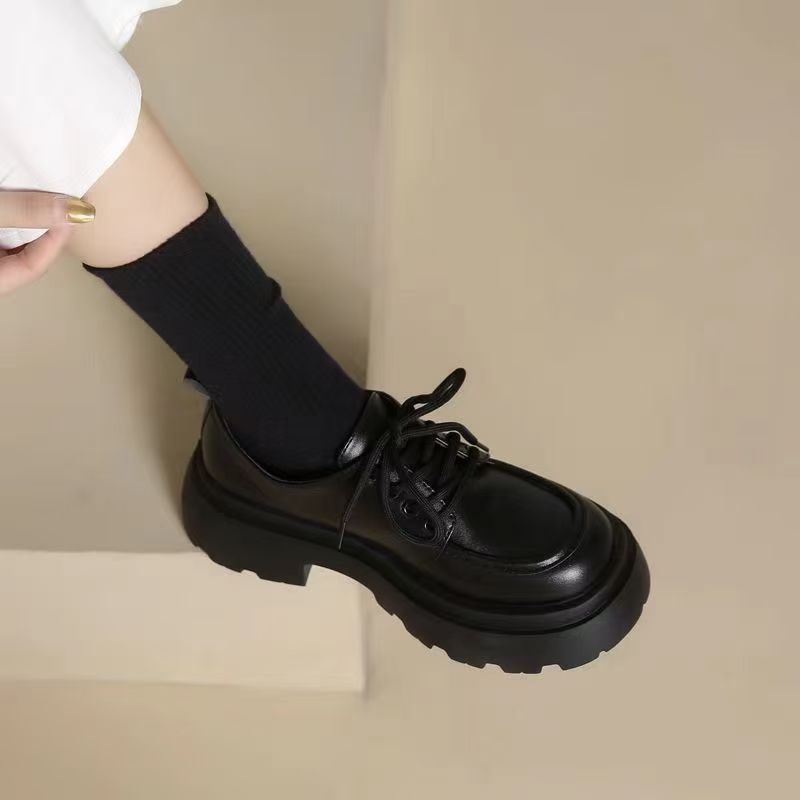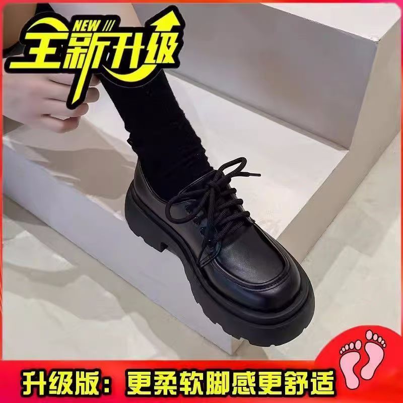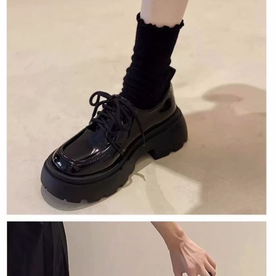 RDJF英伦风厚底小皮鞋女2024新款秋百搭黑色jk单鞋松糕乐福ins潮
