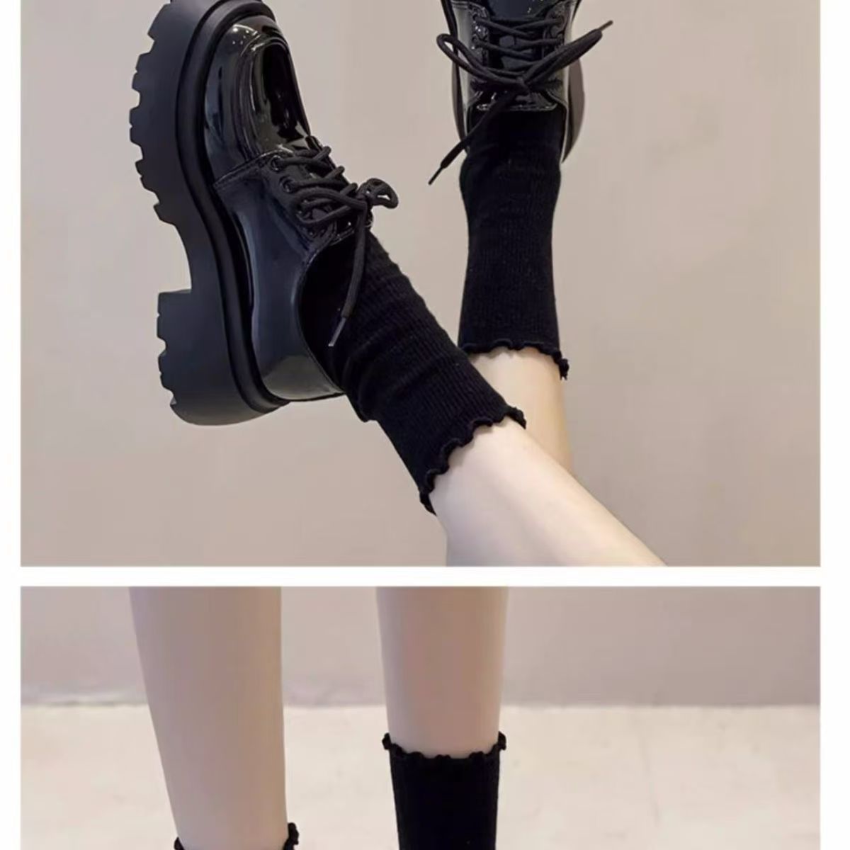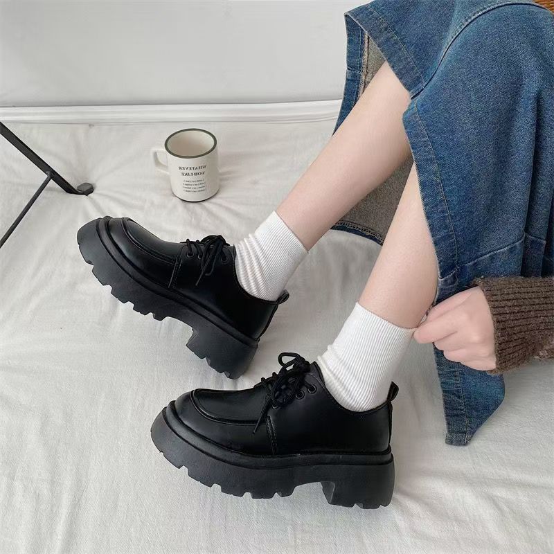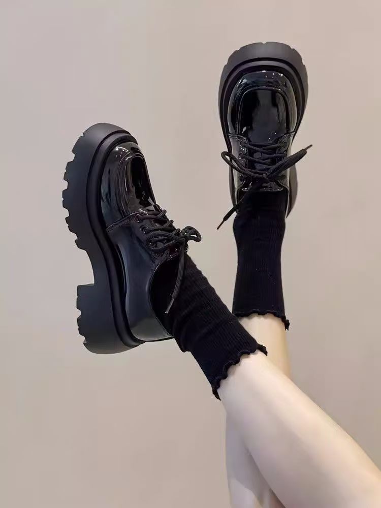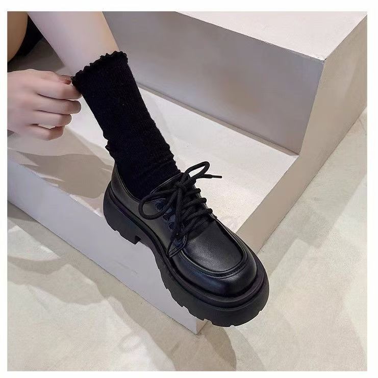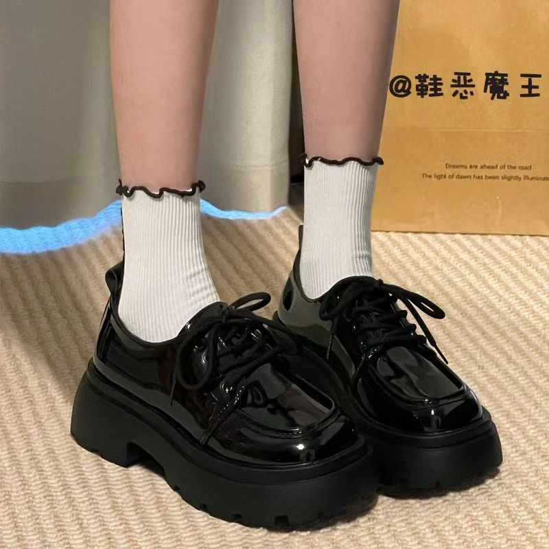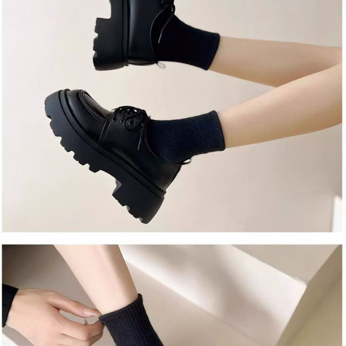 RDJF英伦风厚底小皮鞋女2024新款秋百搭黑色jk单鞋松糕乐福ins潮