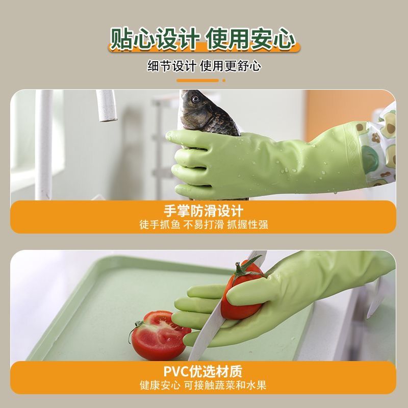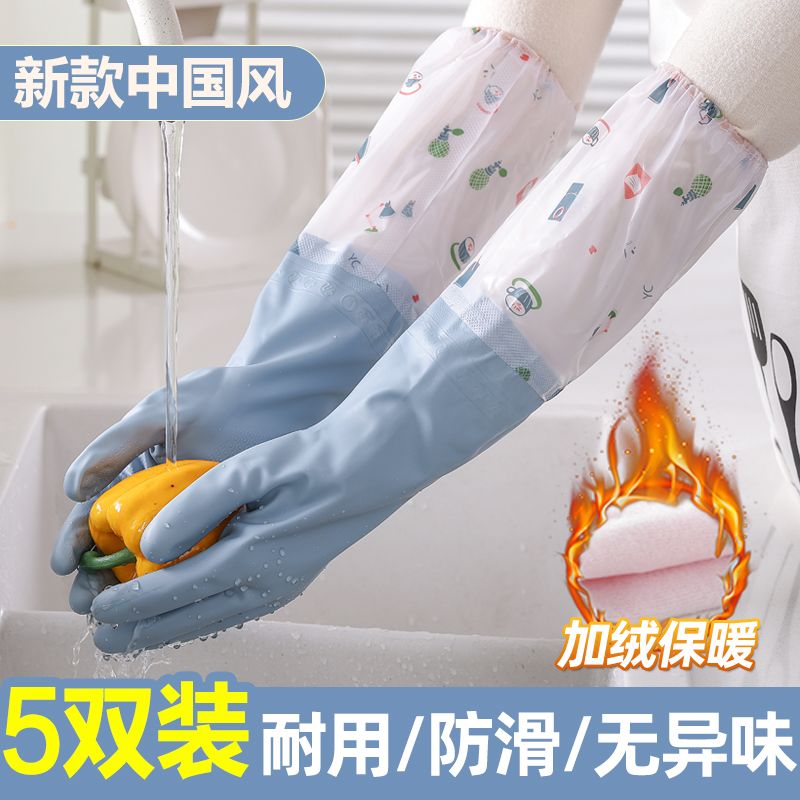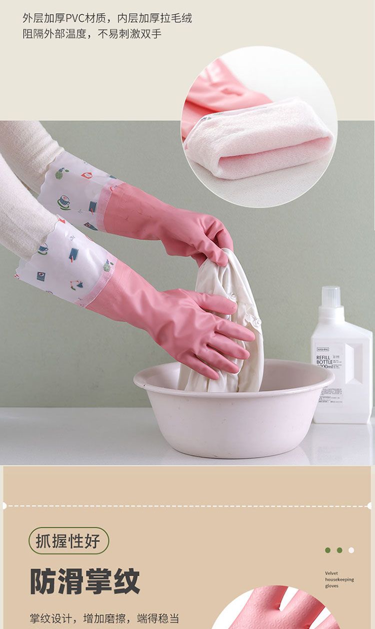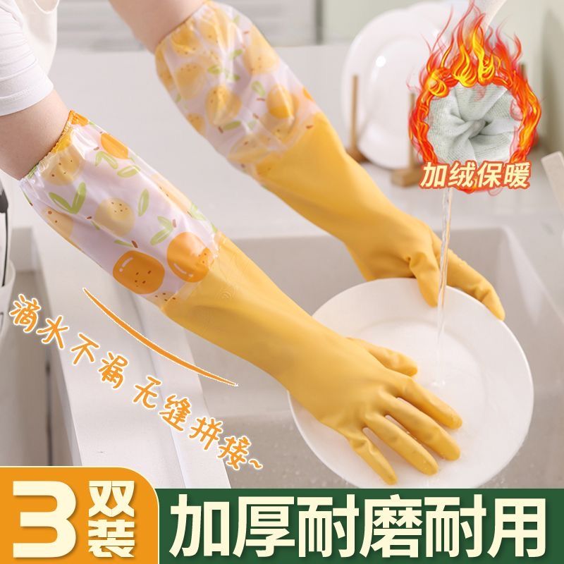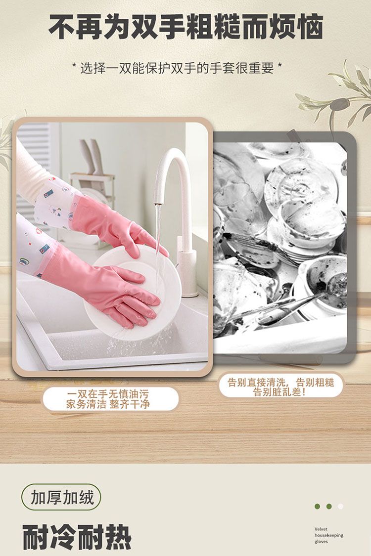 家务清洁加绒保暖洗碗手套女秋冬季防水洗衣服耐用型厨房家用加厚
