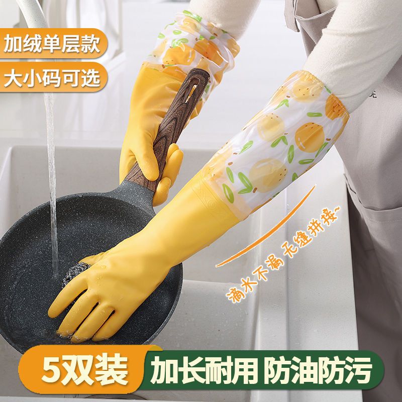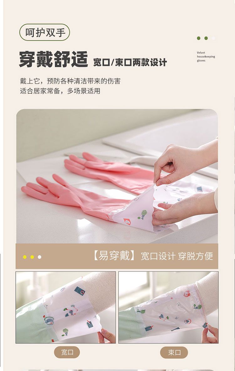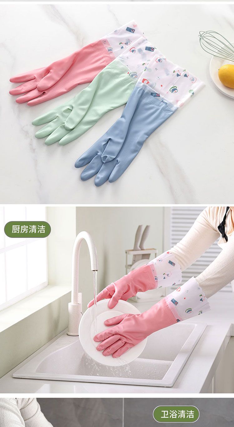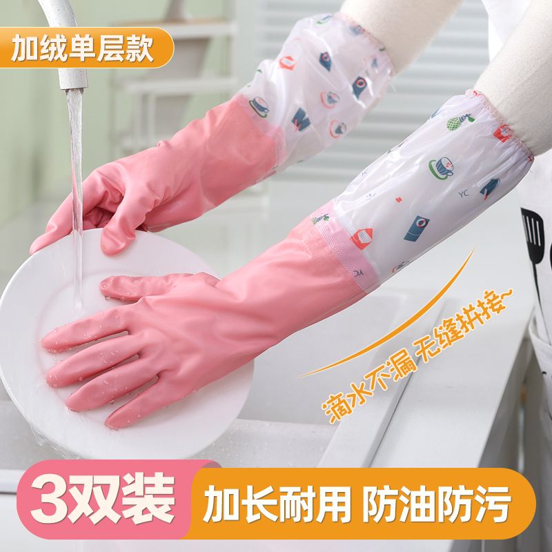 家务清洁加绒保暖洗碗手套女秋冬季防水洗衣服耐用型厨房家用加厚