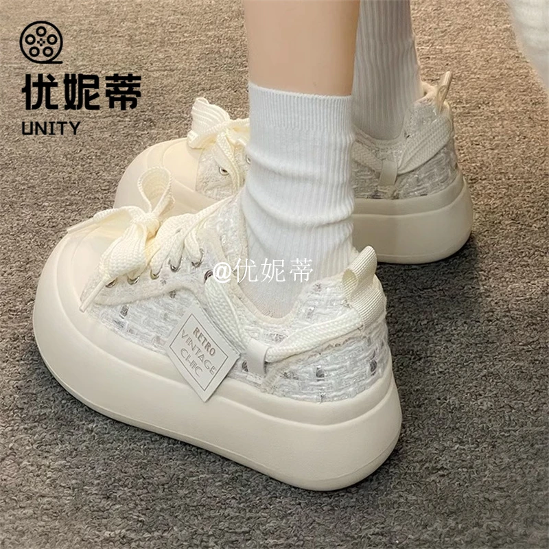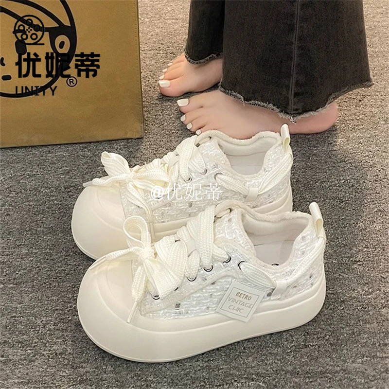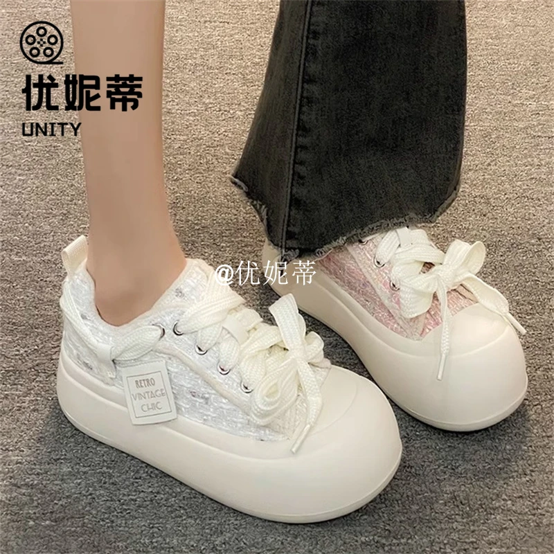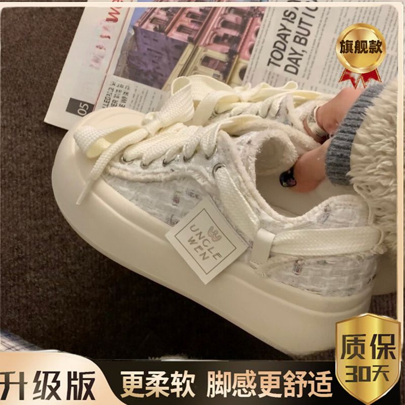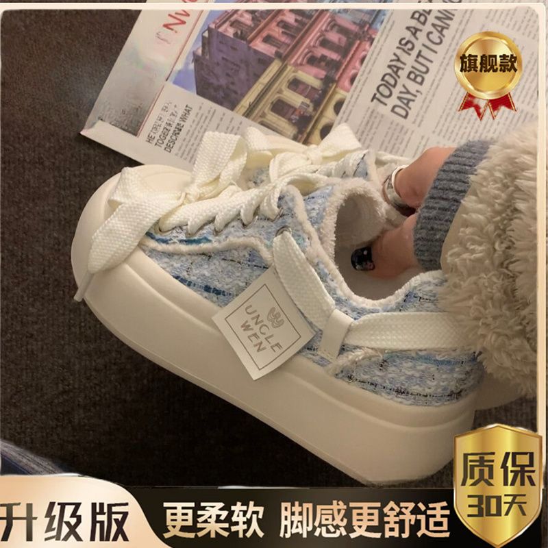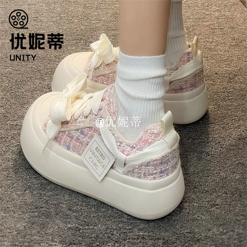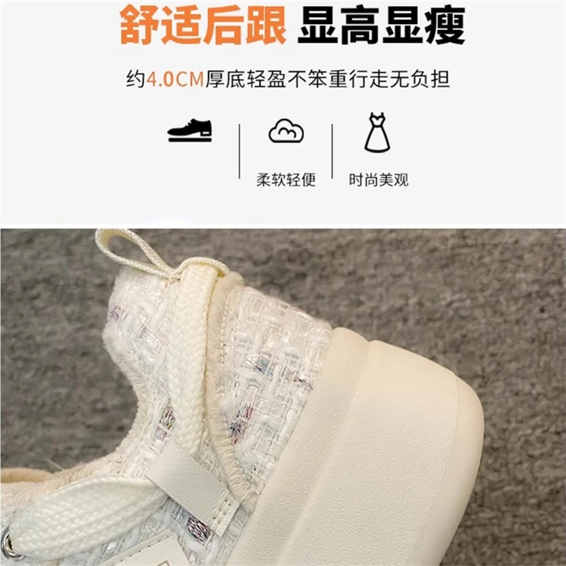 赵露思小香风爆款2024韩版鞋子圆头厚底增高春季复古新款休闲板鞋