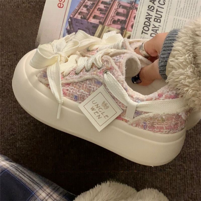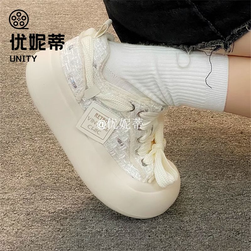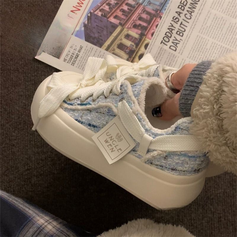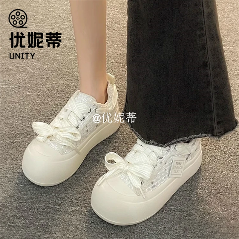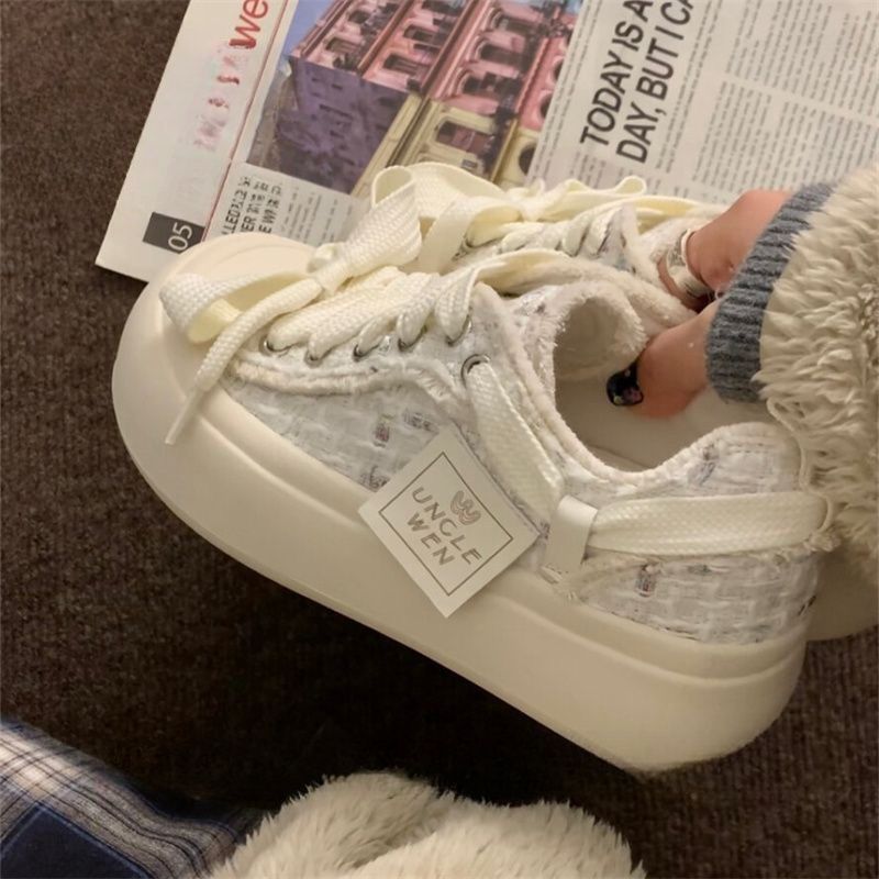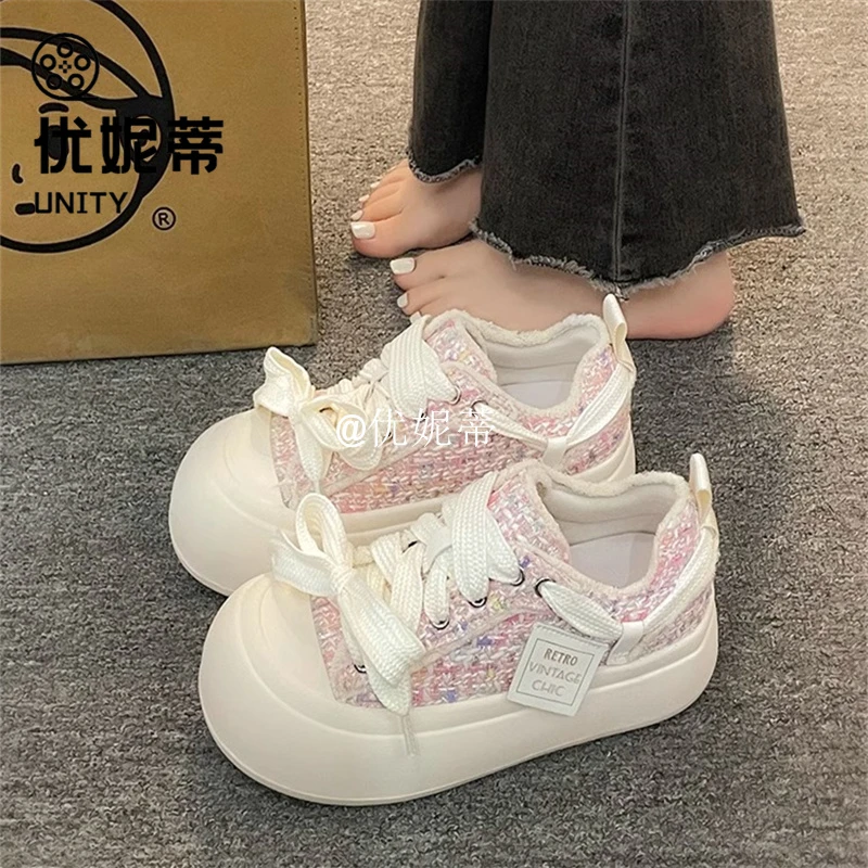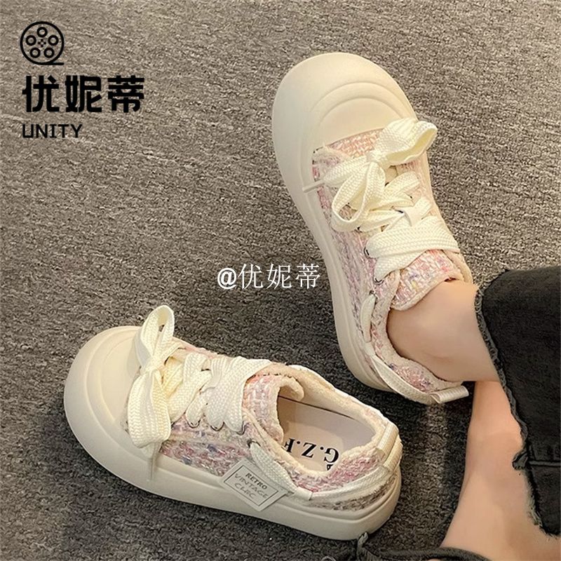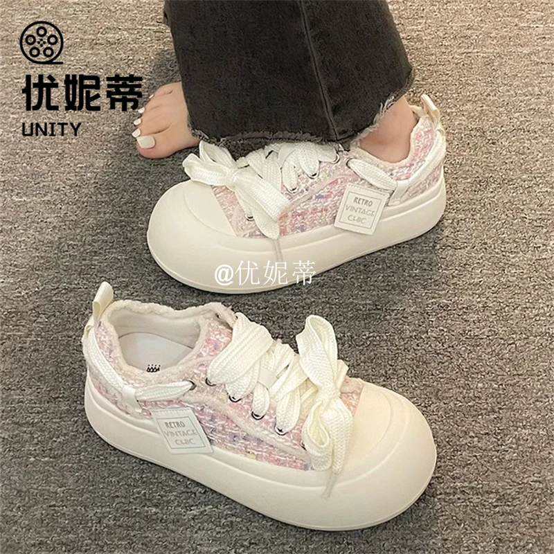 赵露思小香风爆款2024韩版鞋子圆头厚底增高春季复古新款休闲板鞋