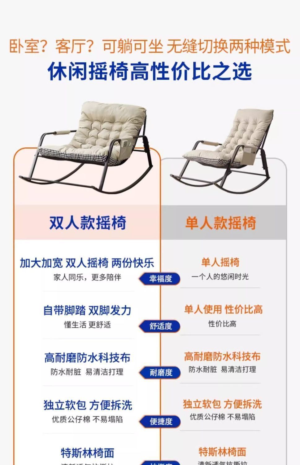 双人摇摇椅舒适躺椅成人阳台家用休闲客厅网红懒人沙发寝室沙发椅
