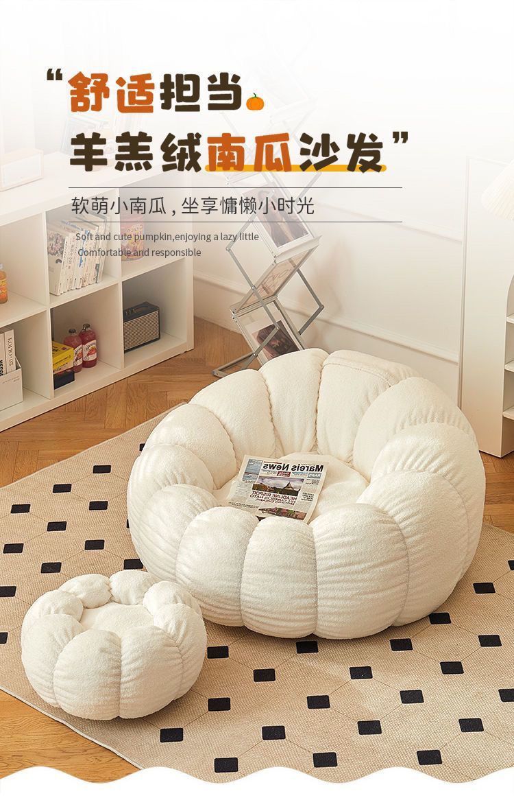 南瓜椅子懒人单人沙发奶油风榻榻米沙发椅小户型阳台卧室可躺可卧
