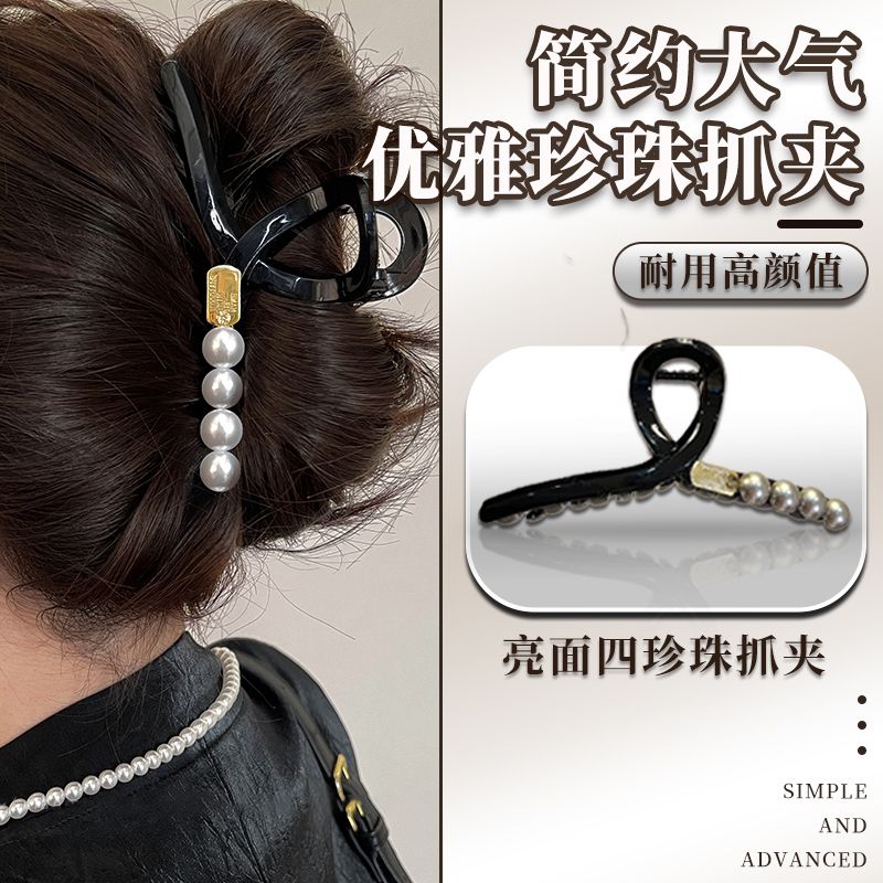 韩国字母黑色抓夹高级感气质鲨鱼夹2024新款优雅发夹女后脑勺大号