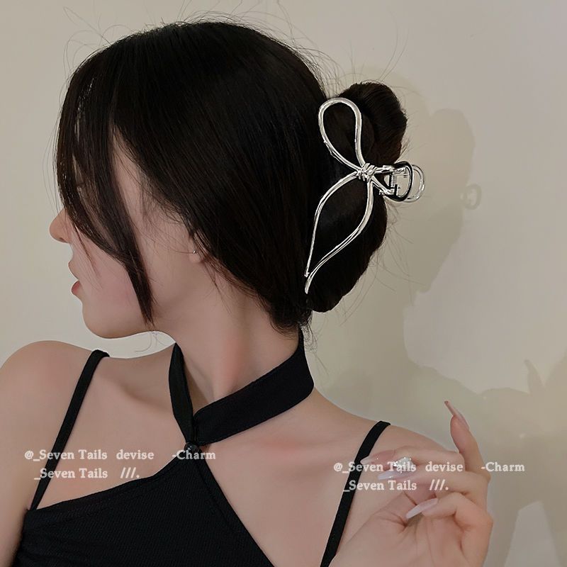 在逃公主~11cm中号银色玫瑰抓夹后脑勺优雅气质金属鲨鱼发夹头饰