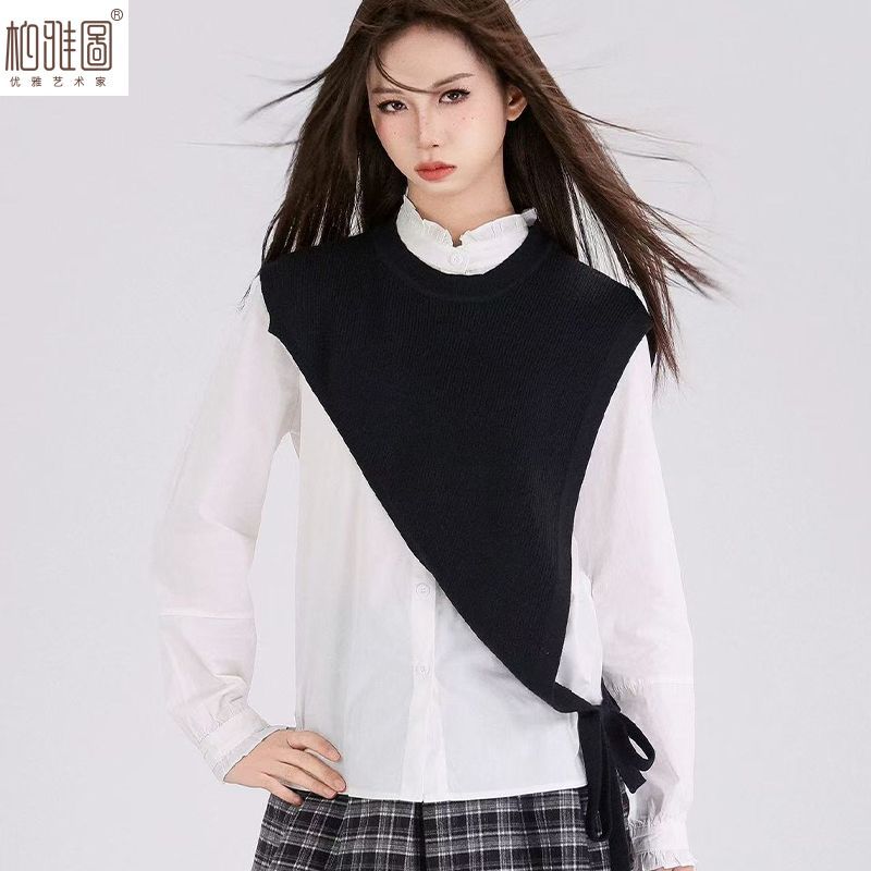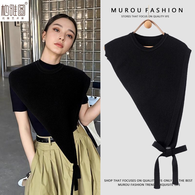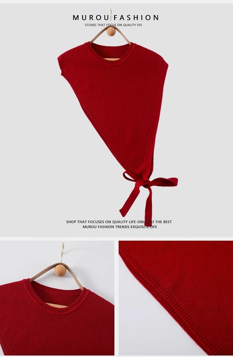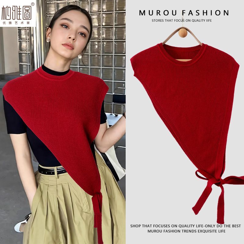 柏雅图安可拉红开叉针织披肩女秋冬新款三角斜边马甲叠穿洋气百搭