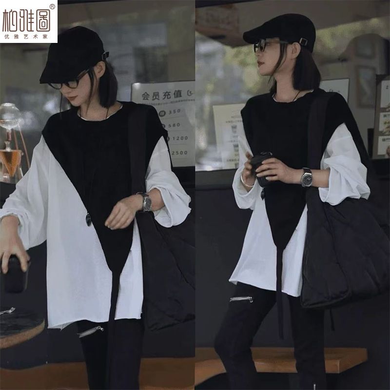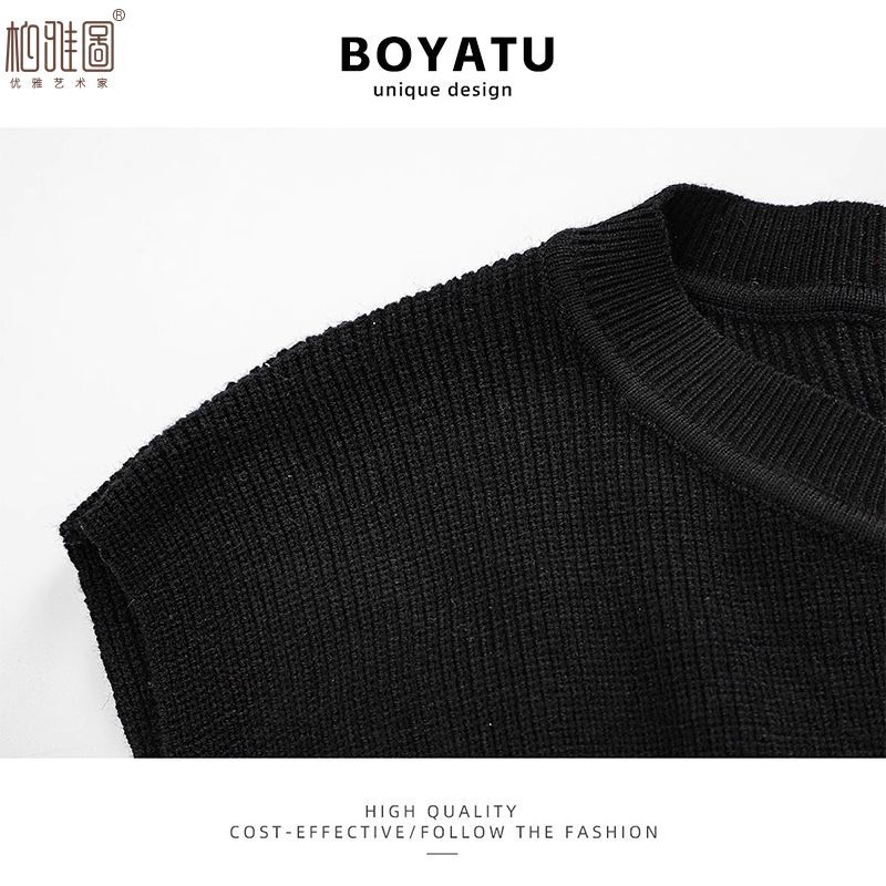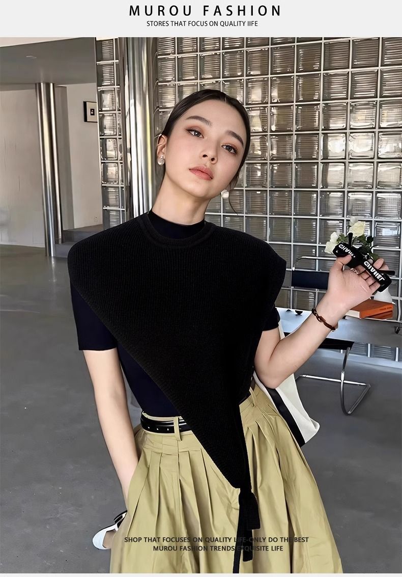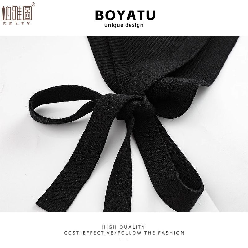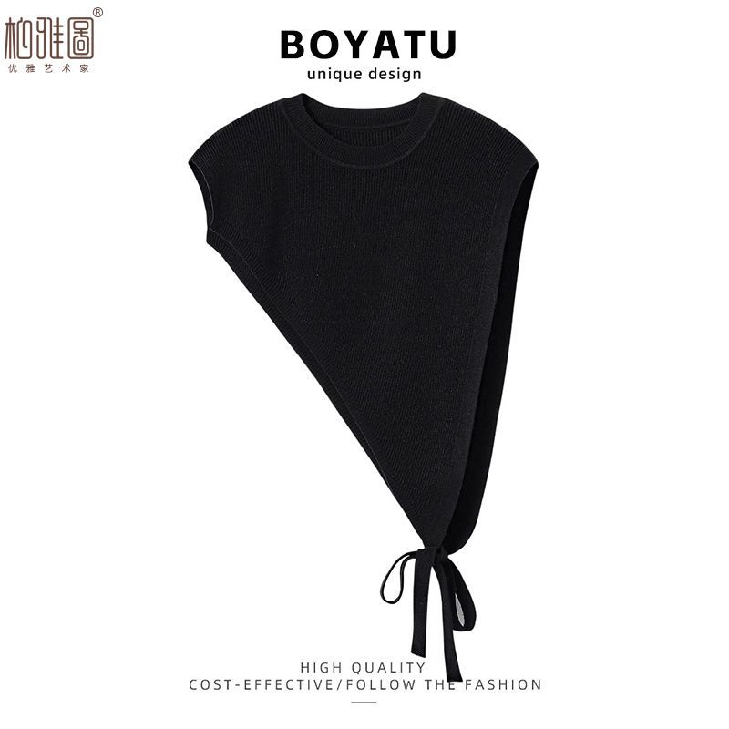柏雅图安可拉红开叉针织披肩女秋冬新款三角斜边马甲叠穿洋气百搭