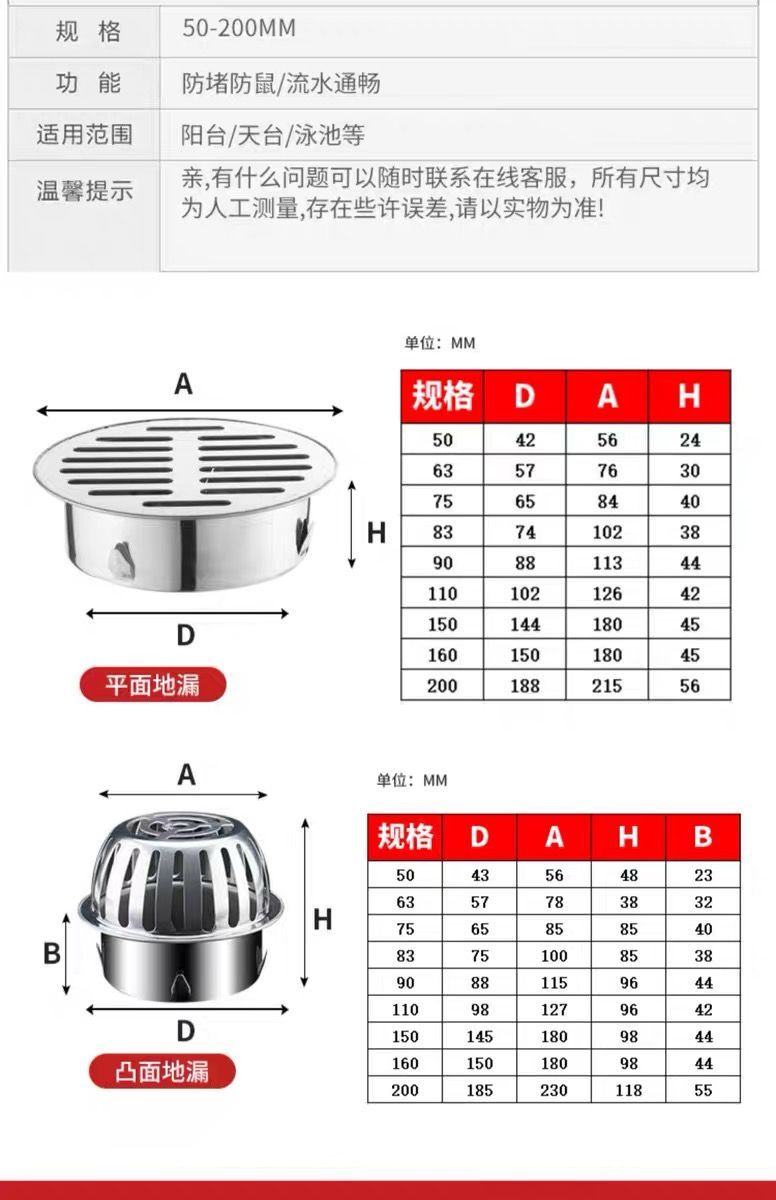 304不锈钢天台地漏阳台户外下水道防堵网罩110PVC圆形通用过滤网