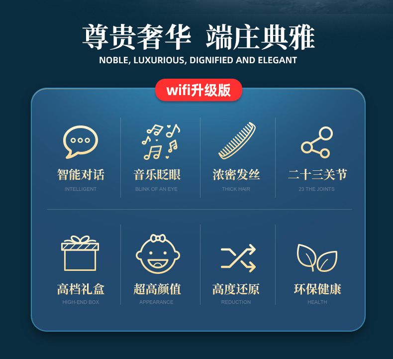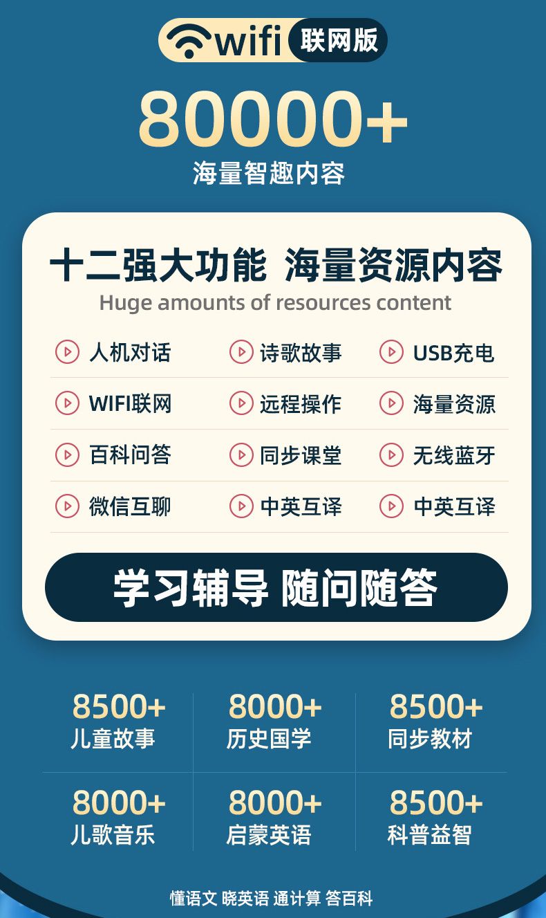 | WIFI智能对话+遥控充电+59件礼 | USD $70.4 | 999999 piece available |