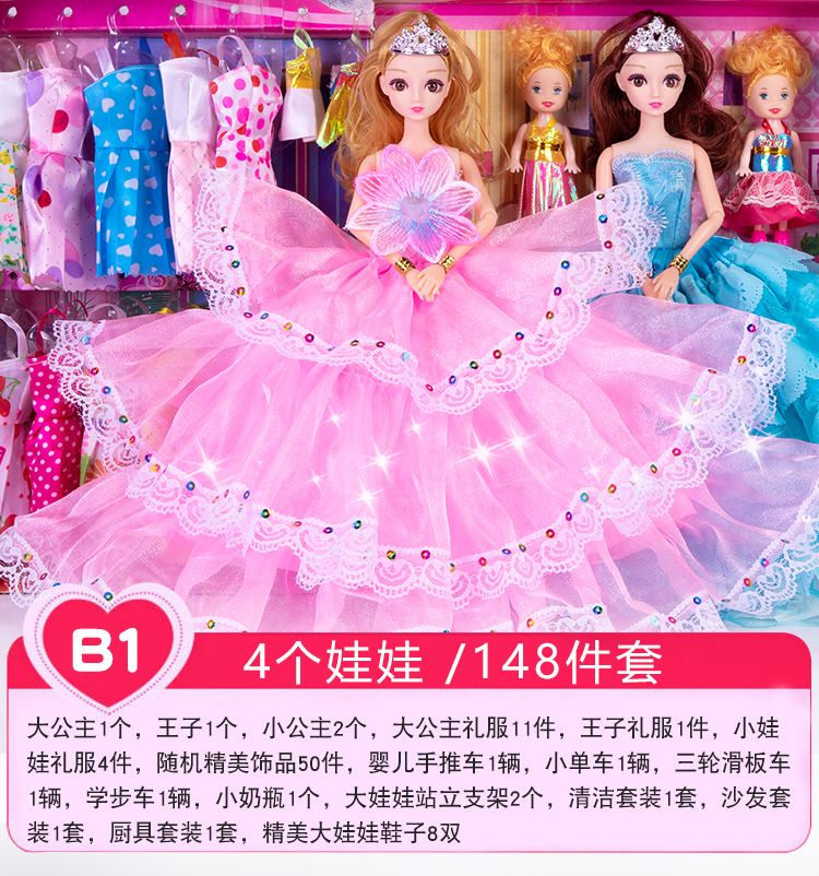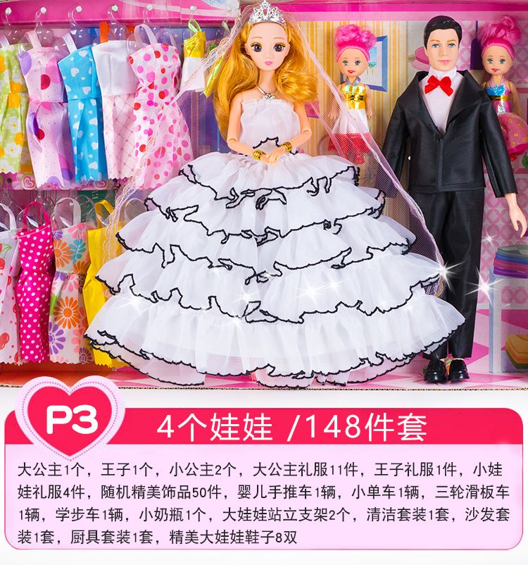 洋芭娃娃套装大礼盒公主婚纱儿童女孩玩具过家家换装生日礼物布